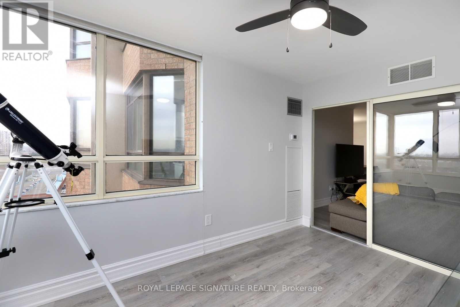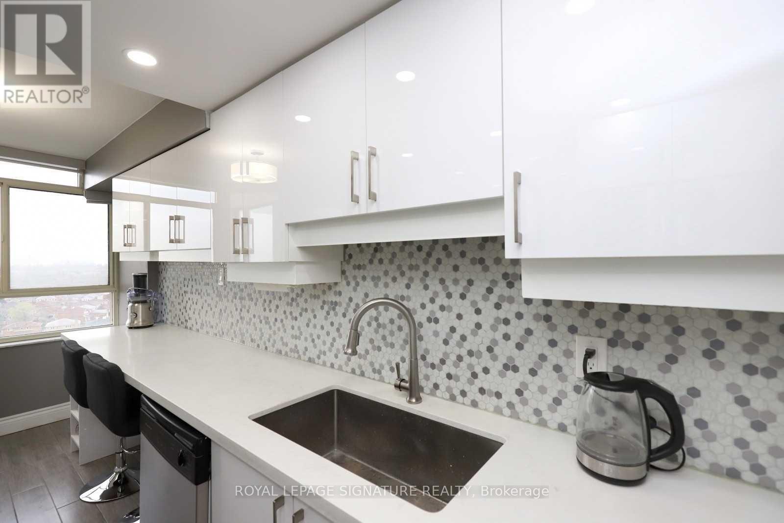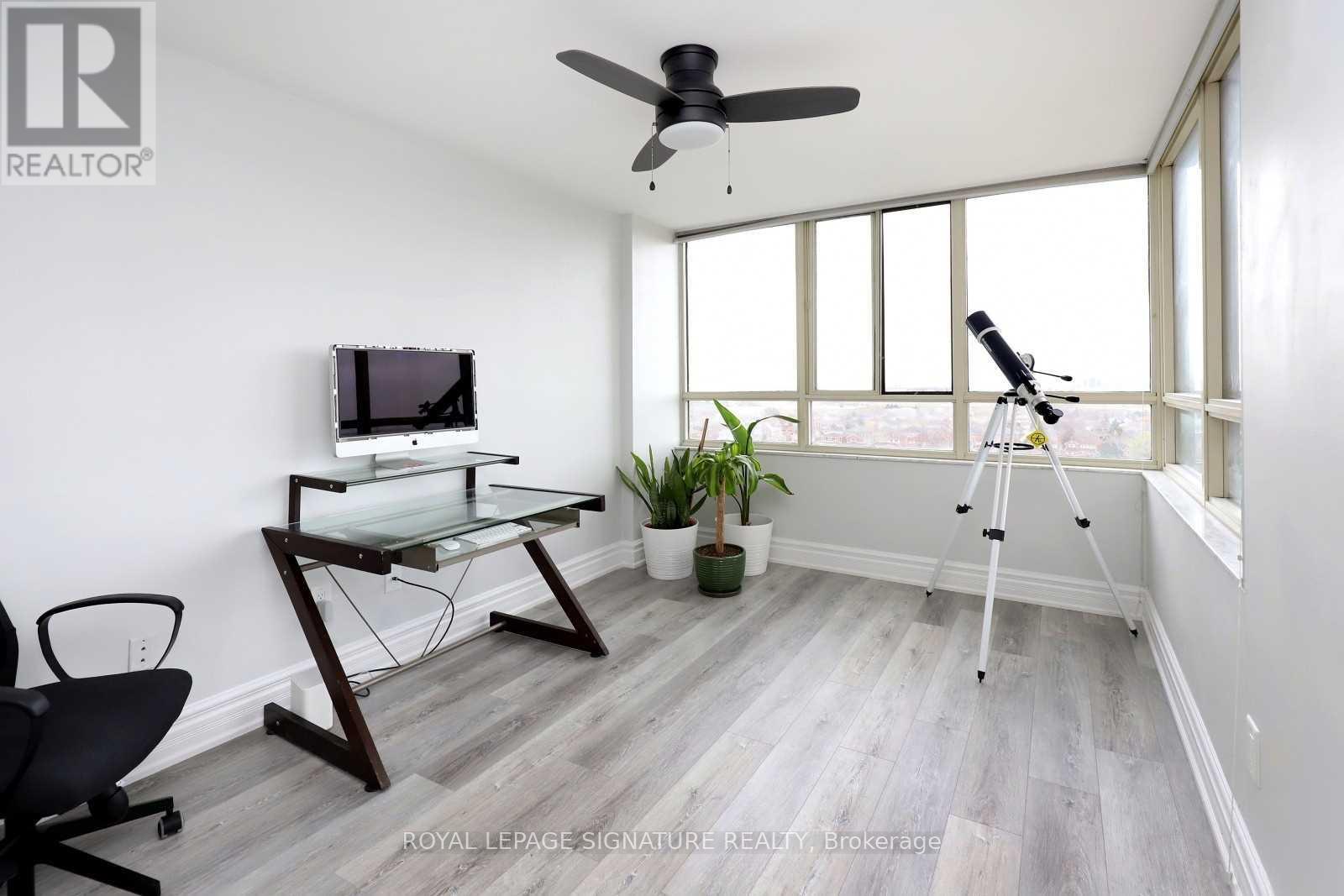 Welcome To This Beautifully Renovated, Move-In-Ready, South-Facing Suite Offering Exceptional Space, Refined Finishes, & Breathtaking City Views Stretching All The Way To The CN Tower. Bathed In Natural Sunlight Throughout The Day, This Home Delivers A Bright, Airy Atmosphere That Elevates Everyday Living. The Expansive Sun-Filled Solarium Provides Outstanding Versatility & Can Easily Function As A Third Bedroom, Home Office, Playroom, Or Serene Retreat-Ideal For Families & Professionals Alike. The Home Features A Fully Renovated Kitchen & Two Stylishly Updated Bathrooms. Complemented By Luxury Laminate Flooring Throughout, Smooth Ceilings, & No Carpet, Creating A Sleek, Contemporary, Low-Maintenance Environment. The Primary Bedroom Is Enhanced With Modern Pot Lights, Dimmers In Both The Primary Bedroom And Dining Room Allows You To Set The Perfect Ambiance For Any Occasion. Enjoy Peace Of Mind With Smart Home Technology. Complete With A SmartLock & Smart Peep-Hole Camera, Giving You The Ability To Secure & Monitor Your Home From Anywhere In The World. Effortless Convenience & Peace Of Mind. This Spacious Unit Includes Two Parking Spaces & A Storage Locker. The All-Inclusive Maintenance Fee Covers All Utilities, High-Speed Internet, And A VIP Cable Package, Offering Exceptional Value And Convenience. The Impeccably Maintained Building Features 24-Hour Security & Resort-Style Amenities Including A Fully Equipped Gym, Outdoor Swimming Pool, Billiards Room, Squash And Tennis Courts, Two Saunas, Party Room, Library, & A CarWash Station. Ideally Located Near Schools, Parks, Shopping, Public Transit, & Seamless Access To Highways 407, 410, & 401. This Home Delivers A Rare Blend Of Luxury, Functionality, & Lifestyle. It Checks Every Box. (id:4555)