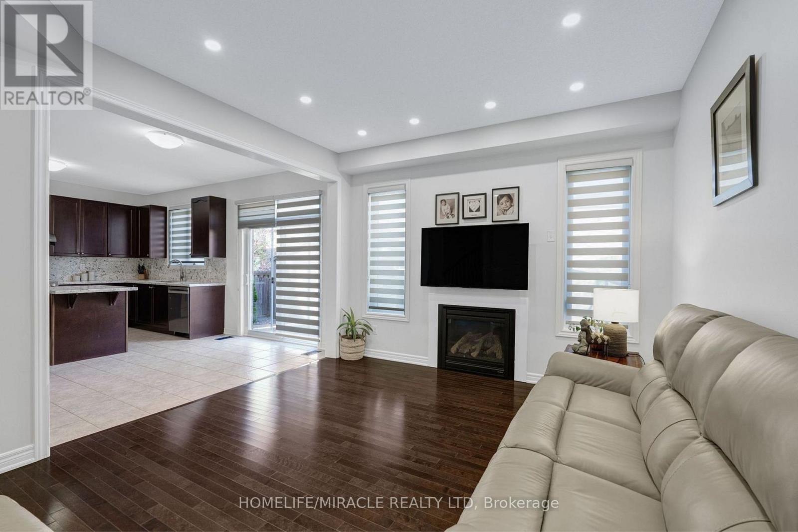 Welcome to this beautiful home located in the highly sought-after Credit Valley community. The main floor features a spacious living and dining area ideal for entertaining, along with a bright open-concept family area with a cozy fireplace. The spacious kitchen offers stainless steel appliances, a center island, and ample cabinetry, making it perfect for both everyday living and hosting. Hardwood flooring throughout the main level, paired with an elegant oak staircase with wrought-iron pickets, completes the refined main-floor design. Upstairs, the spacious primary suite is a true retreat, highlighted by soaring 10-foot ceilings and designed for comfort and privacy. Two additional bedrooms feature their own private ensuites, while the remaining bedroom shares a convenient Jack-and-Jill bathroom. Custom closet organizers are included in every bedroom, complemented by Zebra and California shutters throughout the home. Ideally located just a 3-minute walk to transit, grocery stores, Shoppers Drug Mart, banks, a walk-in clinic, and schools, and only a 7-minute drive to Highway 407, this home perfectly blends style, function, and everyday convenience in one of Brampton's most desirable neighborhoods. (id:4555)