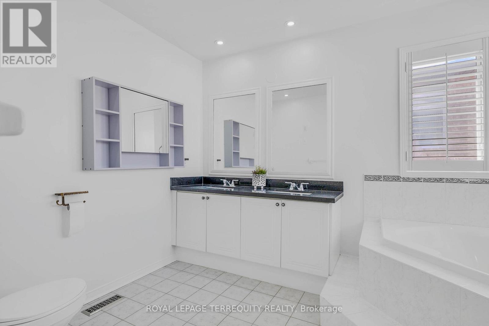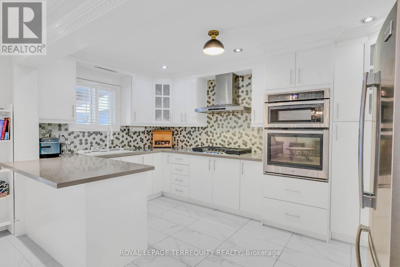 Stunning modern elegance meets castle-like charm in this beautifully upgraded residence, offering the perfect blend of style, space, and functionality. Set on a quiet, family-friendly court, the home showcases a bright, open layout with a formal dining room accented by French doors, a cozy family room with a gas fireplace, and a renovated eat-in kitchen featuring stainless steel appliances, a gas stove, and a walk-out to the backyard. Rare dual primary bedrooms make it ideal for multi-generational living, highlighted by a luxurious main primary suite with a sitting area and walk-in closets. The professionally finished lower level offers two bedrooms and two full washrooms-perfect for extended family or income potential. Featuring 5 full bathrooms plus a convenient main-floor powder room, this move-in-ready home is ideally located near Mount Pleasant GO, parks, schools, and major amenities-making it a rare opportunity in a premium neighborhood. (id:4555)