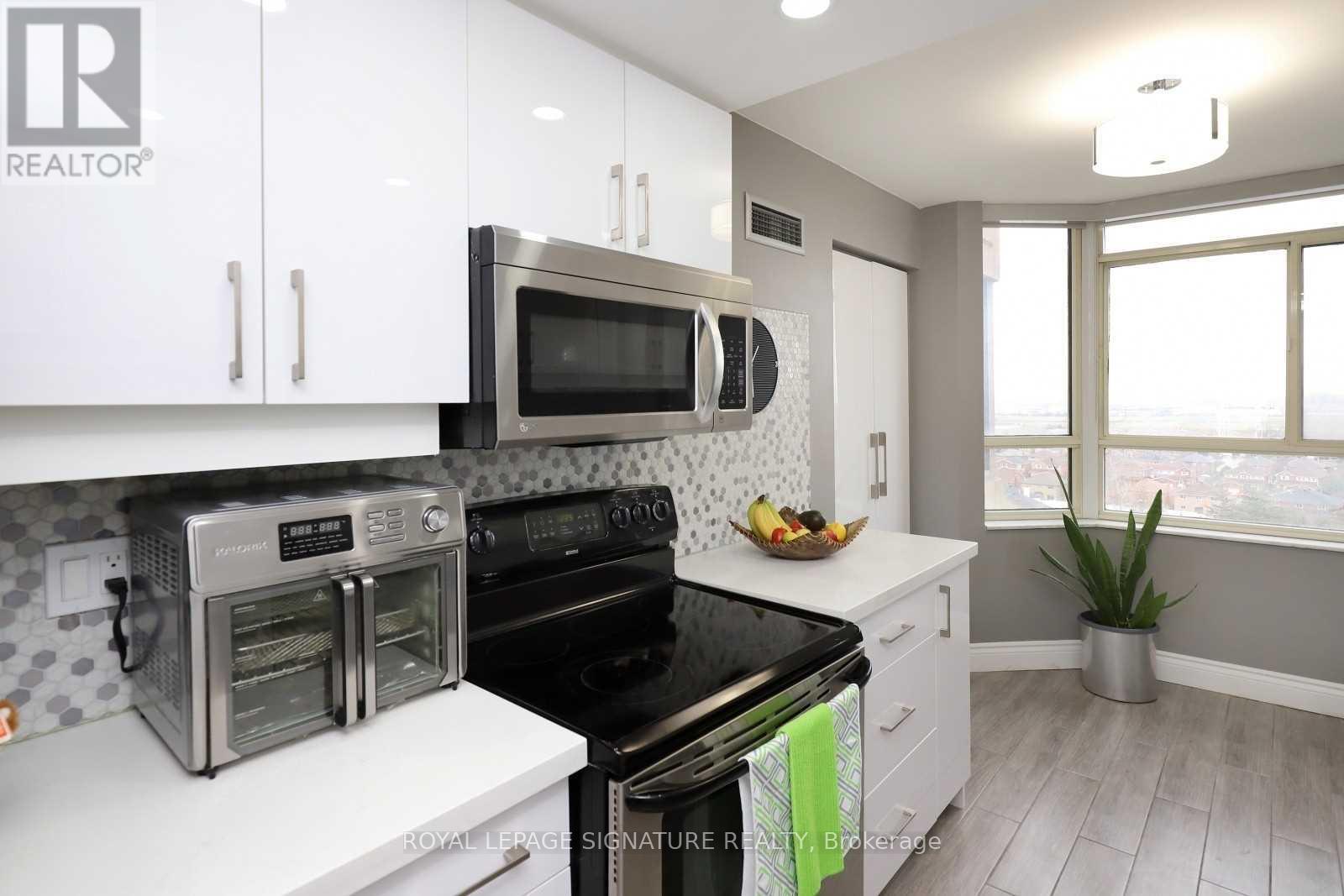 Welcome To This Beautifully Renovated, Move-In-Ready, South-Facing Suite Offering Exceptional Space, Refined Finishes, & Breathtaking City Views Stretching All The Way To The CN Tower. Bathed In Natural Sunlight Throughout The Day, This Home Delivers A Bright, Airy Atmosphere That Elevates Everyday Living. The Expansive Sun-Filled Solarium Provides Outstanding Versatility & Can Easily Function As A Third Bedroom, Home Office, Playroom, Or Serene Retreat-Ideal For Families & Professionals Alike. The Home Features A Fully Renovated Kitchen & Two Stylishly Updated Bathrooms. Complemented By Luxury Laminate Flooring Throughout, Smooth Ceilings, & No Carpet, Creating A Sleek, Contemporary, Low-Maintenance Environment. The Primary Bedroom Is Enhanced With Modern Pot Lights, Dimmers In Both The Primary Bedroom And Dining Room Allows You To Set The Perfect Ambiance For Any Occasion. Enjoy Peace Of Mind With Smart Home Technology. Complete With A SmartLock & Smart Peep-Hole Camera, Giving You The Ability To Secure & Monitor Your Home From Anywhere In The World. Effortless Convenience & Peace Of Mind. This Spacious Unit Includes Two Parking Spaces & A Storage Locker. The All-Inclusive Maintenance Fee Covers All Utilities, High-Speed Internet, And A VIP Cable Package, Offering Exceptional Value And Convenience. The Impeccably Maintained Building Features 24-Hour Security & Resort-Style Amenities Including A Fully Equipped Gym, Outdoor Swimming Pool, Billiards Room, Squash And Tennis Courts, Two Saunas, Party Room, Library, & A CarWash Station. Ideally Located Near Schools, Parks, Shopping, Public Transit, & Seamless Access To Highways 407, 410, & 401. This Home Delivers A Rare Blend Of Luxury, Functionality, & Lifestyle. It Checks Every Box. (id:4555)