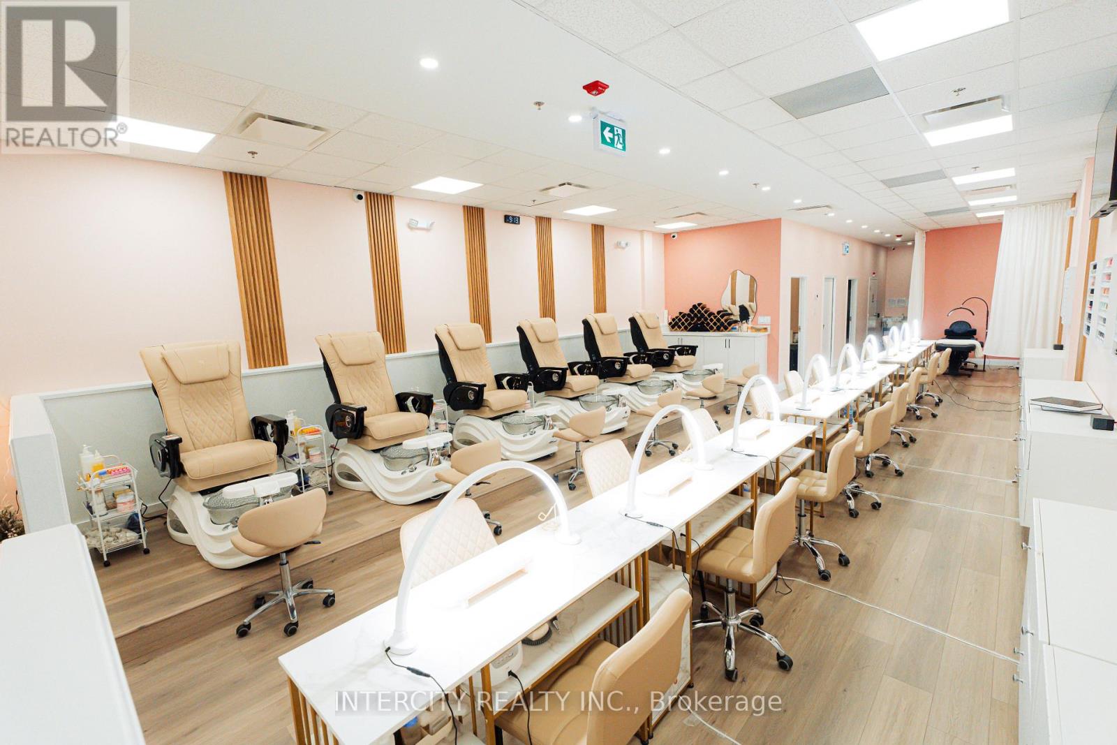 Turnkey Nail & Beauty Salon in Prime Location! Well-established, fully equipped salon featuring 8 nail stations, 6 pedicure chairs, and 1 private treatment room. Additional glass beauty cubicle currently rented at $1,000/month providing steady supplemental income. Modern interior with stylish reception area, professional equipment, kitchenette with laundry, staff storage, and washroom including AODA-compliant facility. All furniture, fixtures, and equipment included. Dual entrances with ample free parking. Located in a high-traffic area surrounded by new developments, offering strong walk-in exposure and loyal clientele. Trained staff may stay for smooth transition. (id:4555)