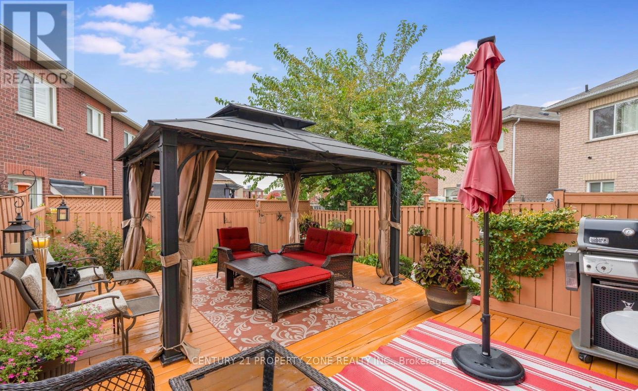 Welcome to 83 Spicebush Terrace, a rarely offered east-facing townhouse in Brampton's highly sought-after Credit Valley neighbourhood, lovingly maintained by the original owner and showcasing true pride of ownership. This beautifully appointed home features 3 spacious bedrooms and 3 bathrooms, with a bright, open-concept main floor offering a combined living and dining area anchored by a cozy gas fireplace-perfect for both everyday living and entertaining. The well-designed kitchen with gently used appliances overlooks the breakfast area with a walkout to a private, professionally landscaped backyard retreat complete with a two-tiered deck and a custom heavy-duty gazebo featuring a built-in heater and custom summer and rain curtains for year-round enjoyment and A Brand New Lennox Elite Series high efficiency furnace with transferable warranty installed in Feb. 2026. Additional highlights include a stunning perennial garden, extended driveway with elegant patio stonework, and a brand-new insulated garage door for enhanced comfort and energy efficiency. Nestled on a quiet, family-friendly street close to top-rated schools, parks, and shopping amenities, this exceptional home offers comfort, style, and convenience in one of Brampton's most desirable communities-don't miss the opportunity to make this lovely townhouse yours. (id:4555)