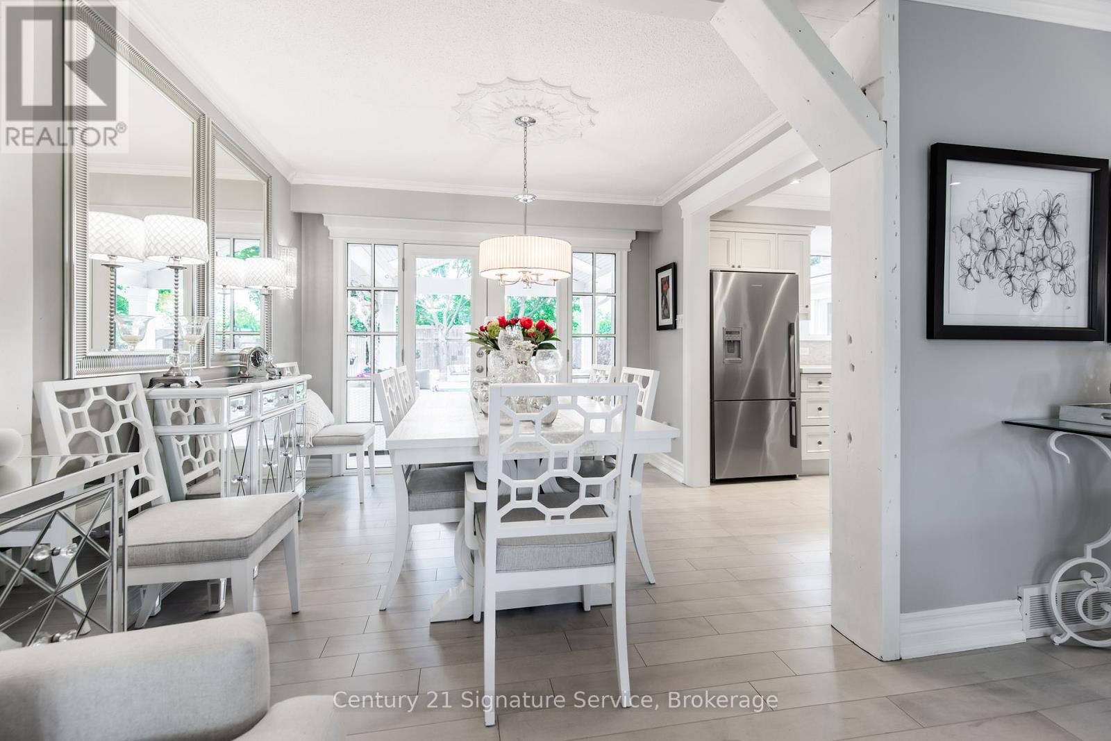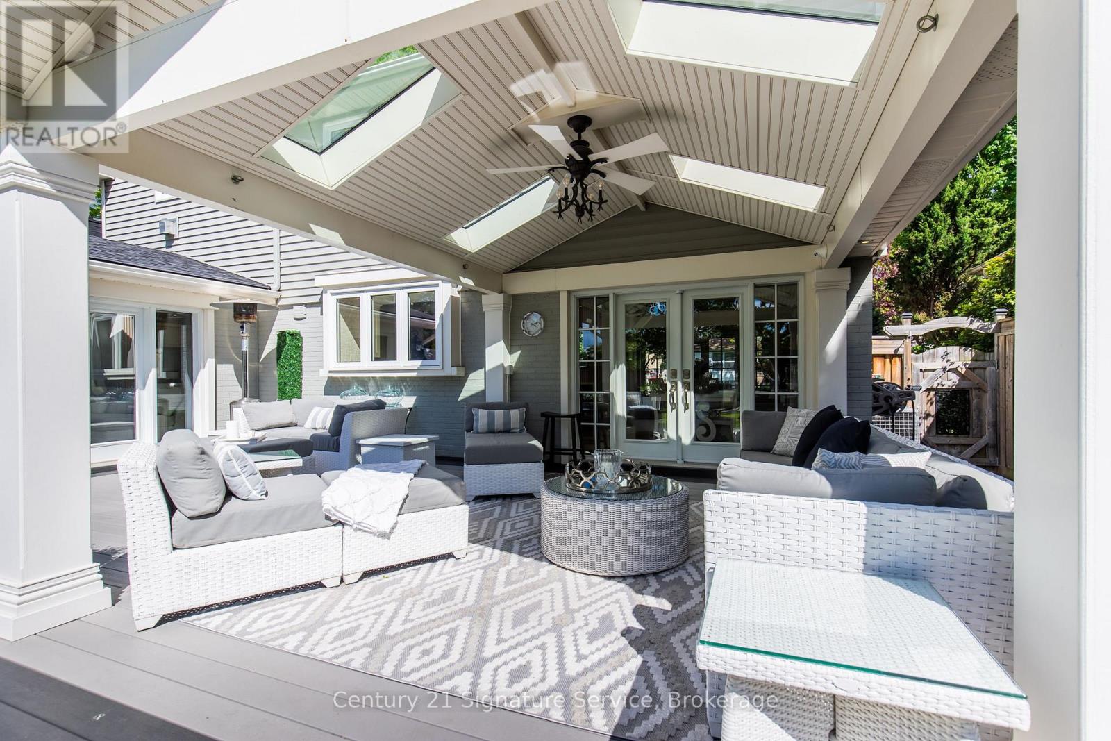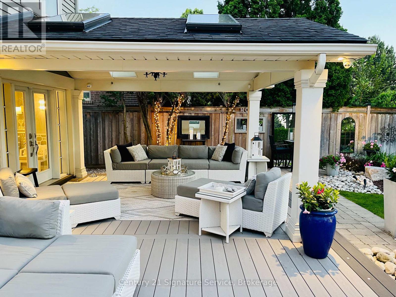 Welcome to 16 Ferndale Cres, nestled in one of Brampton's most sought-after communities - Peel Village. This exceptional 4+1 bed, 3-bath executive home showcases true pride of ownership. Fully renovated top to bottom and enhanced with a stunning custom addition featuring upscale finishes and potlights throughout. Step into a bright, open concept living and dining area with seamless flow to the backyard oasis - ideal for everyday living and effortless entertaining. The chef's kitchen impresses with waterfall quartz countertops, modern appliances, under-mount lighting, and convenient interior access to the garage. The garage is thoughtfully outfitted with built-in cabinetry and a second fridge, creating additional pantry and storage space. The family room boasts a soaring cathedral ceiling, two skylights, a wood-burning fireplace, and a walkout to your private backyard retreat. Outdoors, professionally landscaped grounds are graced by breathtaking sunset views creating the heart of a truly unique indoor/outdoor lifestyle. Enjoy the 400 SF composite deck with vaulted covered roof, integrated lighting, and four skylights - perfect for dining and gathering under the stars. Additional features include a gas fire display, new interlock walkways, soffit and garden lighting, inground sprinklers, and spacious Keter shed. Upstairs are four generously scaled bedrooms and two recently updated baths. The primary suite is a true sanctuary, offering 11ft cathedral ceiling, a gas fireplace, and a spa-inspired ensuite featuring quartz finishes and heated floors. The finished basement expands your living space with a 5th bedroom, living/rec room w/ large egress windows - ideal for guests, along with a 2-pc bath, laundry area, ample storage, and a cold room. Set on a quiet crescent with a backyard offering privacy and open views, this meticulously upgraded home delivers tranquility, convenience, and the perfect setting for a vibrant outdoor lifestyle in a family-friendly neighbourhood. (id:4555)