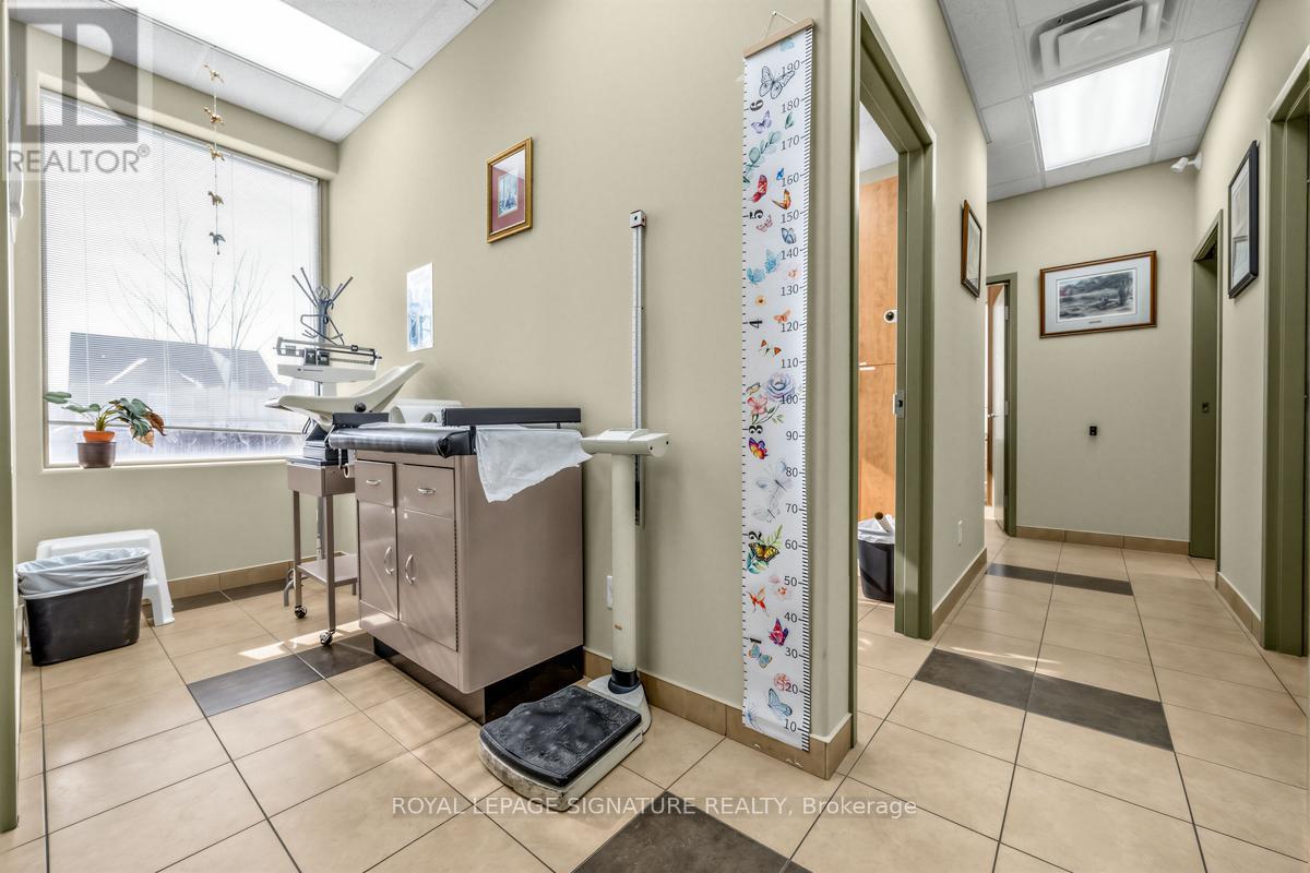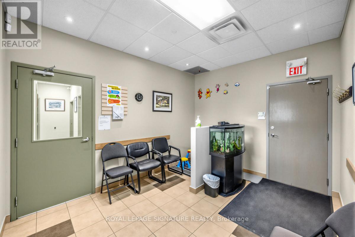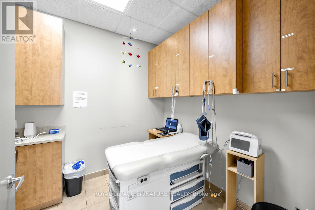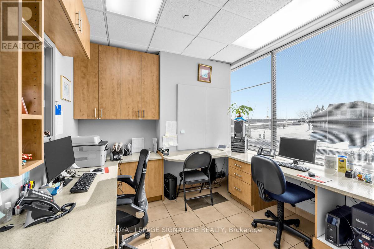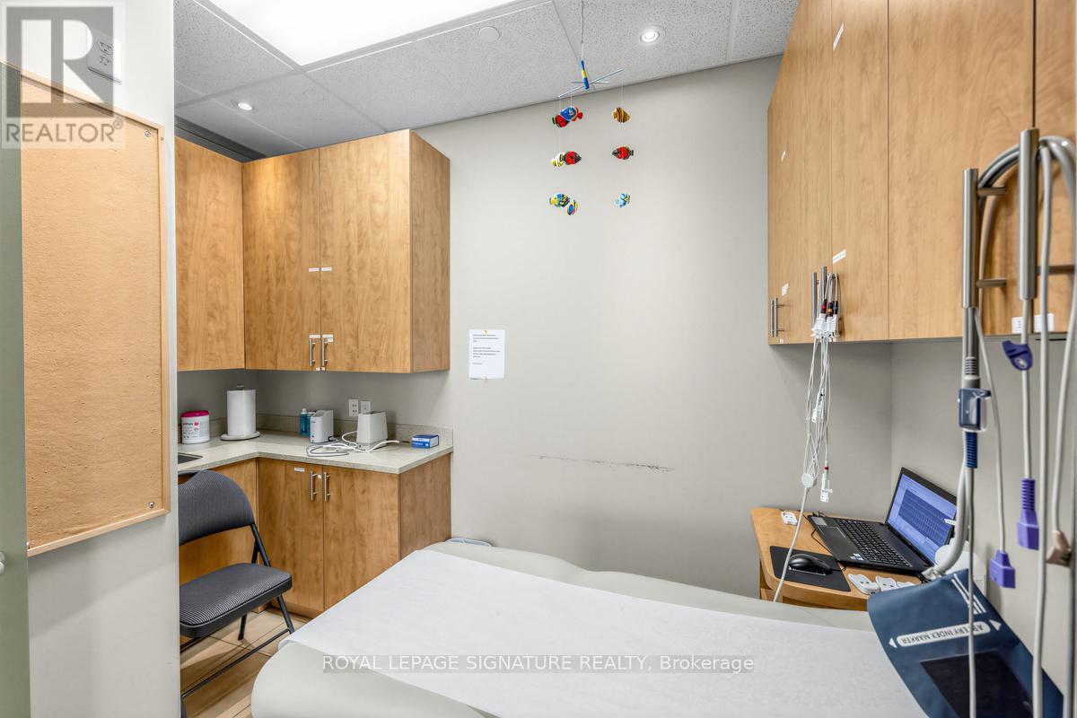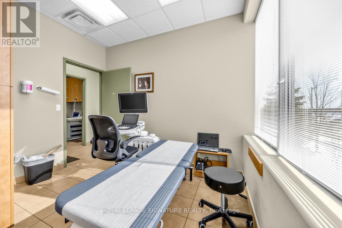 Bright, professional and well-appointed corner unit ideal for a medical specialist or general office use. Currently configured as a turnkey medical office featuring three private patient rooms, a welcoming reception area, and a spacious waiting room. The unit also includes an ensuite washroom and kitchenette for added convenience. Enjoy abundant natural light through large west-facing windows - most offices benefit from a window view. Positioned on a high-traffic corner, this property offers excellent visibility and accessibility with ample on-site parking for staff and clients alike. Situated within a thriving medical hub alongside complementary tenants including a pharmacy, large family practice and medical labs, making this an exceptional opportunity for any specialist looking to establish or grow their practice. Flexible zoning permits both medical and general office use. (id:4555)