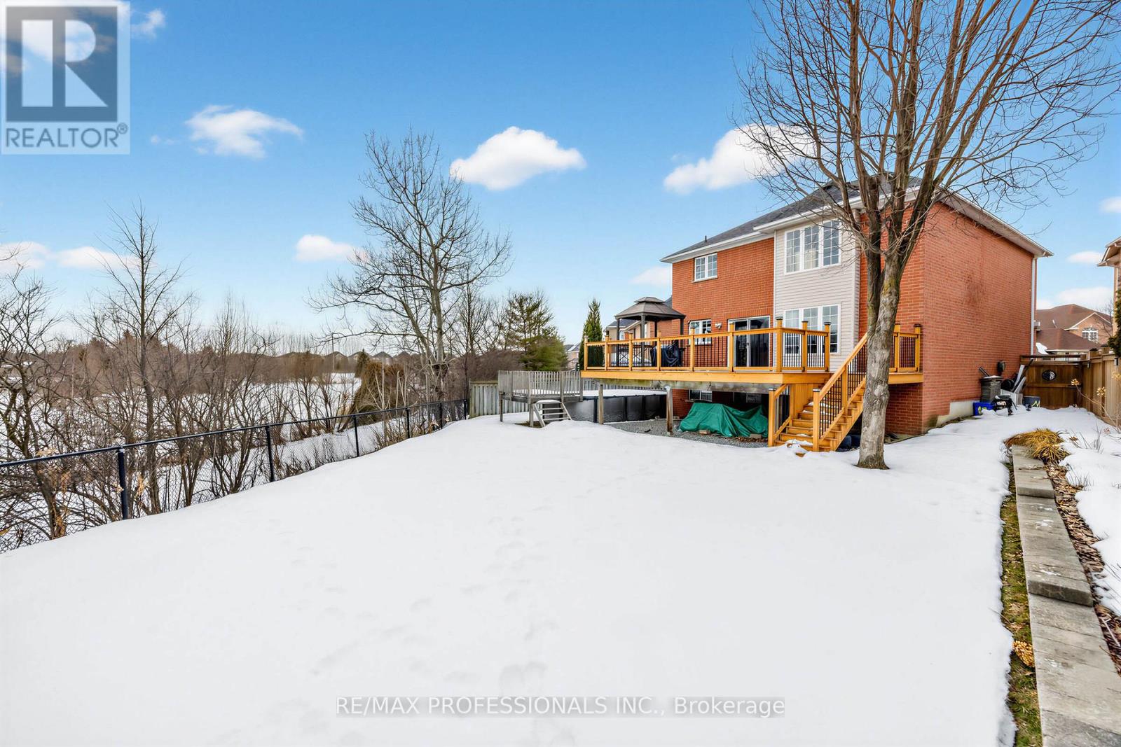 This spacious, fully detached 4-bedroom home sits on a rare oversized pie-shaped lot overlooking the ravine, offering a peaceful setting that truly feels like cottage living in the city. Enjoy the large deck with gas bbq hookup and outdoor entertaining area with a heated above-ground pool, perfect for relaxing or hosting. the outdoor Irrigation is a wonderful bonus. Nestled on a quiet, tree-lined street in a family-friendly neighbourhood, this home is meticulously maintained and beautifully updated with high-end finishes throughout. A standout feature is the upper-level bonus/family room with double-height ceilings, hardwood floors, and a gas fireplace. The main floor offers formal living and dining areas, and a bright and spacious kitchen with ample cabinetry, large island, and stainless steel appliances. Upstairs includes 4 bedrooms, an updated 4-piece bathroom, beautiful hardwood floors, and a complete primary retreat with ensuite and walk-in closet. Conveniently located close to great schools, as well as parks, walking trails, shopping, and everyday amenities. Easy access to Highways 410 & 407 makes commuting simple while enjoying the comfort of a quiet residential community. (id:4555)
