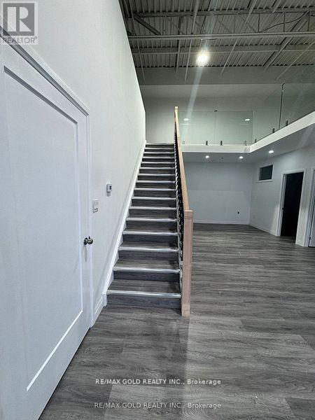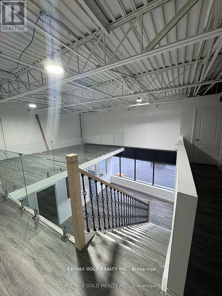 Unit allows auto repair/auto body shop use and features glass-front windows with excellent exposure. The space includes three private glass offices, a welcoming lobby area, kitchen, washroom, and additional upper-level workstation space. Steel ramp installed for automotive use.Boasting 18 ft clear ceiling height and a column-free layout, the unit offers excellent functionality for a variety of uses, including warehousing, light manufacturing, kitchen cabinet manufacturing, and other permitted industrial/commercial uses. (id:4555)