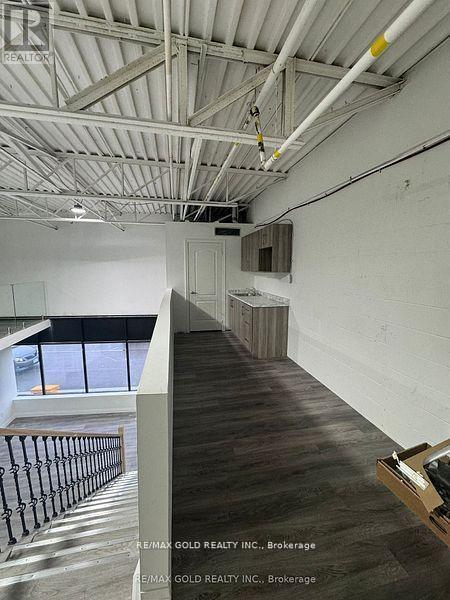 Unit allows auto repair/auto body shop use and features glass-front windows with excellent exposure. The space includes three private glass offices, a welcoming lobby area, kitchen, 2 washroom, and additional upper-level workstation space. Steel ramp installed for automotive use.Boasting 18 ft clear ceiling height and a column-free layout, the unit offers excellent functionality for a variety of uses, including warehousing, light manufacturing, kitchen cabinet manufacturing, and other permitted industrial/commercial uses. (id:4555)