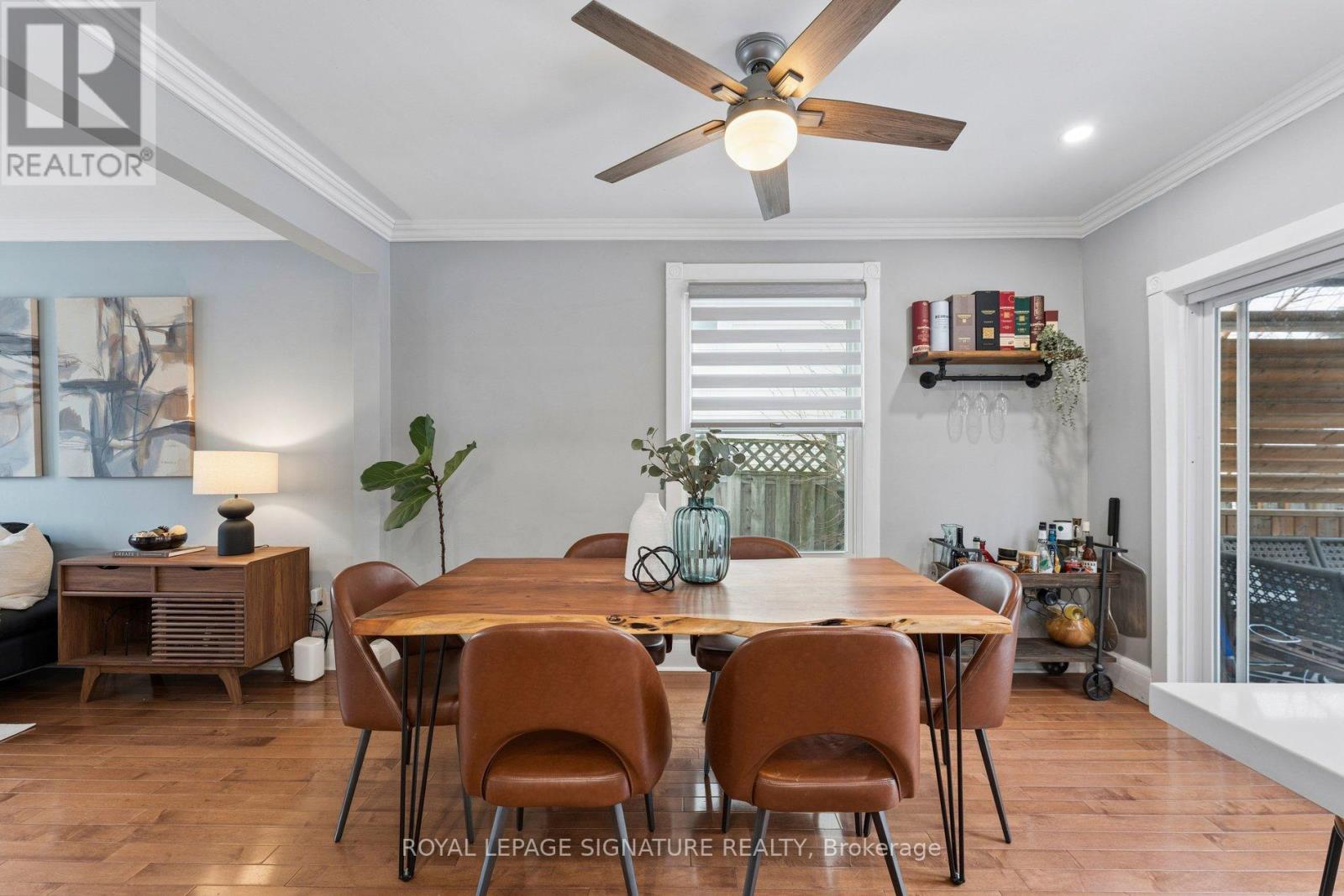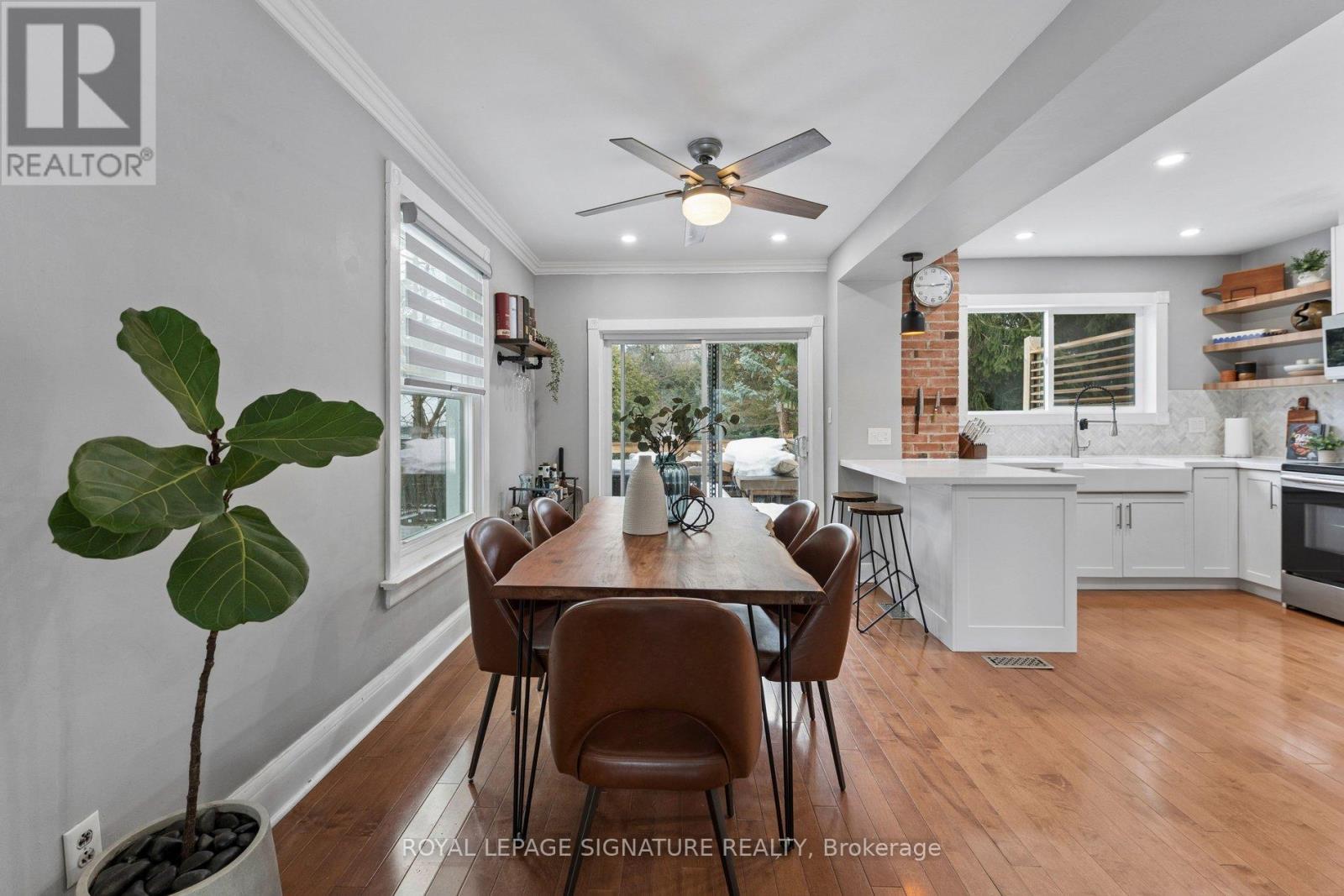 Charming and beautifully updated 2-storey 3+1 bedroom family home offering exceptional space and income potential. Featuring a separate entrance to a finished basement with its own kitchen and 4-piece bathroom - ideal for an in-law or nanny suite and ready to make legal for future rental potential. The main level offers bright open-concept living and dining with large windows and hardwood flooring, along with a modern kitchen featuring stainless steel appliances, custom cabinetry, quartz counters, backsplash and breakfast bar. The dining area provides convenient walk-out access to the private backyard, making it perfect for indoor-outdoor entertaining.Upstairs offers three generously sized bedrooms, updated laminate flooring, convenient upper-level laundry with stacked washer & dryer, and a bright 4-piece bathroom with window and plenty of natural light. Bedrooms also include custom wardrobe closets and additional storage space available in the attic with staircase access. Enjoy a private, fully fenced and landscaped backyard designed for entertaining with a spacious built-in deck, custom wood seating, privacy screening, outdoor TV area, fire pit and tranquil garden pond water feature. The property also includes an 8 x 16 backyard shed for additional storage. Located close to schools, parks, shopping, GO Transit and the new recreation trail (2023), this home offers the perfect combination of comfort, flexibility and convenience. (id:4555)