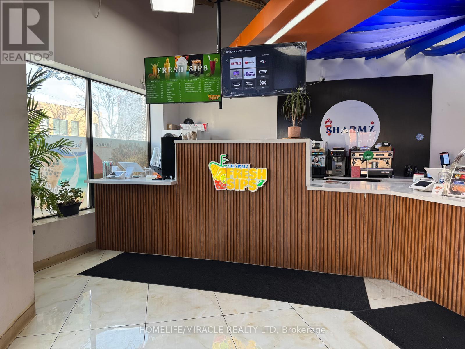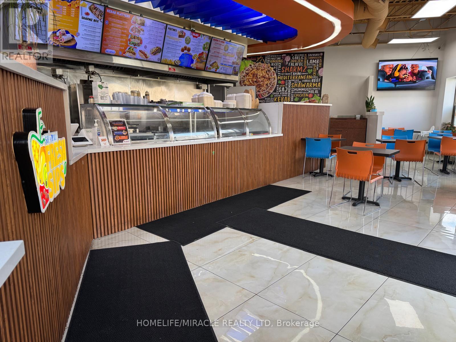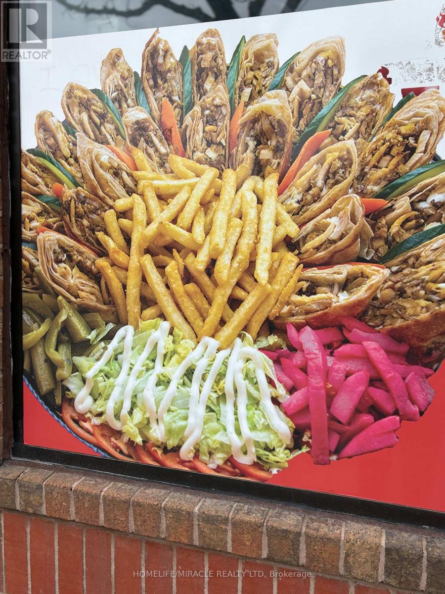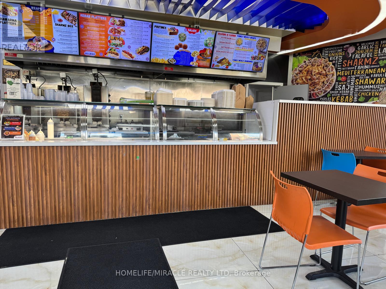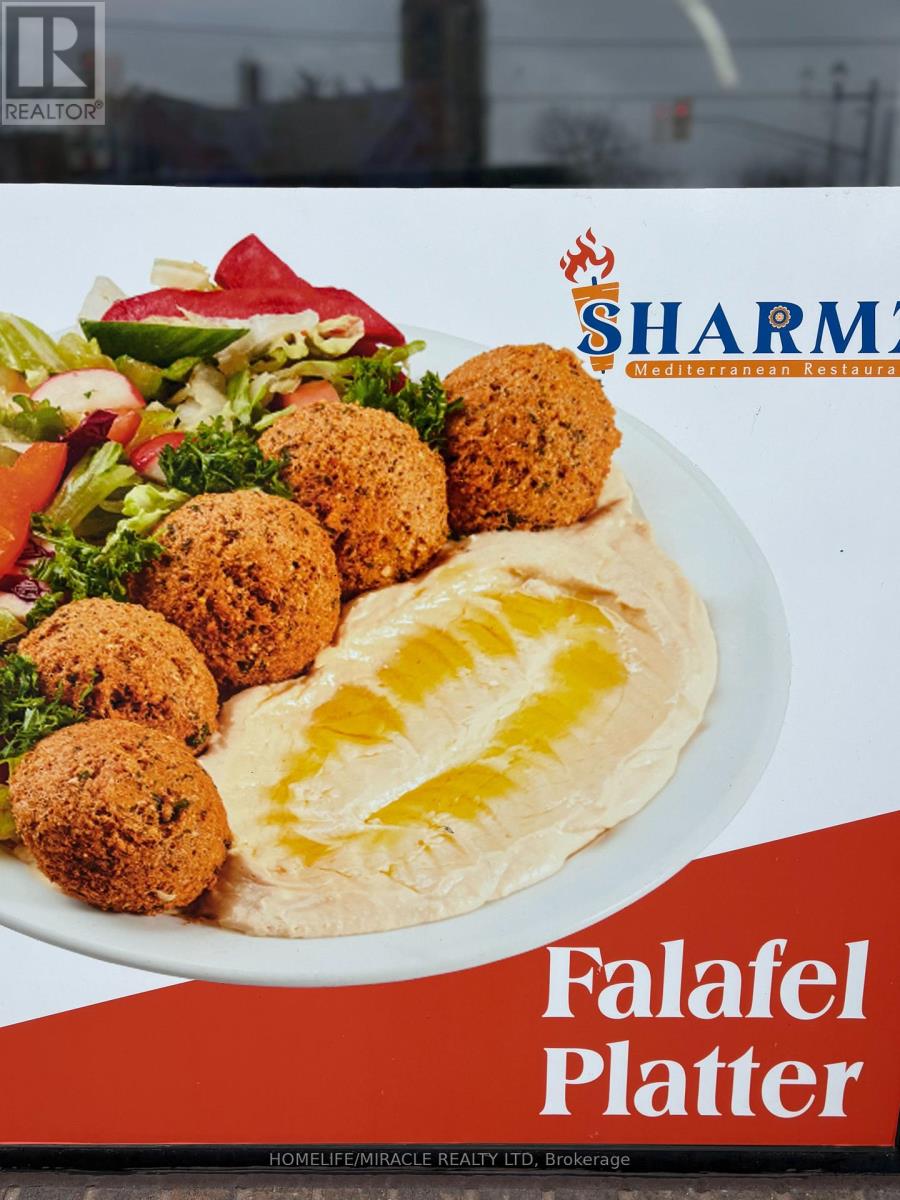 * FOOD - MEDITERRANEAN Developed From Freshness Of Ingredients, Authentic And Vibrant Flavors. Few To Mention Chicken Kobideh, Falafel, Mix Kebab and Shawarmas. Sharmz's Fresh Sips Of Bubble Teas Made With Fresh Fruits. * RESTAURANT - Developed On The Guidelines Of Professional Architects and Interior Designers. * CHEF - 30 Years of Experience In Development and Making of Such Mouth Watering & Healthy Dishes. * CLIENTELE - Steady And Continuous Catering Orders From City Of Brampton, Mosques And Other Similar organization. * POTENTIAL OF BUSINESS DEVELOPMENT - The Lease Is Designed To Add Or Change The Indian and Pakistani Dishes. * LOCATION - Central Brampton Right On The Corner Of Main And Church High Visibility And Presence. Plaza Has Ample Parking Not So Common In Downtown. * LOCATION POTENTIAL - Downtown Brampton is Undergoing A Major Transformation From 2024-2027, Focusing On High-Density Residential Towers, Infrastructure Upgrades, And The LTR To Unlock Development. Key Projects Include A New Transit Hub, The "Centre For Innovation," And Several High-Rise Developments (up to 60 storeys) One Right In Front Of This Restaurant. * RENT - Super Low Of 2650 Per Month and TMI Of 830 Per Month Incudes Water For This Prime Real Estate. * PROFITABILITY - Very High Driven By Low Occupancy Cost And Soaring Volume Sales. * TRAINING - Will Adequately Be Provided For Buyer's Guaranteed Success In This New Venture. (id:4555)