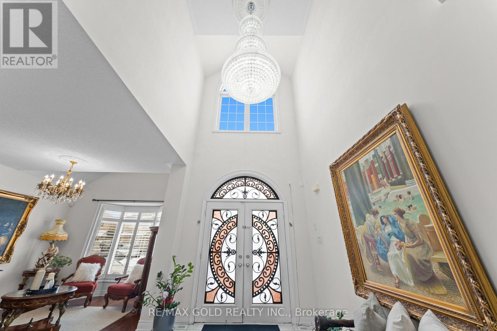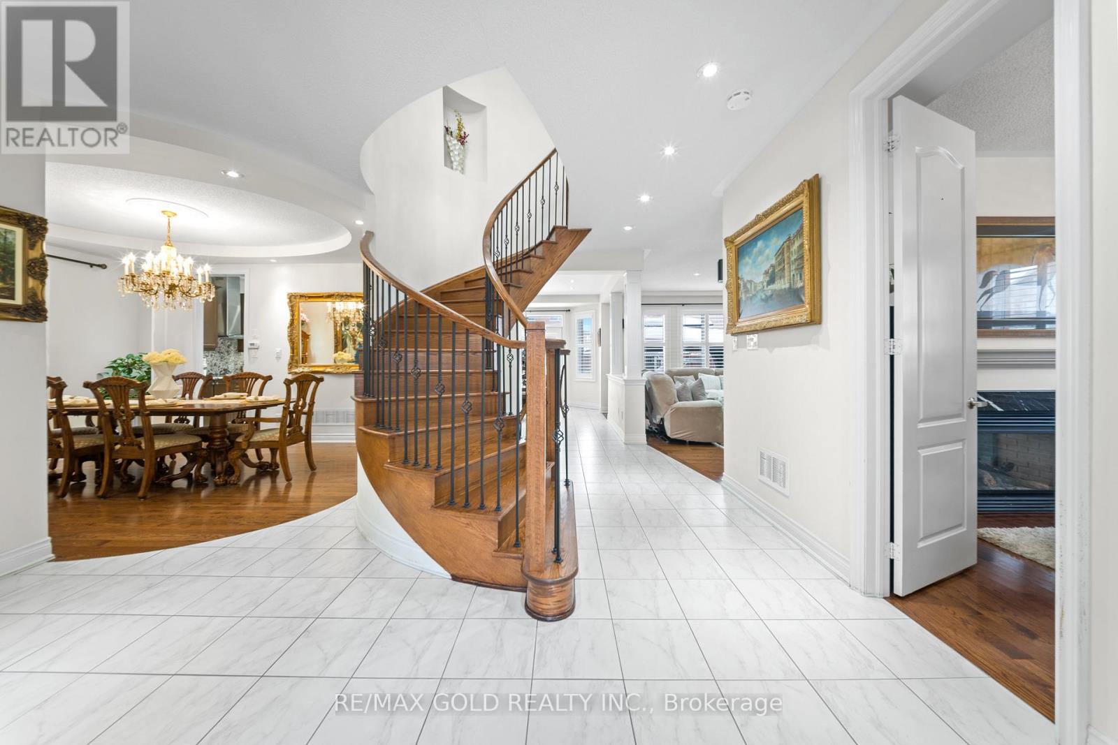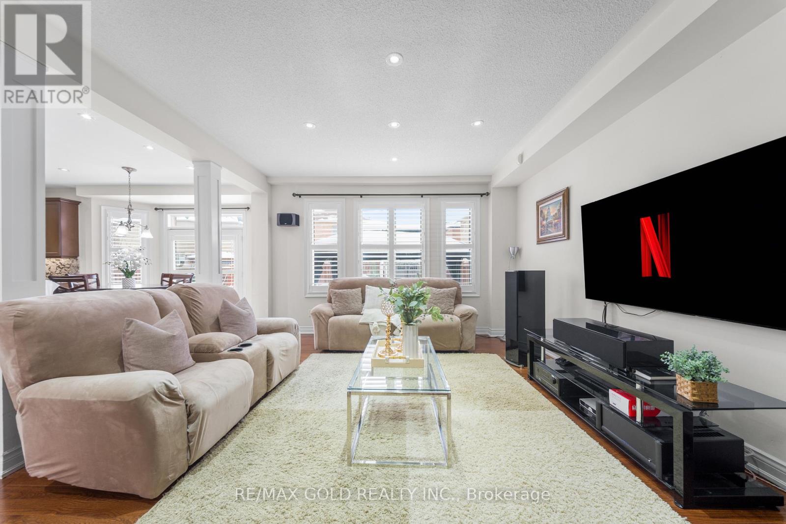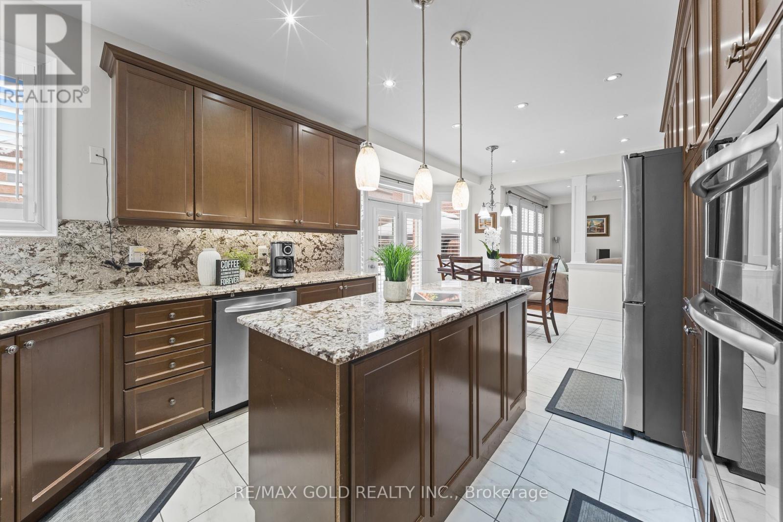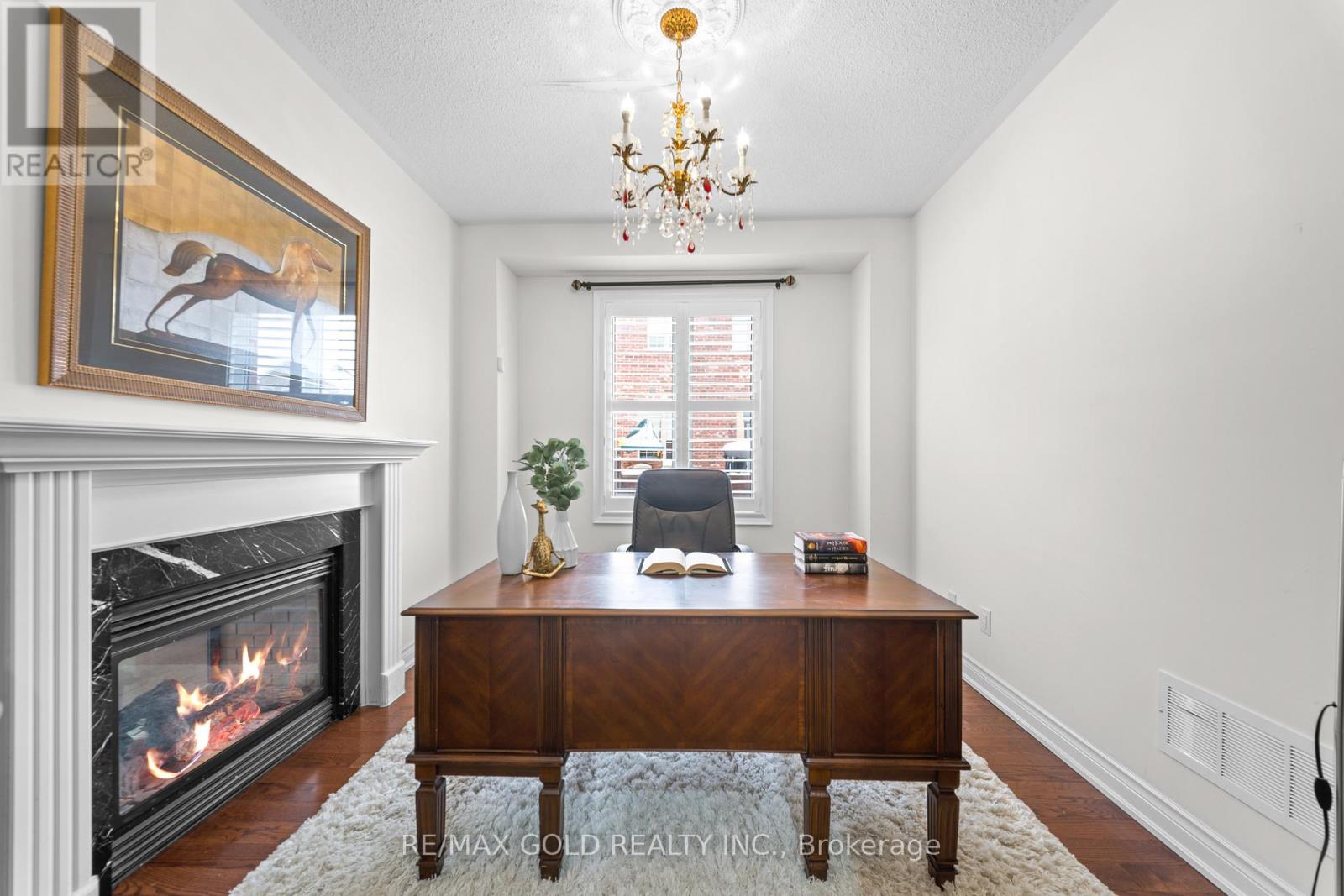 Exquisite Home offering approx. 3,700 sq. ft. of refined living space, featuring 9-ft ceilings on both floors and rich hardwood throughout. A grand double-door entry opens to a breathtaking open-to-above foyer with an elegant chandelier. The gourmet kitchen is beautifully appointed with granite countertops, designer backsplash, premium maple cabinetry, a spacious center island, built-in cooktop and oven, and stainless steel appliances. Expansive principal rooms include gas fireplaces in both the living room and private office, ideal for elegant entertaining and everyday comfort. The luxurious primary suite offers a spacious walk-in closet and a spa-inspired ensuite bath, complemented by four generously sized bedrooms and the rare convenience of three full bathrooms on the upper level. California shutters throughout enhance sophistication and privacy. Additional highlights include pot lights on the main floor and exterior, a separate entrance, no sidewalk for maximum parking, an interlocked driveway and patio, and a beautifully landscaped backyard with shed-an exceptional blend of luxury, space, and functionality. (id:4555)