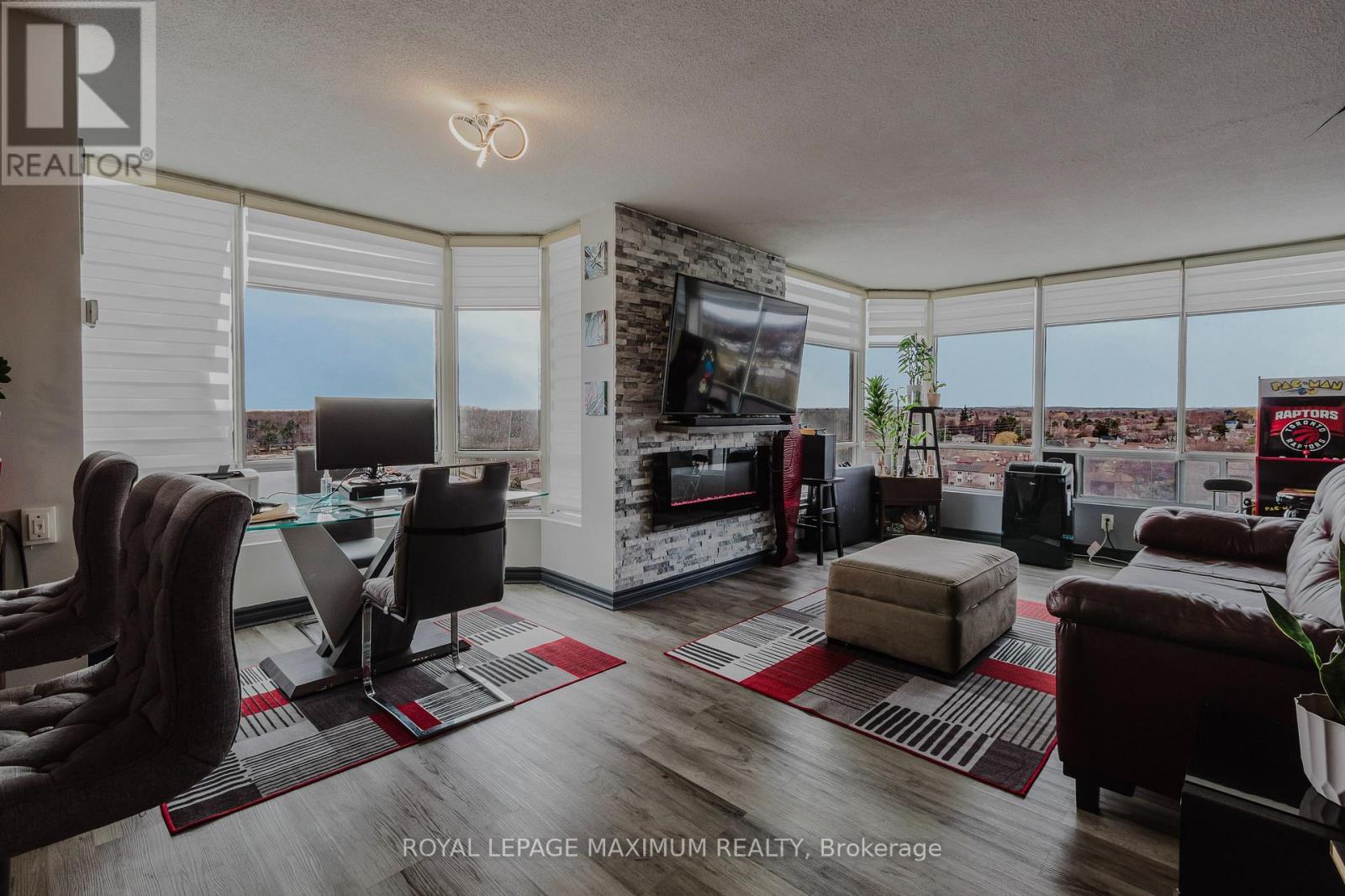 Bright and spacious 3+1 bedroom, 2 bathroom condo with approx. 1,200-1,399 sq ft of living space! Maintenance fees include all utilities, rentals, and [2 UNDERGROUND PARKING SPACES]. Enjoy excellent amenities including 24-hour security, outdoor pool, tennis court, gym, sauna, party/rec room, and visitor parking. Large open-concept living/dining area with expansive windows, eat-in kitchen with ample cabinetry, primary bedroom with upgraded ensuite bathroom featuring a glass stand-up shower, plus additional bedrooms and a solarium/den that can serve as a fourth bedroom, office, or sitting area. The condo features new flooring and updated zebra blinds throughout. Conveniently near shopping, parks, transit, schools, highways, and Bramalea City Centre. (id:4555)
