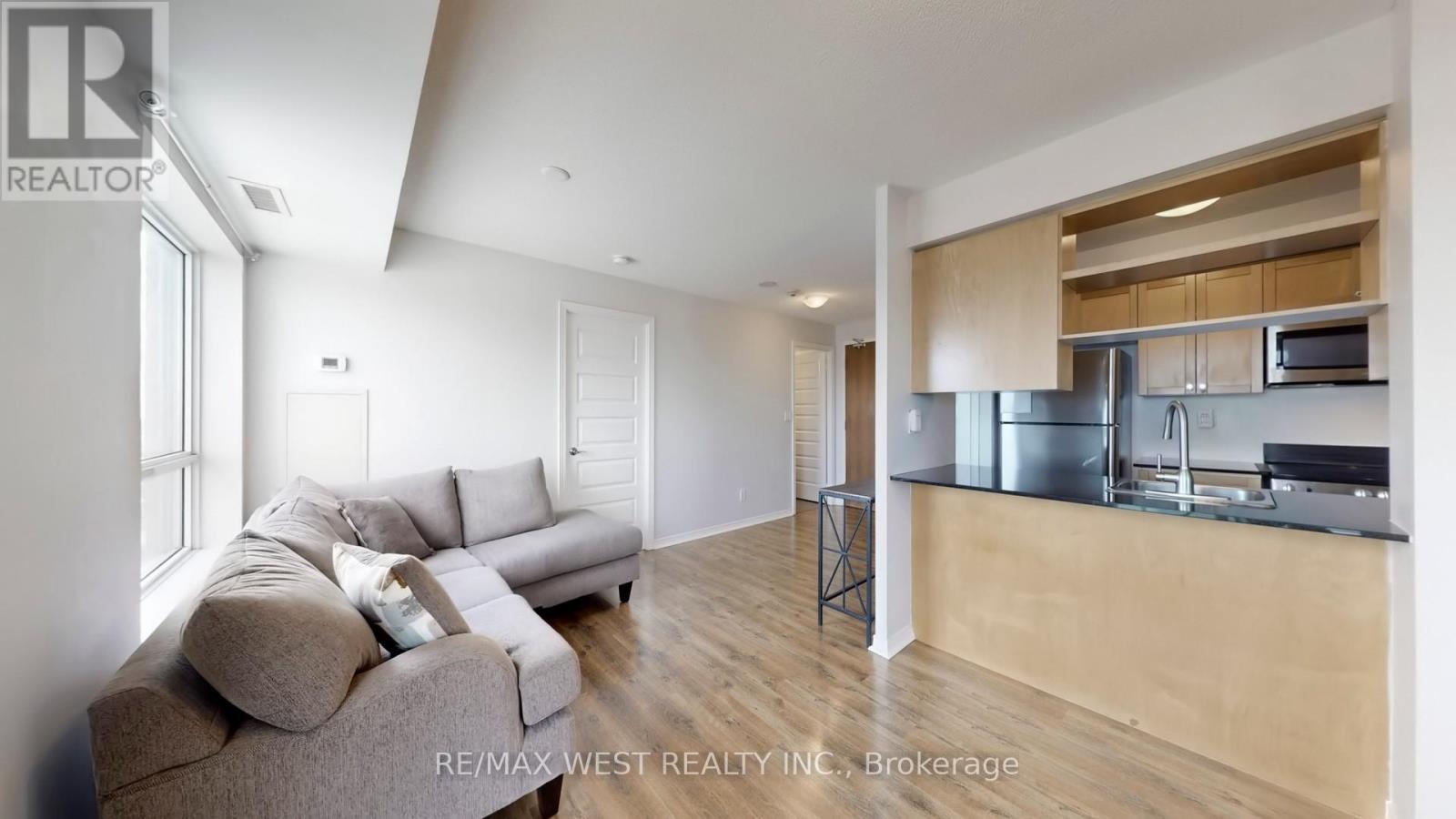 See the skyline from every angle! Enjoy breathtaking, panoramic city views from not one, but two private and generously sized balconies-perfect for relaxing or entertaining. This bright corner unit offers a thoughtfully designed open-concept layout that maximizes both space and functionality. The spacious primary bedroom is a true retreat, featuring its own private balcony and a 4-piece ensuite. The second bedroom includes the added convenience of ensuite laundry. Gleaming laminate flooring runs throughout, complementing the modern aesthetic. Flooded with natural light from floor-to-ceiling windows, this space is warm and inviting. The kitchen is designed for both style and practicality, complete with a breakfast bar and a cutout that enhances the open, airy feel. This suite comes with a second full washroom, ideal for guests. Tucked away in a quiet area, this sun-filled, charming suite is perfectly suited for comfortable, happy living-an ideal choice for a starter home or savvy investment. (id:4555)