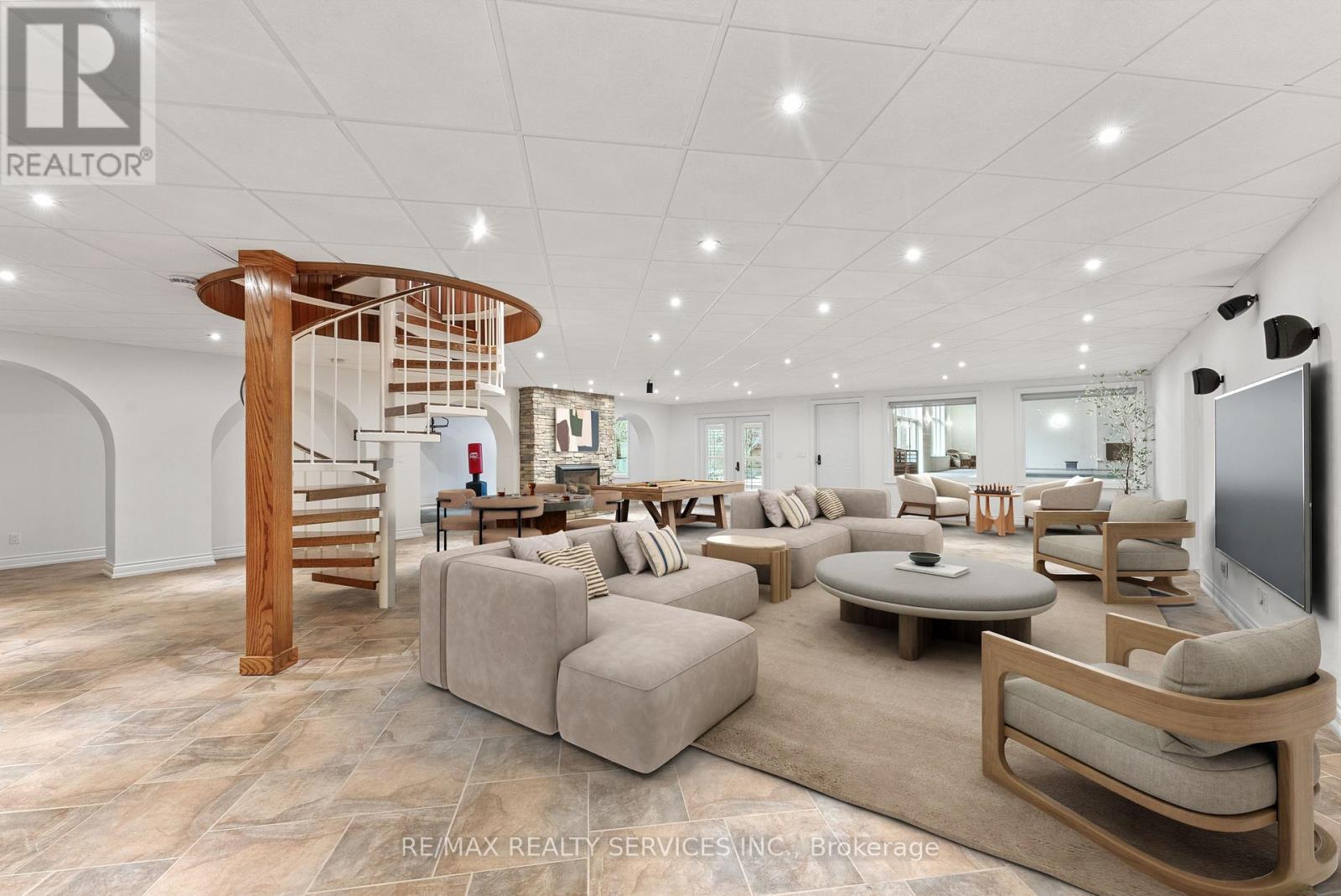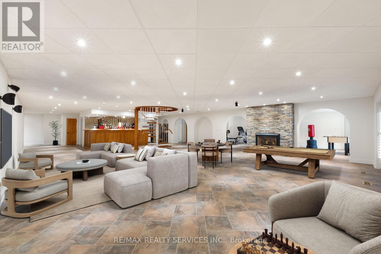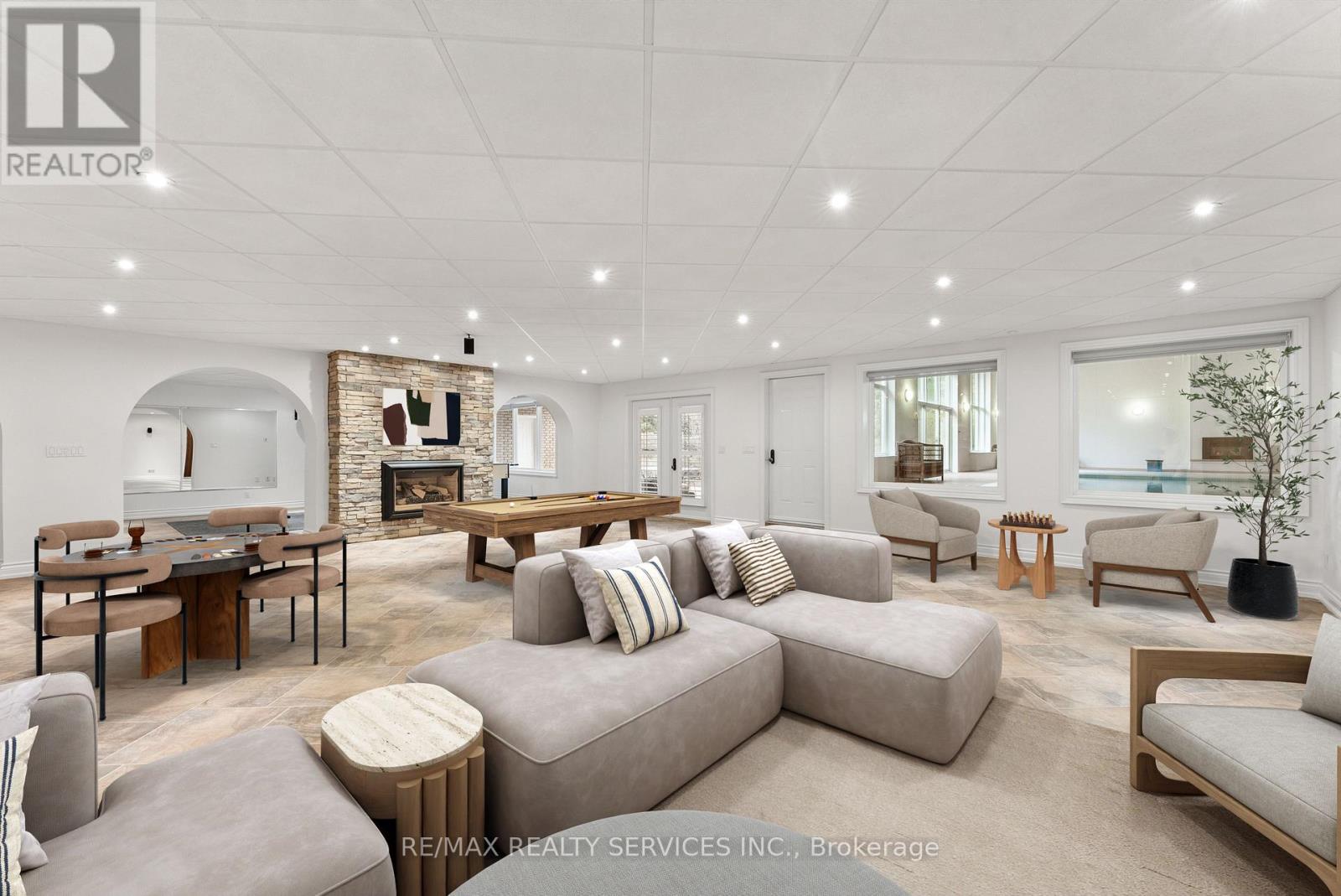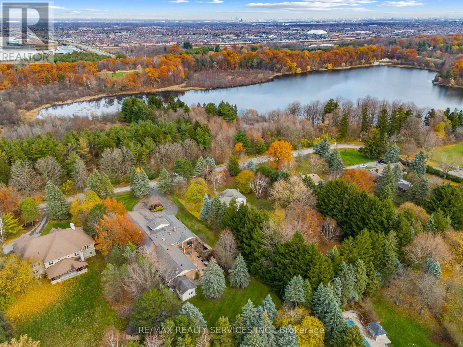 Welcome to this stunning custom-built raised bungalow on a private 1-acre lot in one of Brampton's most prestigious enclaves, directly across from Heart Lake Conservation Area. Offering 7,700 sq ft of total living space, including 3,200 sq ft above grade and a breathtaking 4,500 sq ft walk- out basement with an indoor pool complex and waterfall, this home is a true retreat. The chef's kitchen features a walk-out balcony, custom wood cabinetry, and natural light, capturing unobstructed views of Heart Lake and surrounding forest. The family room offers a walkout balcony overlooking the firepit and landscaped gardens, perfect for gatherings. The upper level includes four spacious bedrooms, with the primary suite boasting a private ensuite and walk-in closet. The lower level offers two additional bedrooms and a large recreational area with oversized windows, a fireplace, wet bar, and walkout to a stamped concrete patio. The indoor pool (18 ft x 42 ft) area features 14-foot ceilings, a waterfall, swim-up bar, and state of the art climate control, creating a year-round resort experience. Completing this luxurious space is a sizable gym, sauna and shower area. Indoor-outdoor flow seamlessly links to beautifully landscaped gardens and a stone patio with a gas firepit, providing an outdoor oasis. The backyard offers privacy and tranquility with mature trees, lush landscaping, and a large open yard for recreation. The front driveway is stamped concrete, with 5 vehicles indoors. Located on conveted Conservation Drive, surrounded by multimillion-dollar properties and with no homes across the street, this estate offers unobstructed views, nearby trail access, abundant wildlife, and a luxurious lifestyle immersed in nature. (id:4555)