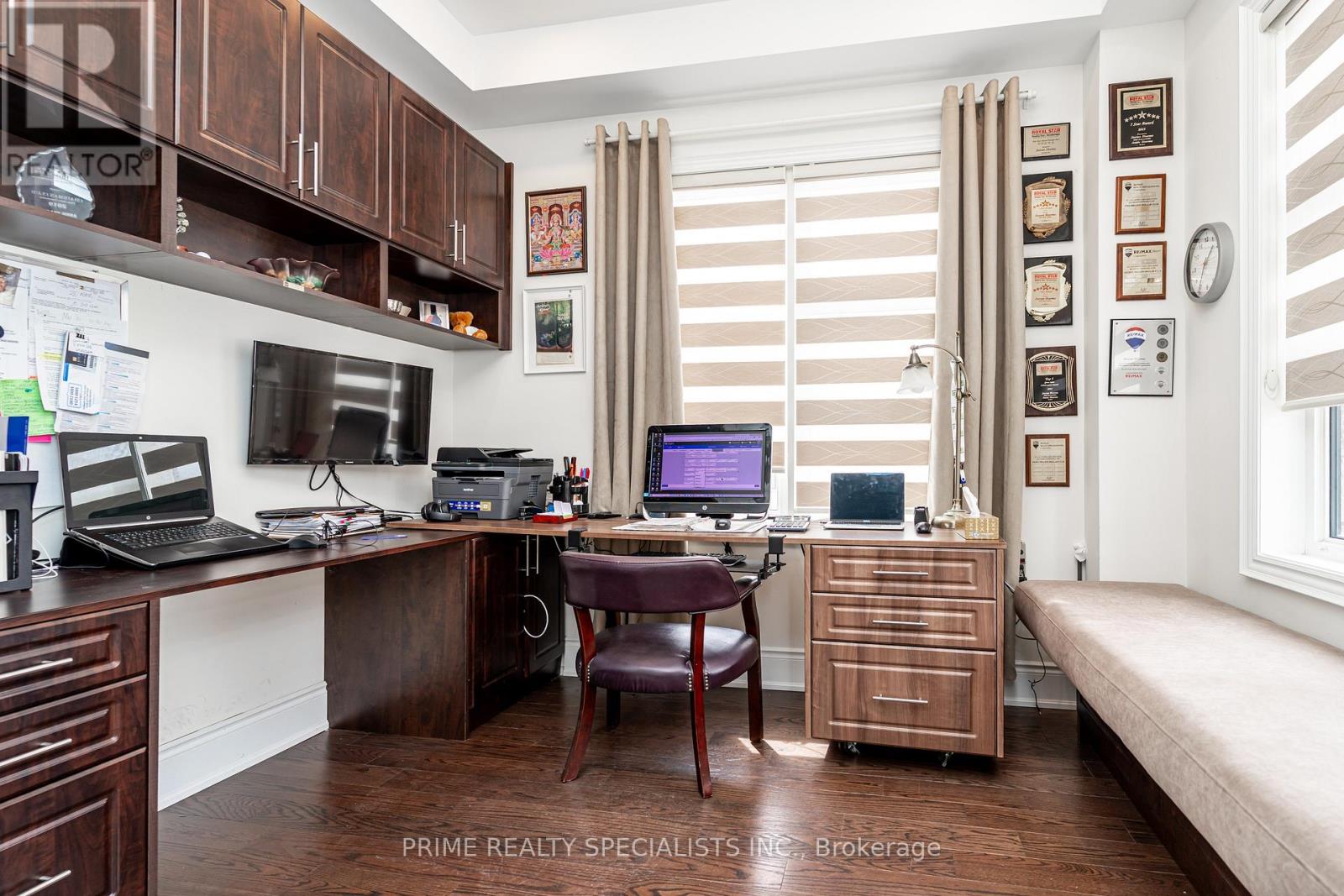 Most Spectacular Luxury Living In A One-Of-A-Kind 5-Bedroom, 4.5-Bathrooms, On Premium Corner Lot. Features 4,353 Sq Ft Of Upper-Grade Living Space. 10 Ft Ceilings on the main floor, 9 Ft on the 2nd floor, And 9 Ft in the Basement. Home Offers Unique Dual Master Bedrooms. Very Unique, Open, And Spacious Foyer With Double-Door Entry And Vaulted 22 Ft Ceilings With Windows For Natural Light. Northwest-Facing With Lots Of Sunlight And Windows. Over $210K Spent On Upgrades. Luxury Kitchen Comes With Ceiling-Height, Extra-Large Wall Cabinets With Crown Moulding, Built-In Custom Stainless Steel JennAir 5-Piece Appliance With Custom 6-Burner Gas Cooktop, Custom Pantry, Servery, And Quartz Countertops With Matching Backsplash. Kitchen Features A Large 7 Ft X 5 Ft Centre Island With Under-Counter Storage Cabinets, Perfect For Entertaining. Large Family Room Boasts Large Windows, Wall-Mounted TV Bracket, And Ample Space For Three Couches. All Bedrooms Are Attached With Walk-In Closets And Ensuite Bathrooms Containing Glass Shower Stalls. All Bedroom Ceilings Are Vaulted For Extra-High Windows For Natural Light. Throughout The Home: Pot Lights, Upgraded Light Fixtures, And Hardwood Flooring. Three Bedrooms Have Wall-Mounted TV Installation Brackets. Main Floor Office Features Built-In Desk, Pot Lights, And Sitting Area. Large Living And Dining Room With Coffered Ceiling And Designer Light Fixtures. Spacious Eat-In Kitchen With Large, Open Breakfast Area. Master Bedroom Ensuite Comes With A Retreat Room (Usable As A 5th Bedroom). Large Walk-In Closet (17 Ft X 11 Ft) Attached To Master Bedroom Through Retreat Room. Mud Room Contains Laundry Facilities And Wall-Mounted Storage Cabinets. Has A Separate Entrance. Two Entrances To Basement. Garden Door Walk-Out To Backyard From Kitchen. Large Backyard Boasts Complete, Shadow-Free Sunlight. House Features Built-In Ceiling Speakers And 22 Ft High Vaulted Ceiling At Foyer And Main Entrance, Offering Natural Light Throughout. (id:4555)