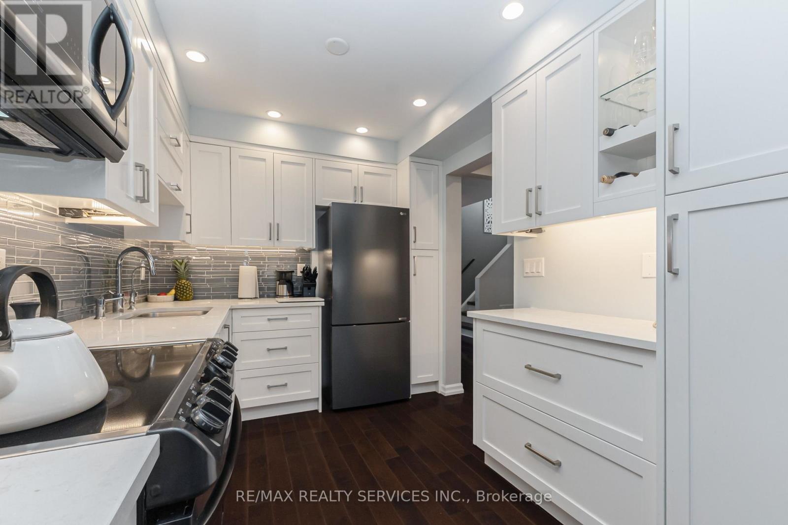 Look NO further!! Don't miss this Gem in The Neighbourhood. Location! Location! Welcome to 4 Scribner Court! This beautiful end-unit townhome feels like a SEMI-DETACHED and sits on an exceptionally large lot with over 100 ft of depth, offering rare outdoor space and privacy. The home features a bright open-concept layout with a custom-made kitchen finished with Cambria quartz countertops, ideal for both everyday living and entertaining. Spotless hardwood flooring runs throughout the main and second floor, complemented by modern pot lights that create a clean and inviting atmosphere. Step outside to enjoy a spacious backyard complete with a gazebo, perfect for evening relaxation and family activities. The backyard deck features elegant glass railings,matching the glass railings at the front of the home for a sleek, contemporary look. This is a well-maintained, taken-care-of home that truly shows pride of ownership. The finished basement includes a full washroom and a kitchenette, providing excellent space for extended family or added convenience. A fantastic opportunity to own a move-in-ready home that combines style,comfort, and functionality (id:4555)