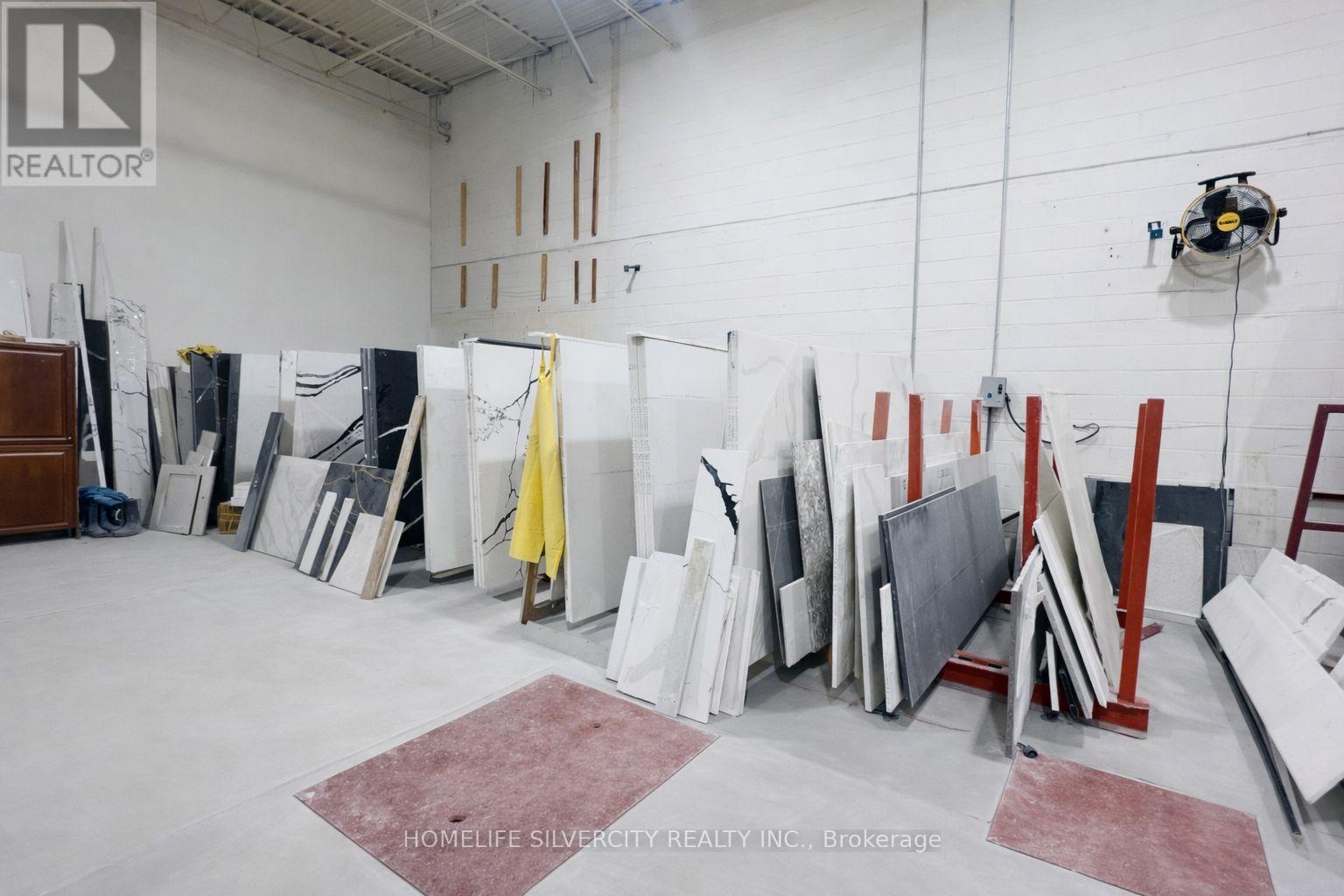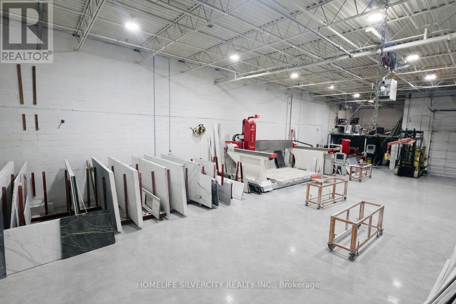 Prime M2 Industrial Condo | High-Exposure Opportunity Position your business in this premium M2-zoned industrial condo designed for performance and flexibility. Featuring 18 ft clear ceiling height, this unit delivers the volume and efficiency required for any kind of operations.The space offers a highly functional layout with a professional front showroom/office for client-facing operations, complemented by a large open-concept rear workspace ideal for manufacturing, warehousing, assembly, and distribution.Located within a well-maintained, professional industrial plaza, the property provides excellent access for 53' trailers, ensuring seamless logistics, shipping, and receiving.Currently a well-established tile and countertop business, featuring marble cutting equipment and on-site production of high-quality countertops and tiles. Zoned M2 - this property supports a broad range of permitted uses, including manufacturing, processing, packaging, and repair operations, along with accessory office and administrative functions.The zoning also allows for select commercial and service-based uses, including retail, restaurant, personal service, recreational, hotel, and animal hospital uses (subject to zoning provisions), offering exceptional flexibility for end users and investors alike. Ideal for owner-users, investors, and growing businesses seeking a strategic industrial location with versatile permitted uses and strong operational potential. (id:4555)