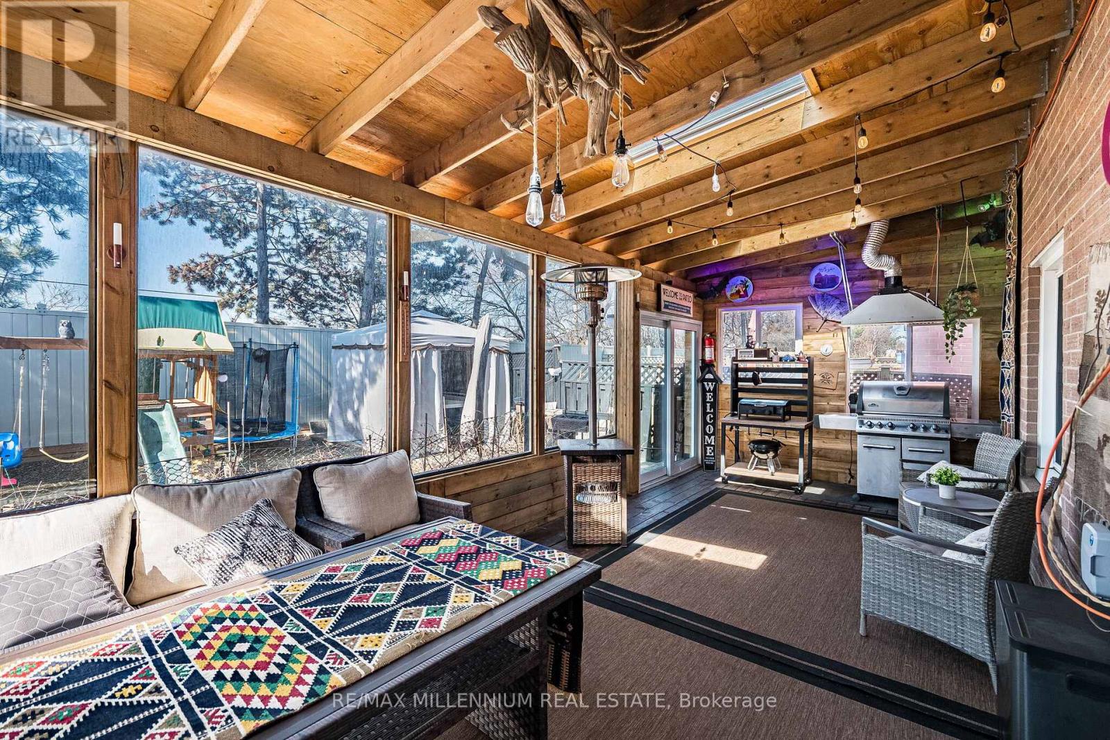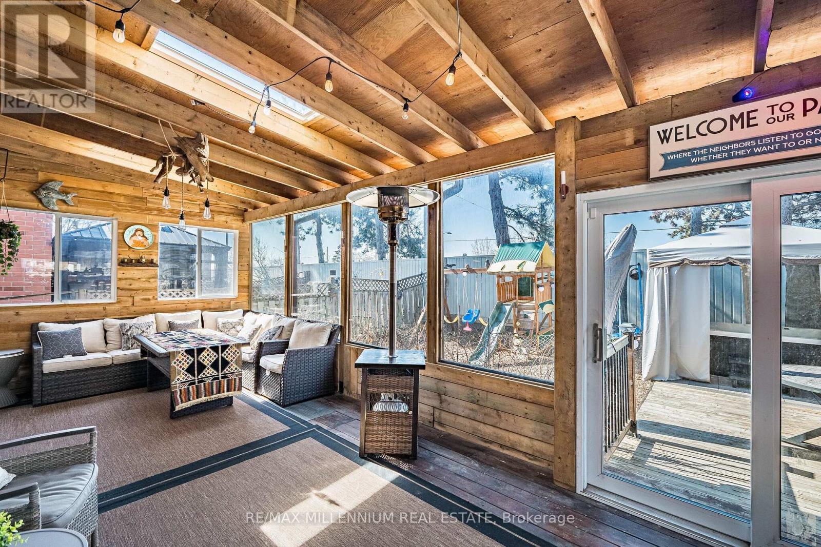 Pristine Fully Upgraded Detached Home Showcasing True Pride Of Home ownership, Featuring Approximately $170K In Premium Renovations! over 2000 sq feet of living space,This Stunning Property Boasts A Custom Oversized Front Entry Door, Brand New Hardwood Flooring, And A Solid Oak Staircase With Elegant Iron Pickets Throughout. Enjoy A Beautifully Renovated Modern Kitchen, Along With Fully Updated Bathrooms Across The Home. Pot Lights Enhance Both The Main Floor And Finished Basement, Creating A Bright And Inviting Space.The Spacious Living Room Walks Out To A Private Wooden Deck With No Rear Neighbours. Exterior Features Include Newly Installed Exposed Aggregate Concrete Surrounding The Home And Extending To The Backyard.Finished Basement Apartment With Separate Entrance, Featuring Custom Cabinetry, Built-In Closets, And Rough-In For Separate Stacked Laundry-Ideal For Extended Family Or Income Potential.Relax Year-Round In The Fully Enclosed Sun room Extending From The Home Into The Backyard, Featuring Sliding Windows And A Built-In Range Hood-Perfect For Indoor BBQing In Any Season. Backyard Oasis Complete With A Hot Tub, Jacuzzi, And Dedicated Children's Playground Area. Roof And Appliances Have Been Recently Updated, Along With A New 125-Amp Electrical Panel (Upgraded Last Year).A True Turn-Key Home Offering Luxury Living-A Perfect Summer Oasis And Cozy Winter Retreat! (id:4555)