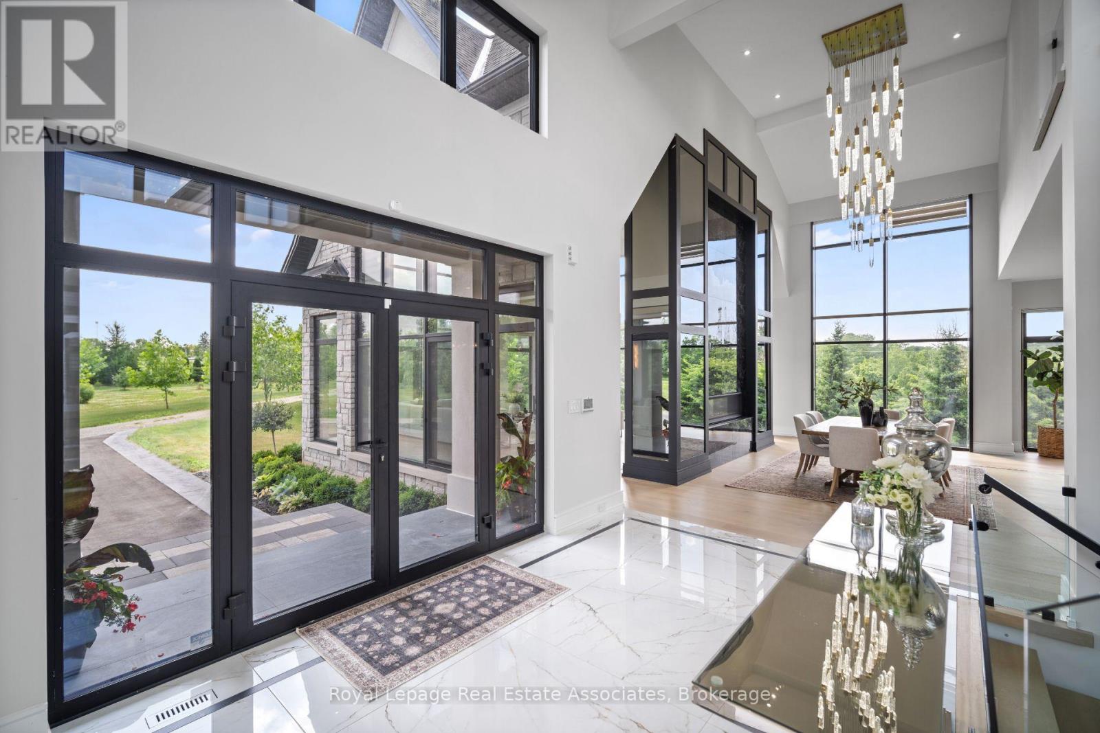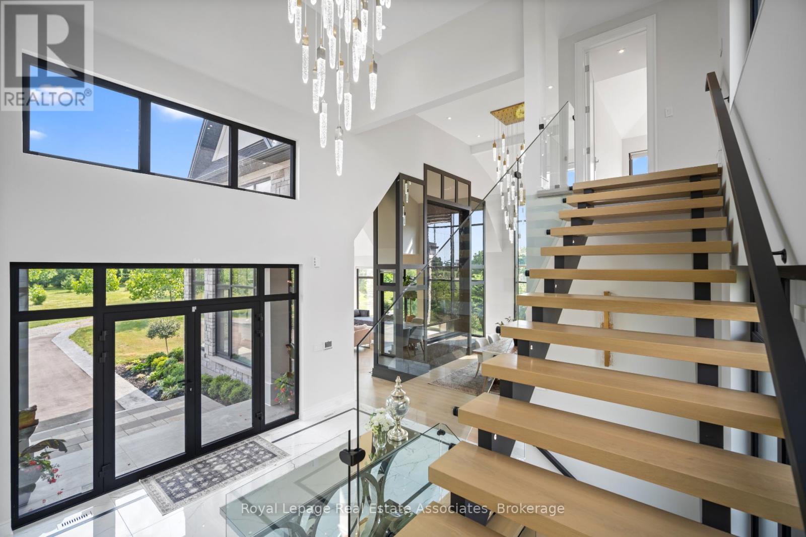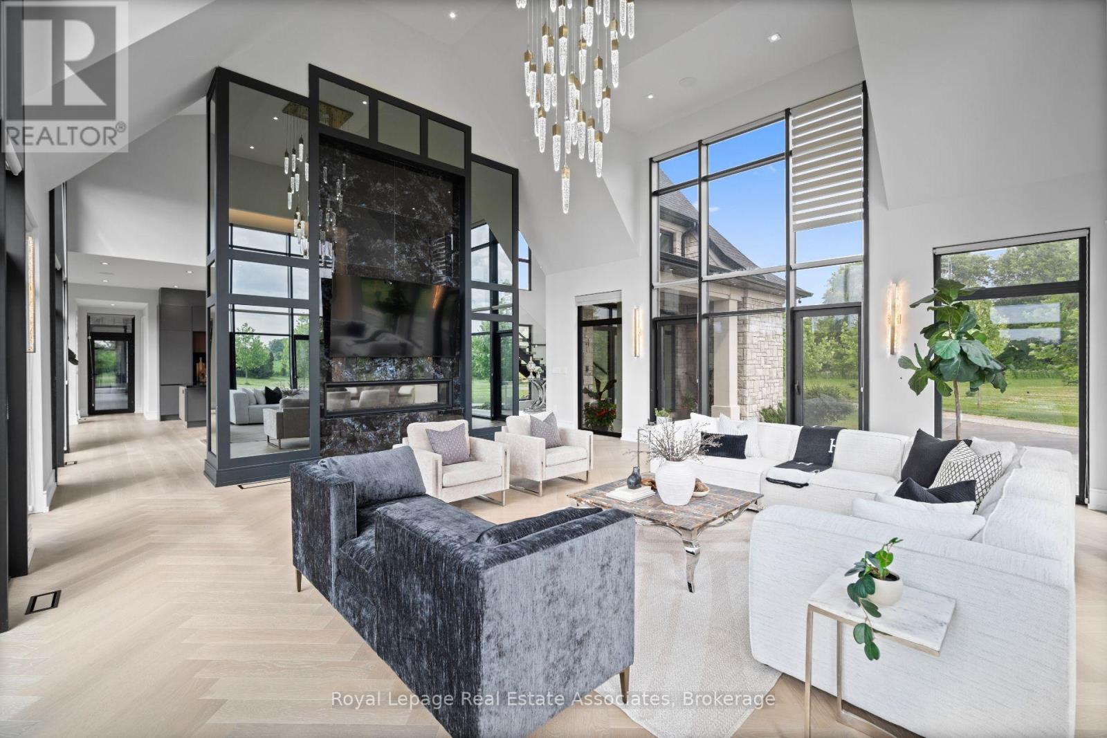 Welcome to an architectural masterpiece nestled on 18 private acres of picturesque landscape. This brand-new, custom- built estate is a modern sanctuary that effortlessly blends luxury, design, and nature. Step inside to discover stunning herringbone light hardwood floors, soaring cathedral ceilings, and dramatic black marble accents that create a bold, yet elegant aesthetic. Every inch of this home has been crafted with top-of-the-line imported finishes, from high-end designer lighting to exquisite custom millwork and built-ins. The black-framed, floor-to-ceiling windows flood the space with natural light while perfectly framing the serene outdoor views. The chefs kitchen and open-concept living space are made for both entertaining and everyday luxury. Downstairs, a fully finished basement with a sleek wet bar provides the perfect space for hosting or relaxing. Outside, the grounds are professionally landscaped, offering a private and peaceful setting that feels like your own retreat from the world. This is not just a home it's a lifestyle. A modern design marvel on a breathtaking canvas. (id:4555)