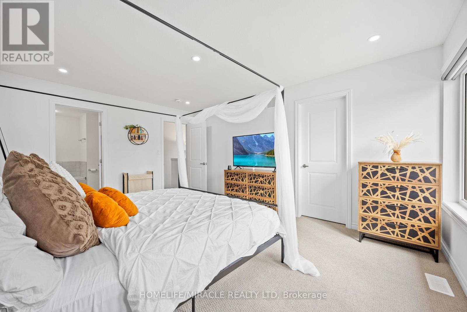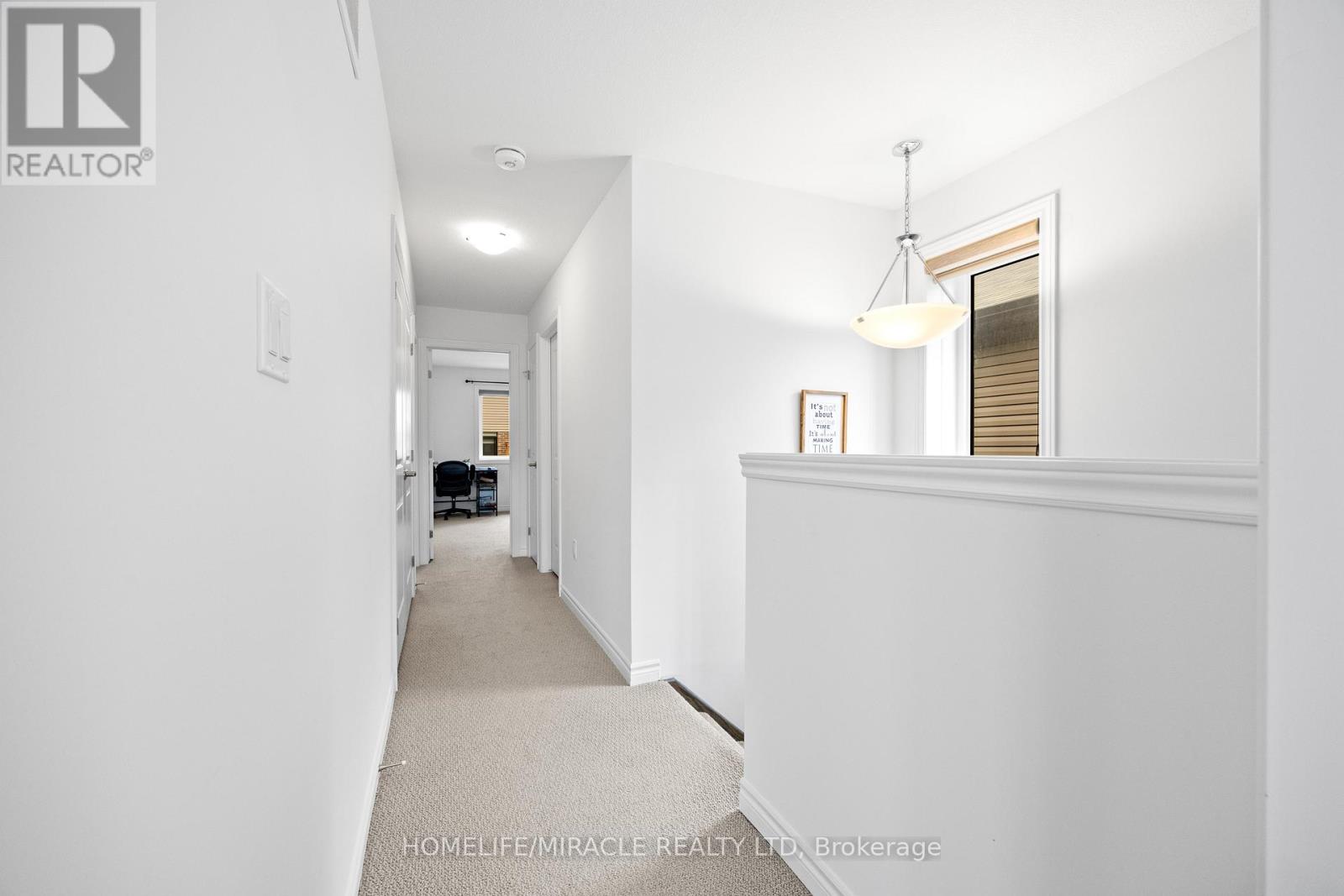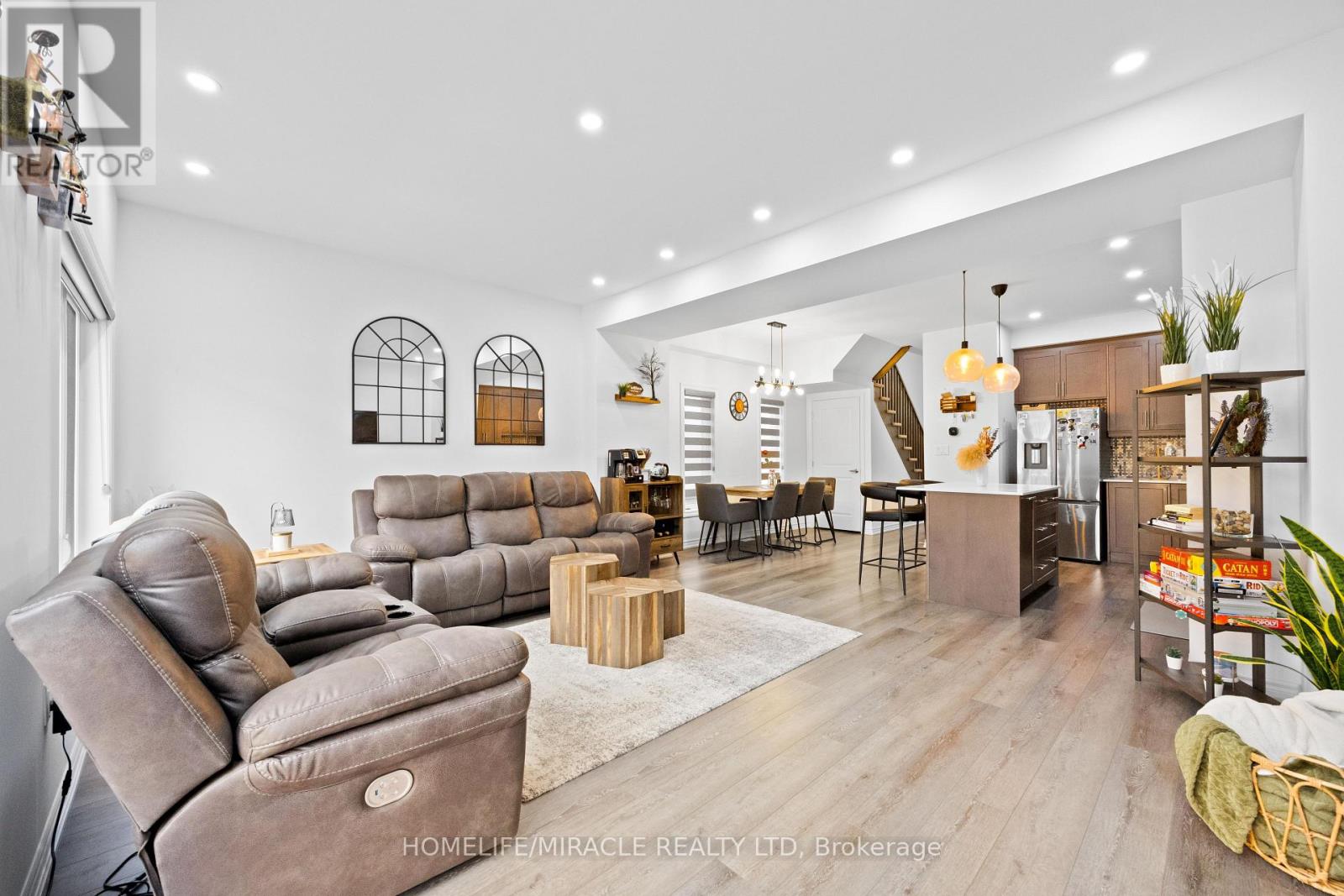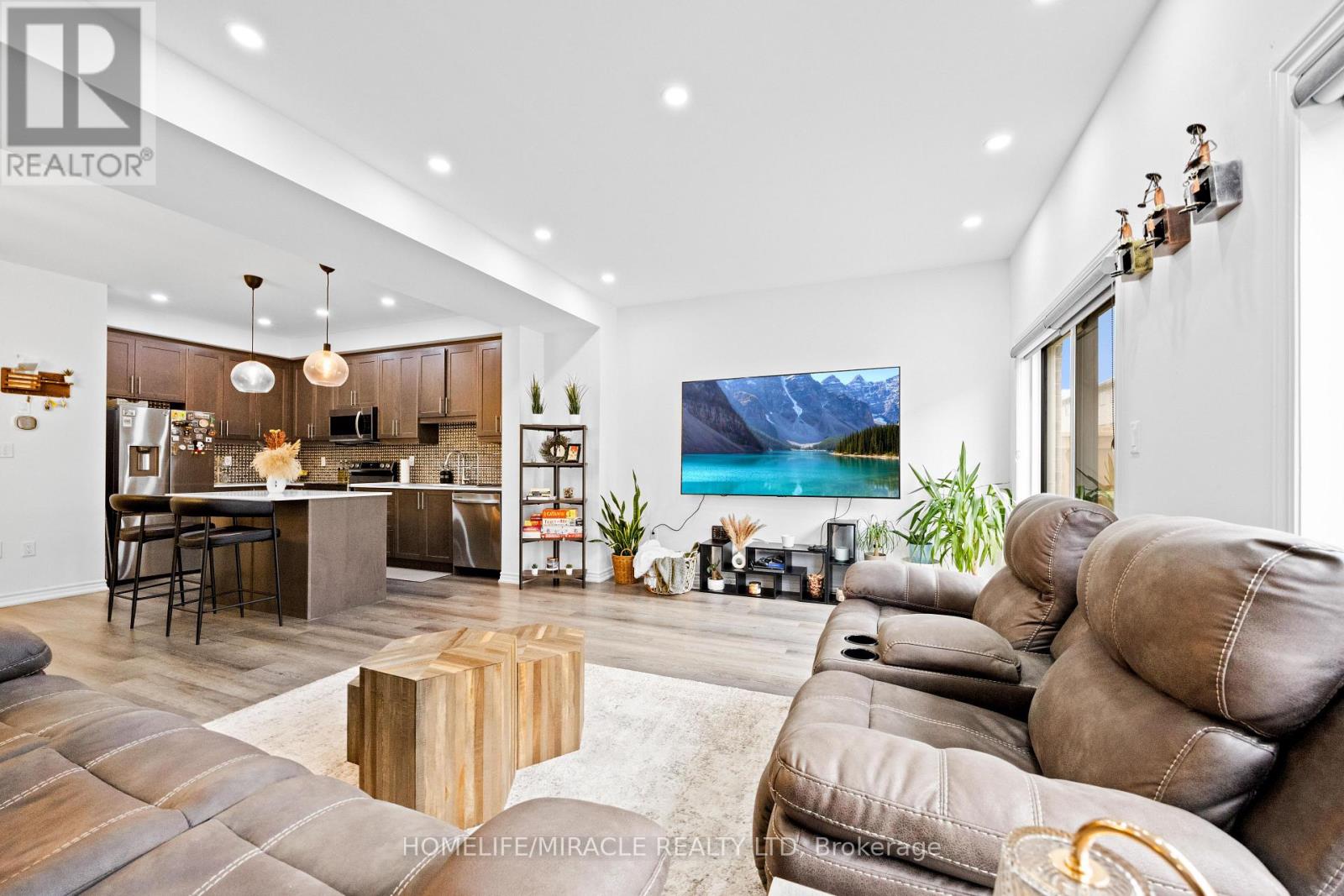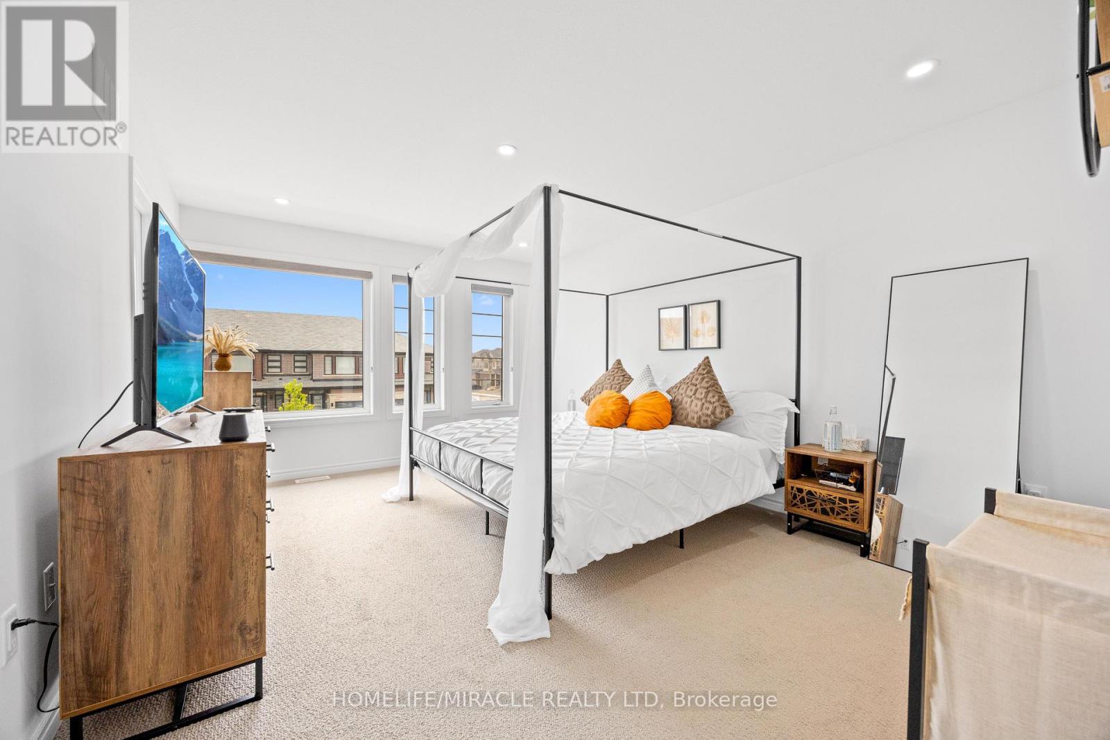 -Main Awesome End-unit Freehold Townhouse (feels like semi detached), Move In Ready! Corner Enhanced End Unit 1709 Sq Feet 2 Storey Freehold Townhouse Just Like Semi, In Sought Area Of brant West! 3 Bedrooms, 2.5Baths.Bright/Spacious Have Larger Windows For Natural Light Floor 9Ft Ceiling, Gorgeous Kitchen With Bigger Living & Dining Area, Quartz Counter, Deep Sinks. Must-See, 3 Years Old, Located in West Brantford community features a modern open-concept design with 9-foot smooth ceilings and laminate flooring throughout the main floor. The upgraded kitchen boasts quartz countertops, a stylish undermount sink, extended-height upper cabinets, a kitchen island, and a microwave space saver provision, along with brand-new stainless steel appliances, including a fridge, stove, and dishwasher. Beautiful entry leads to a large foyer, opening into a bright living room with a walkout to the backyard, filled with natural light from oversized windows, making it perfect for family gatherings or entertaining friends. The main floor also includes pot lights to enhance the space with warm, modern lighting. Upstairs, the primary bedroom offers a walk-in closet and a luxurious ensuite full washroom, while the second bedroom also includes a walk-in closet. A convenient second-floor laundry room comes equipped with a brand-new white front-loading washer and dryer. Located in a family-friendly neighborhood, this home is just minutes from top-rated schools, a community center, shopping, scenic trails, and major highways, with visitor parking and a kids' park conveniently situated in front of the house. Don't miss this incredible opportunity schedule a showing today! Furnace, A/C and Tankless hot water owned. (id:4555)