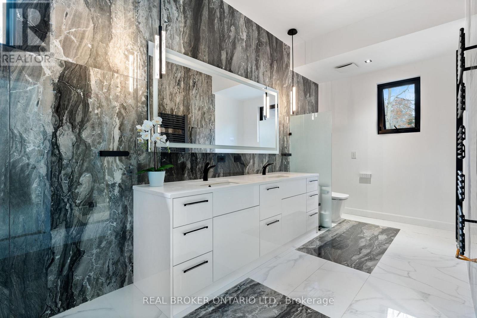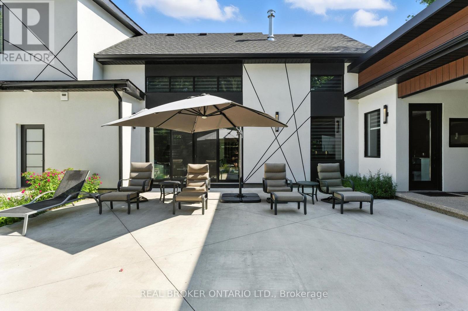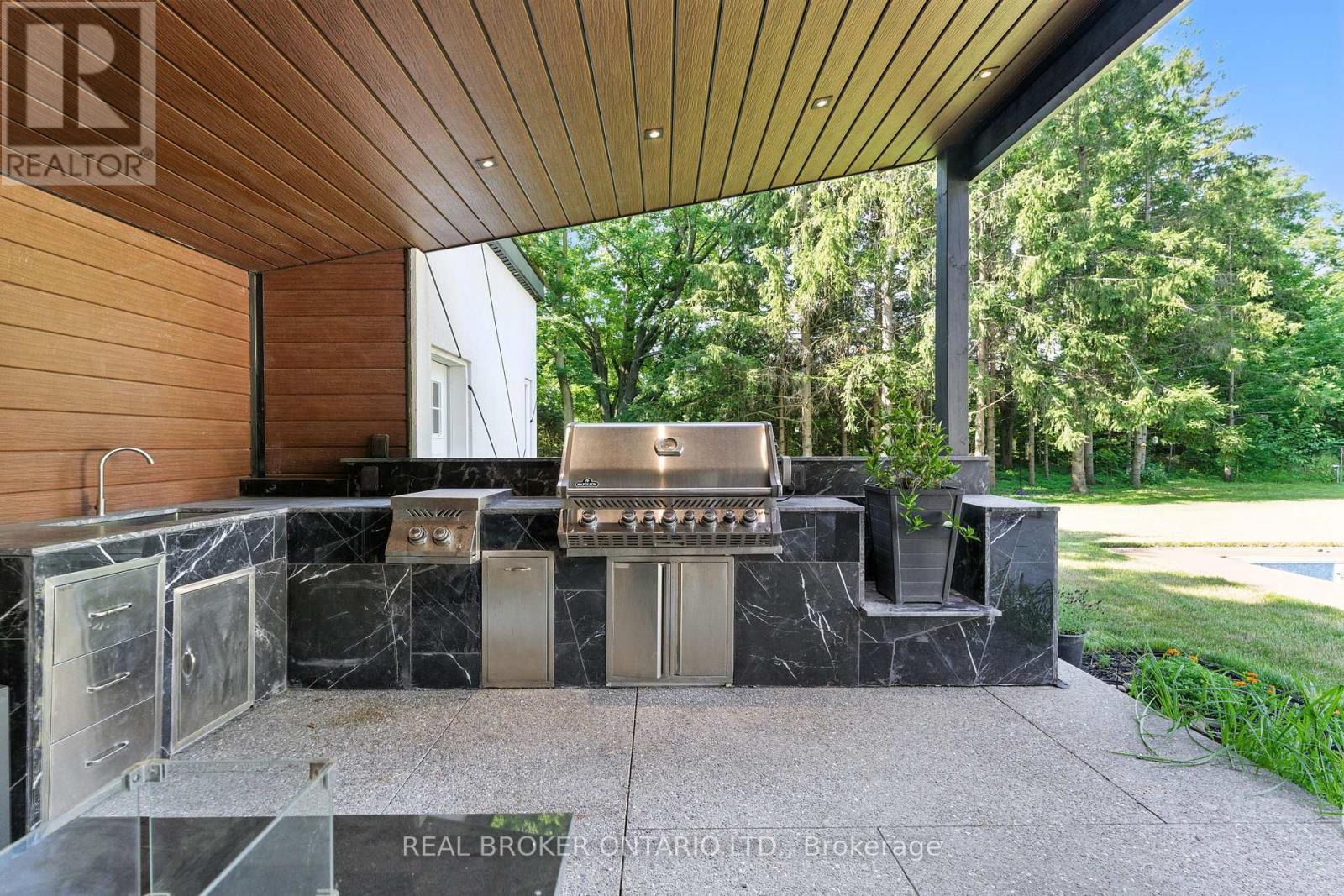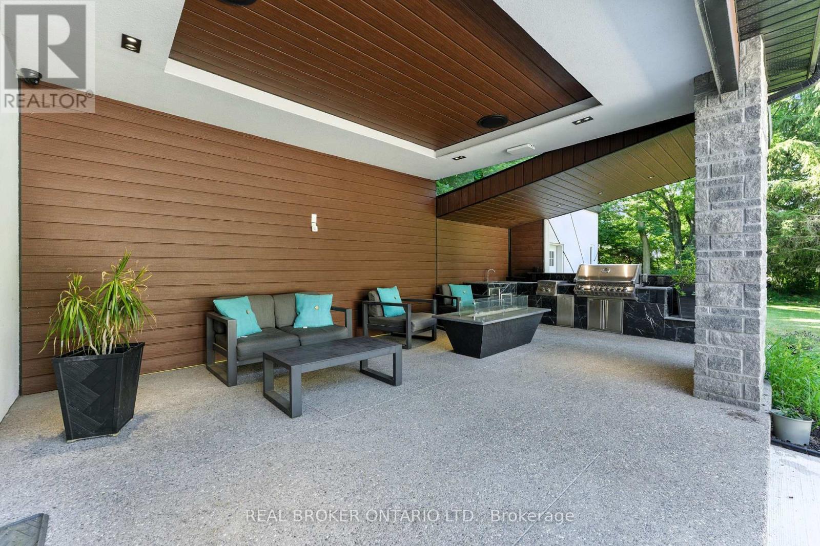 Experience the ultimate blend of cutting-edge technology and refined luxury in this exceptional brand-new estate. Set on a private lot with a drilled well and septic system, this impressive 3-bedroom, 3.5-bath home offers a thoughtfully designed open-concept layout with in-floor heating throughout the main level for year-round comfort. Designed for modern living, the home is fully equipped with advanced smart features including Wi-Fi controlled shades, a custom facial recognition smart lock, a premium water treatment system, and an integrated Sonos sound system. The chef-inspired kitchen is a true showpiece, complete with high-end Bosch appliances, a Dacor refrigerator, a built-in coffee station, custom cabinetry, quartz countertops, and striking oversized tile flooring. The living space is warm and inviting, highlighted by a custom Heat & Glo fireplace and seamless flow for entertaining. The primary suite offers a spa-like retreat with a luxurious ensuite featuring multiple body sprayers, a hydrotherapy tub, heated towel rack, Bluetooth mirrors, and designer lighting. Entertainment continues in the fully equipped home theatre with premium audio-visual components and a large projection screen, perfect for movie nights. Step outside to your own private oasis featuring a saltwater pool, a fully outfitted natural gas outdoor kitchen, granite fireplace, and wiring for outdoor entertainment-ideal for hosting or relaxing in style. Built with quality and longevity in mind, this home also includes a high-capacity septic system, two-stage leaching bed, and a durable 40-year fiberglass roof. A rare offering that perfectly combines luxury, comfort, and innovation. (id:4555)
