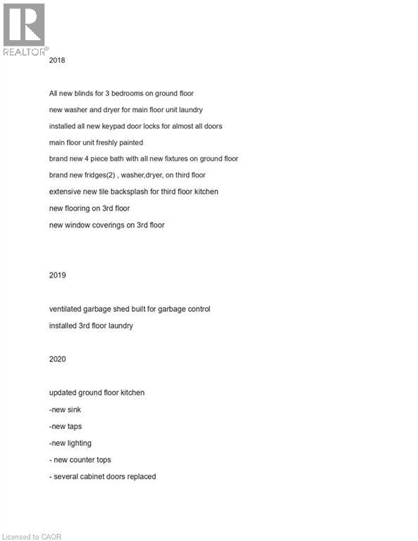 LEGAL TRIPLEX! Recent updates include: plumbing, wiring, 2nd floor and 3rd floor new kitchens(2018). Each unit has it's own laundry, separate water and hydro meter, 2nd and 3rd floor have a purpose built fire escape, each unit has interconnected smoke detectors and carbon monoxide with strobe. Large oversized driveway with parking for up to 10 cars, double detached garage with hydro, garbage shed, rear oversized hard surface courtyard, fully fenced yard. One of the best looking houses on the street. Water supply from road to house recently replaced. (id:4555)