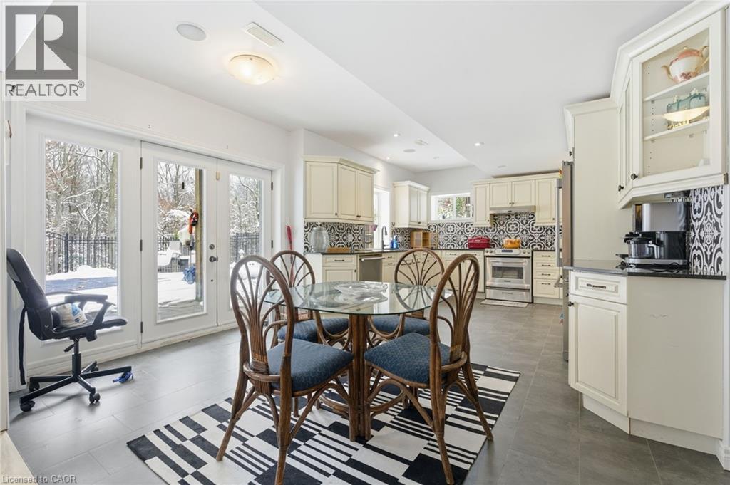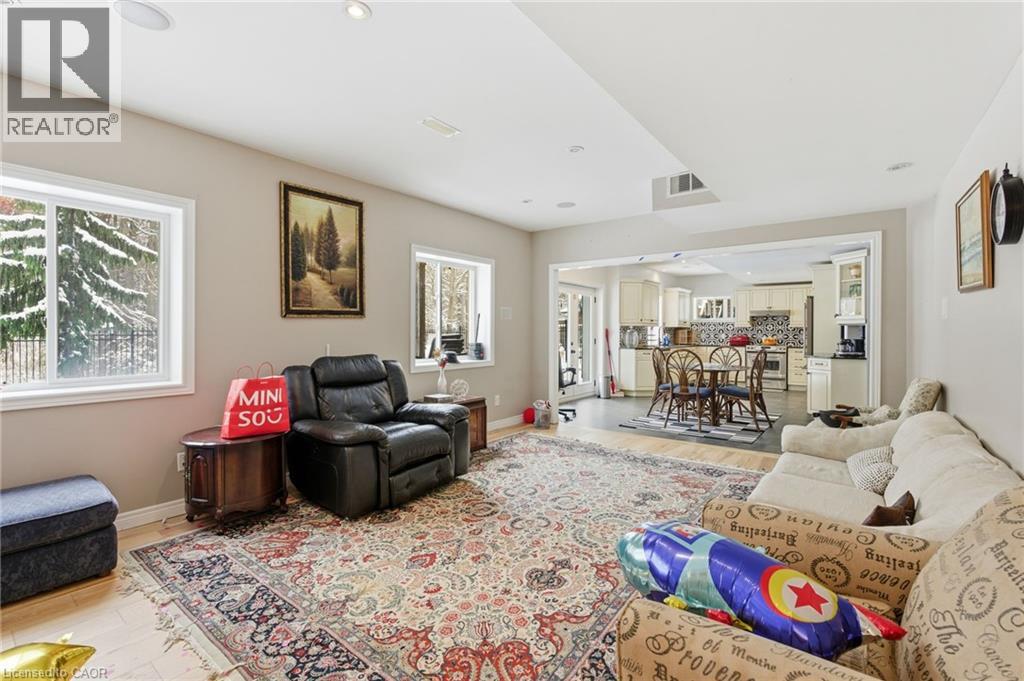 Welcome to 17 Hoodless Court, an executive 2-storey home nestled on a quiet cul-de-sac in one of Brantford’s most desirable family communities. With nearly 5,000 sq ft of finished living space, this beautifully appointed property offers comfort, versatility, and a touch of luxury at every turn. The main floor features a bright open-concept layout with soaring ceilings, hardwood flooring, and oversized windows that flood the home with natural light. The chef’s kitchen boasts rich maple cabinetry, granite counters, marble backsplash, stainless-steel appliances, and a spacious island that seamlessly connects to the family room with a gas fireplace, ideal for entertaining. A formal dining room, home office, and main-floor bedroom with ensuite privilege complete this level. Upstairs, you’ll find four large bedrooms and three full baths, including a primary suite with a sitting area, walk-in closet, and a spa-inspired ensuite. The fully finished lower level offers exceptional flexibility with a complete in-law suite featuring a second full kitchen with quartz counters, large windows, and a private walk-out to the backyard. Step outside to your personal retreat, a stunning saltwater pool surrounded by landscaped gardens and backing onto lush green space with no rear neighbours. Close to parks, trails, schools, and easy highway access, this home truly has it all; luxury, lifestyle, and location. (id:4555)