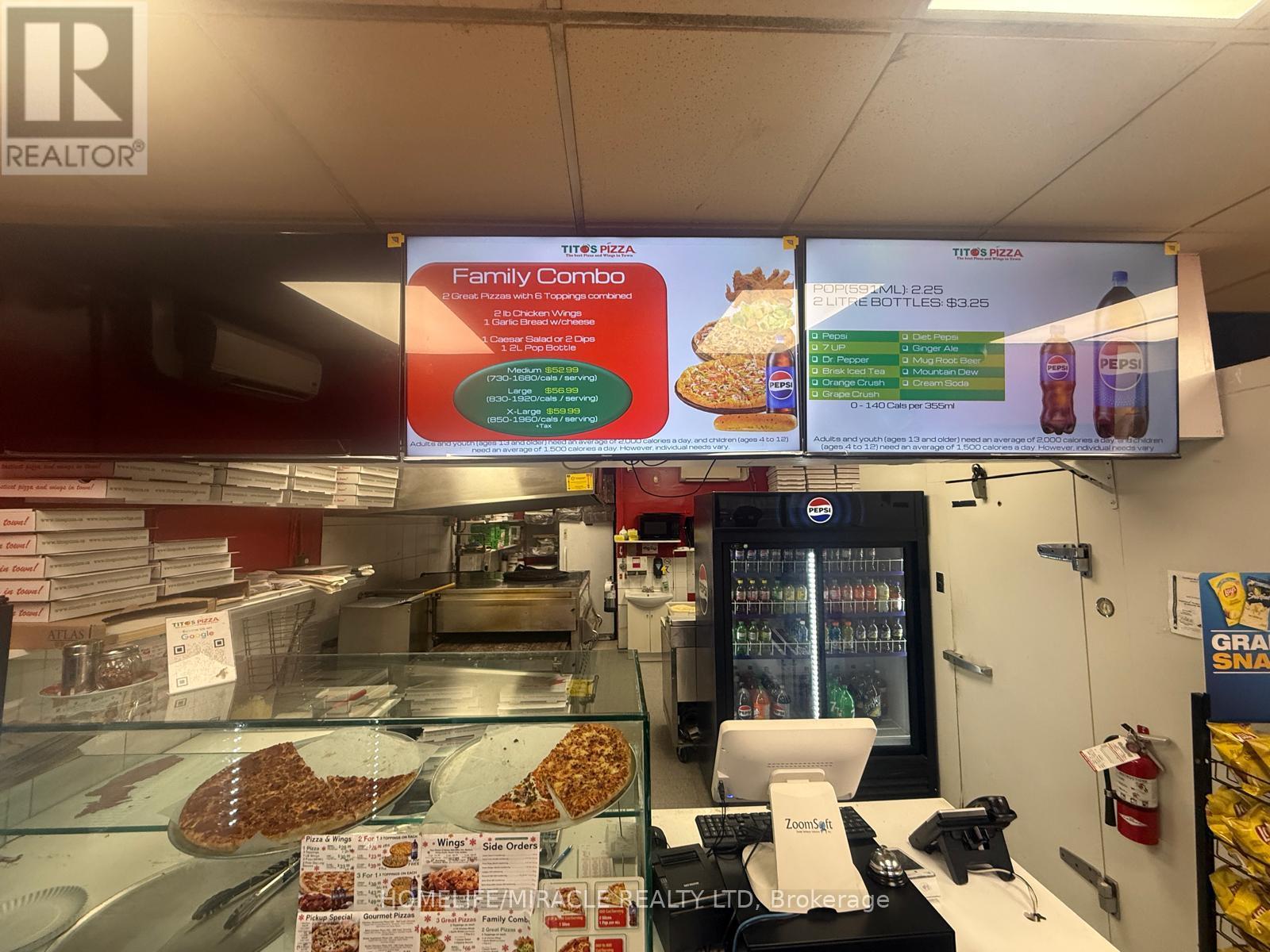 TITO'S PIZZA Business in Brantford is For Sale. Located at the busy intersection of Brantwood Park Rd/Dunsdon St. Surrounded by Fully Residential Neighborhood. Close to Schools, Highway, Offices, Banks, Major Big Box Store and Much More. Business with so much opportunity to grow the business even more. Monthly Sales: Approx.$32,000-$34,000 Rent: $1665/m including TMI & HST, Lease Term: Existing 9 + 5 Years Option to renew , Royalty: $900/m. (id:4555)