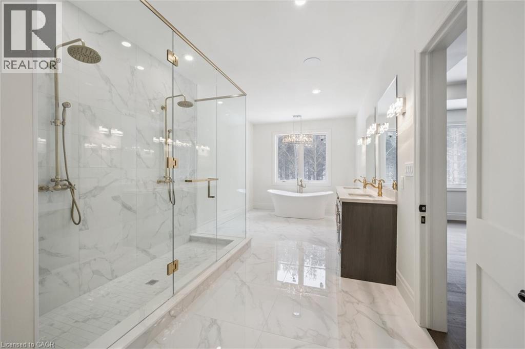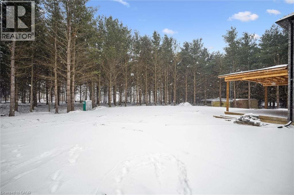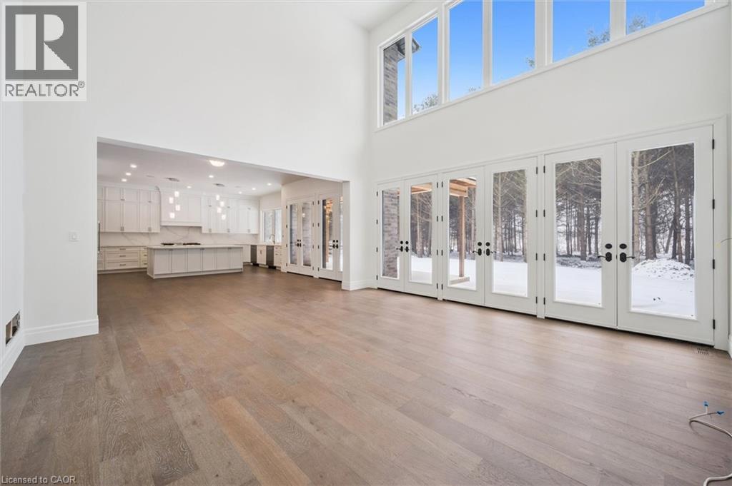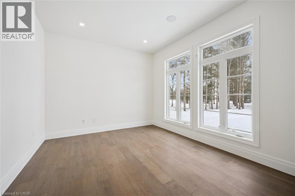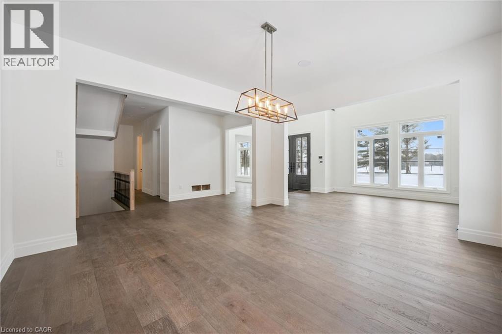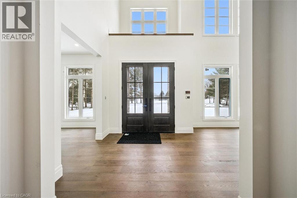 Tucked away in the quiet, tranquil outskirts of Brantford, this exceptional 5,000 sq. ft. new build sits on nearly 3 acres of land. Surrounded by towering evergreens and backing onto Fairchild Creek, 5 West Harris Rd. offers a rare sense of privacy and natural beauty—seamlessly paired with refined luxury living. The home features expansive living spaces with soaring cathedral ceilings, rich engineered hardwood flooring throughout, and modern finishes. Large windows frame breathtaking views of the private, wooded surroundings, creating a seamless connection to nature. Just off the front door, a dedicated home office provides a quiet workspace. A formal living room and separate formal dining room offer elegant spaces for entertaining, while the chef’s kitchen, designed for everyday living and gatherings, features high-end appliances, extensive cabinetry, a large centre island, a convenient servery, and an additional dining area opening effortlessly to the family room. Upstairs, four spacious bedrooms each feature their own private ensuite. The primary suite is a true retreat, complete with a generous bedroom, spa-inspired ensuite featuring a freestanding tub, a massive walk-in shower, and an expansive walk-in closet with a skylight that pours natural light into the space. The full basement provides a blank canvas to tailor to your lifestyle—ideal for a home theatre, gym, bar, or games room. Step outside to a pool-sized backyard with a covered outdoor living area, perfect for relaxing or entertaining while immersed in nature. (id:4555)