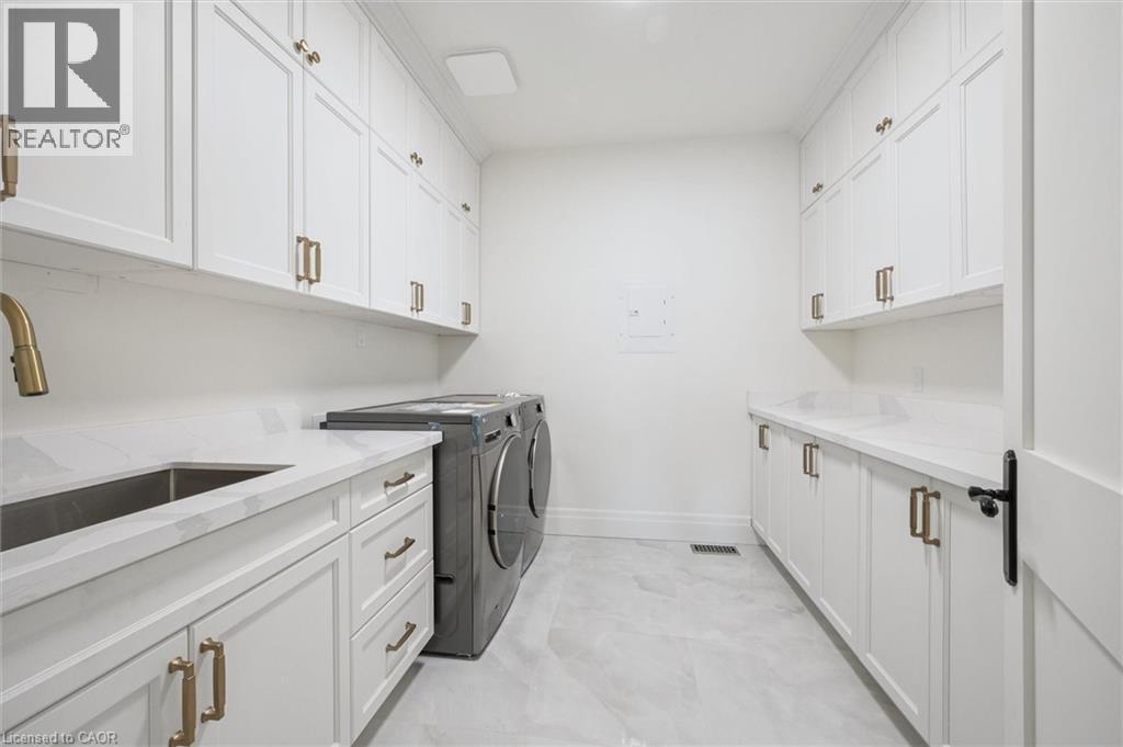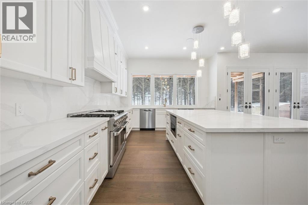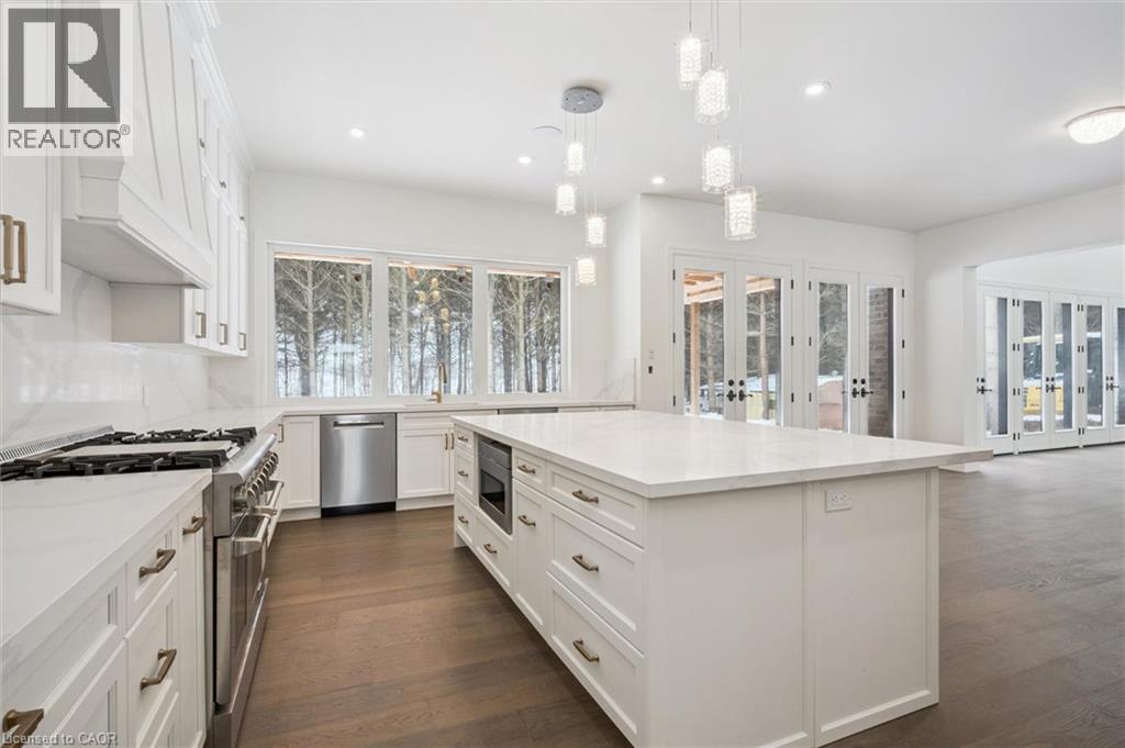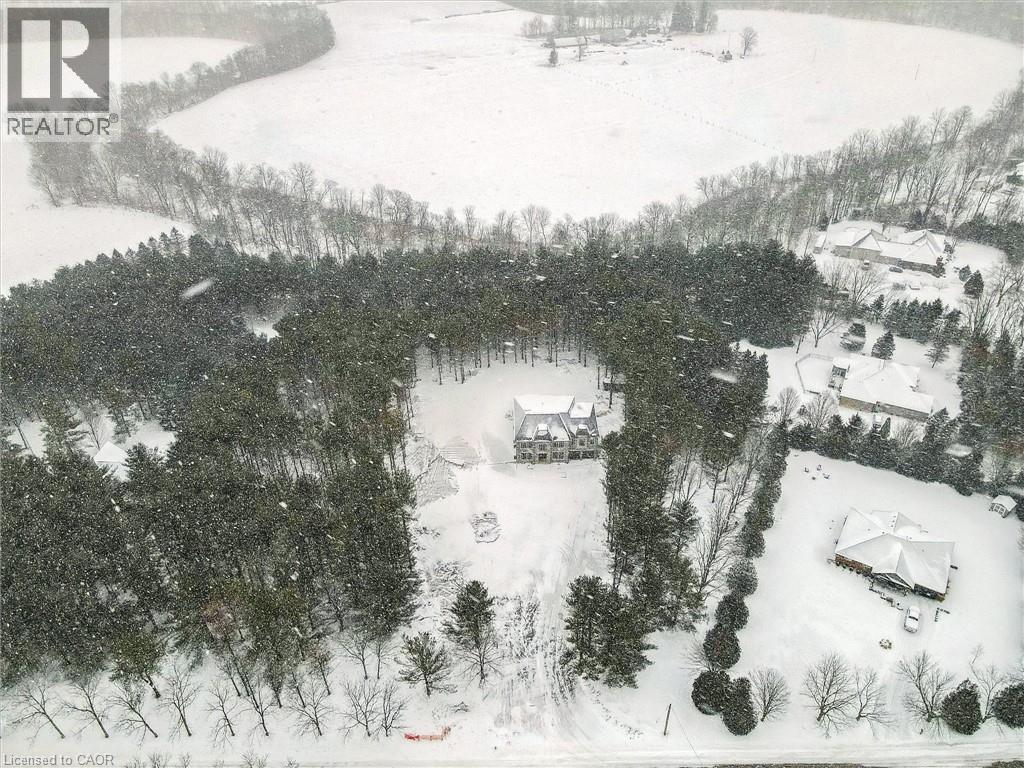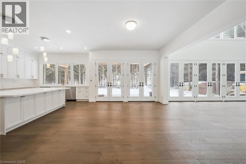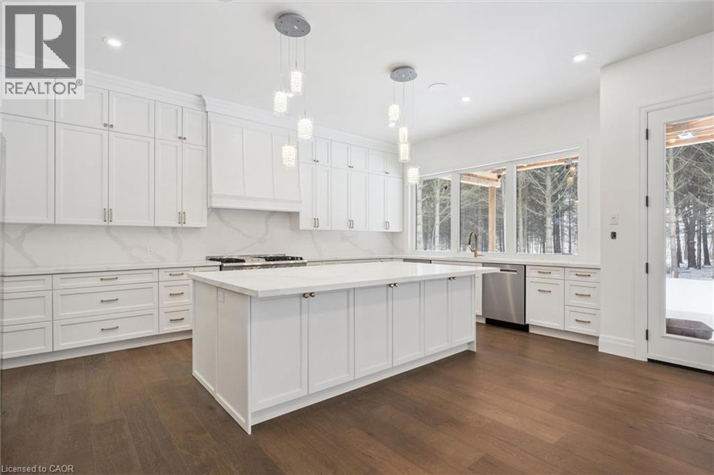 Tucked away in the quiet, tranquil outskirts of Brantford, this exceptional 5,000 sq. ft. new build sits on nearly 3 acres of land. Surrounded by towering evergreens and backing onto Fairchild Creek, 5 West Harris Rd. offers a rare sense of privacy and natural beauty—seamlessly paired with refined luxury living. The home features expansive living spaces with soaring cathedral ceilings, rich engineered hardwood flooring throughout, and modern finishes. Large windows frame breathtaking views of the private, wooded surroundings, creating a seamless connection to nature. Just off the front door, a dedicated home office provides a quiet workspace. A formal living room and separate formal dining room offer elegant spaces for entertaining, while the chef’s kitchen, designed for everyday living and gatherings, features high-end appliances, extensive cabinetry, a large centre island, a convenient servery, and an additional dining area opening effortlessly to the family room. Upstairs, four spacious bedrooms each feature their own private ensuite. The primary suite is a true retreat, complete with a generous bedroom, spa-inspired ensuite featuring a freestanding tub, a massive walk-in shower, and an expansive walk-in closet with a skylight that pours natural light into the space. The full basement provides a blank canvas to tailor to your lifestyle—ideal for a home theatre, gym, bar, or games room. Step outside to a pool-sized backyard with a covered outdoor living area, perfect for relaxing or entertaining while immersed in nature. (id:4555)