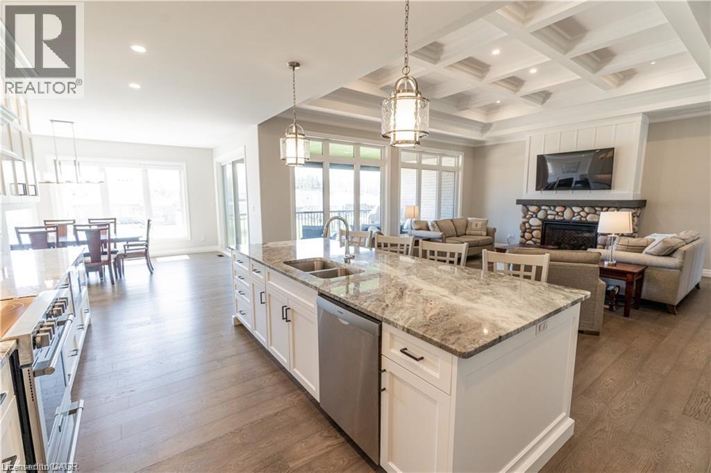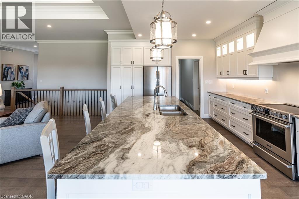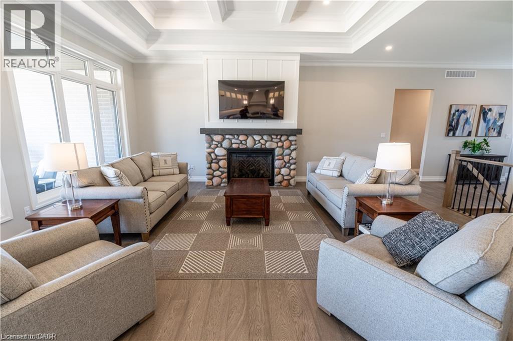 Welcome to 15 Hudson Drive, an extraordinary executive bungalow nestled in Brantford’s coveted Oakhill neighborhood. This custom-designed walkout home offers over 5,100 square feet of luxurious living space on a rare 256-foot deep lot, blending elegance, comfort, and functionality. The open-concept layout showcases impeccable attention to detail, featuring five spacious bedrooms and three and a half bathrooms, including a stunning five-piece primary ensuite. The heart of the home is the chef-inspired kitchen with a 10-foot island, seamlessly flowing into a grand great room with soaring 12-foot coffered ceilings and a striking stone and board & batten fireplace. Entertain in style in the oversized dining room with its own hearth and fireplace, or find focus in the dedicated office, unwind in the cozy den, and stay active in the private workout room. A thoughtfully designed mudroom/laundry/pantry combination adds everyday convenience, while the three-car garage offers direct access to the lower level—ideal for a potential in-law suite. Storage is abundant throughout the home. Enjoy seamless indoor-outdoor living with a covered patio off the kitchen and a walkout from the lower level to a spacious backyard oasis enclosed with a beautiful wood fence. With Brantford expanding rapidly, properties of this caliber are increasingly rare. 15 Hudson Drive is the complete package—refined, spacious, and ready to impress. Be sure to check out the virtual tour on YouTube to experience it for yourself. (id:4555)