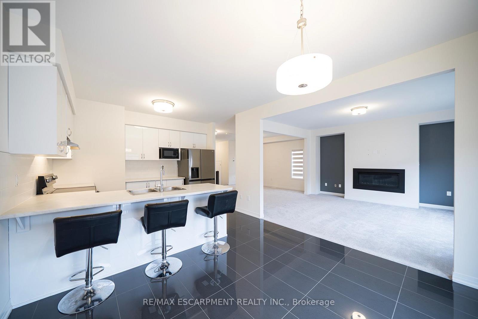 Welcome home to 9 Tarrison Street in Brantford, a stunning two-storey home located in Brantford's Nature's Grand community by LIV. The well-maintained exterior features an attached two-car garage and double-door entry. This spotless 2,519 sq ft home offers 3 bedrooms and 2.5 bathrooms. The tiled front foyer includes a large closet and a 2 piece powder room. The main floor features 9 foot ceilings and an open-concept layout defining the dining and living rooms, with the living room featuring a gas fireplace. This space connects seamlessly to the spacious kitchen and light-filled breakfast room, with a sliding door to the rear of the home. The bright kitchen features crisp white cabinetry and stainless steel appliances, including a built-in dishwasher. An oak staircase leads to a spacious upstairs family room with recessed lighting and two sets of double French doors opening to a balcony above the garage, overlooking the front of the home. A few steps up is the bedroom level, which offers 3 bedrooms, including a primary bedroom with a walk-in closet and a 4 piece ensuite featuring a tub and separate shower. This level also includes a 4 piece bathroom and a convenient laundry room. The unfinished basement offers high ceilings, large windows, and a 3 piece rough-in. The backyard features a deck off the rear of the home, providing easy indoor/outdoor living. Located in a growing, family-friendly neighbourhood minutes to the Grand River and Highway 403. (id:4555)