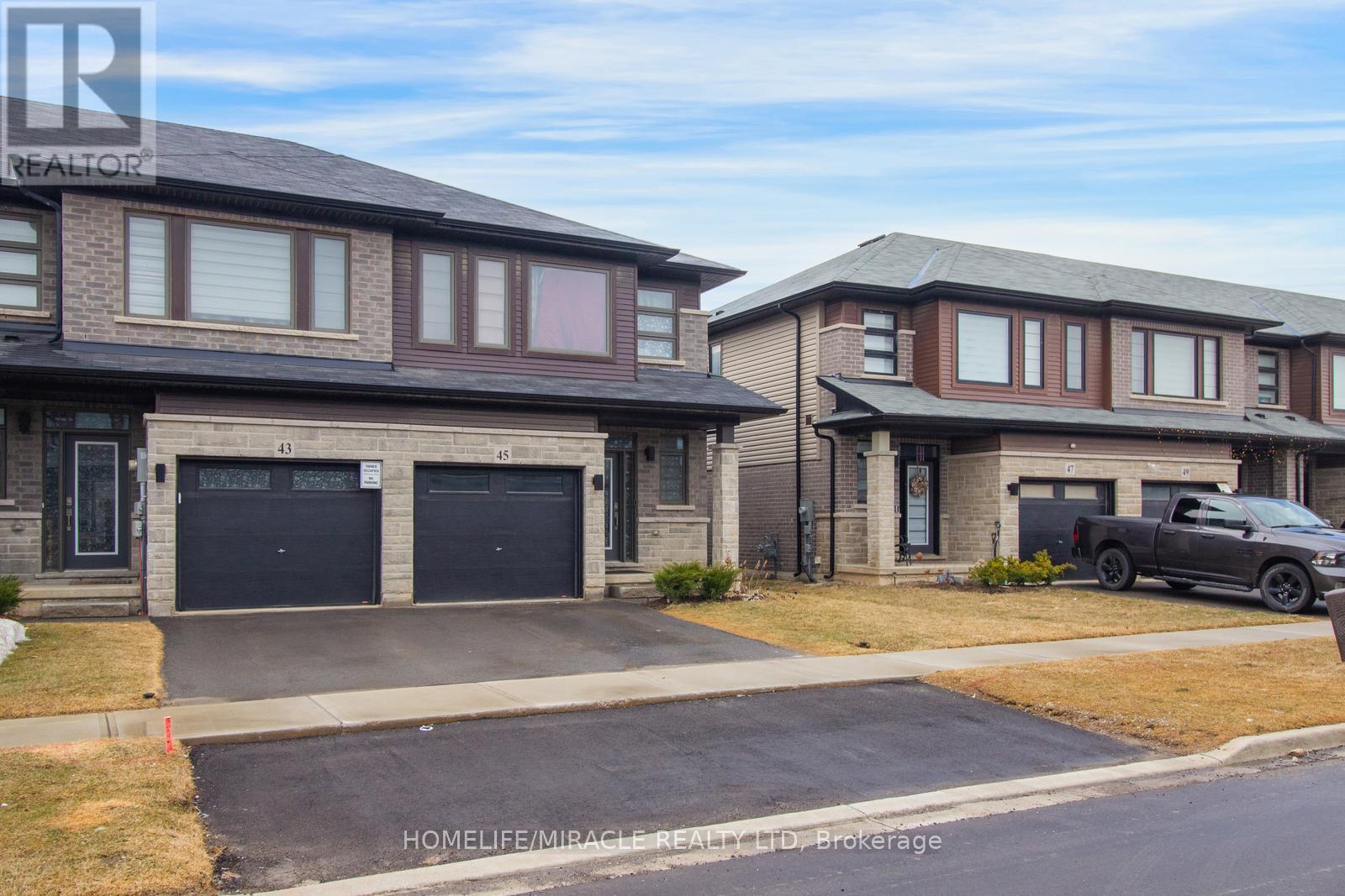 Welcome to 45 June Callwood Way, a luxurious end-unit townhouse located in the West End of Brantford. This home features modern curb appeal and loads of upgrades, offering 3 bedrooms, 2.5 bathrooms and a single car garage. Step inside to find freshly painted interiors and elegant flooring flowing seamlessly through the main level. The open concept main floor plan is perfect for entertaining families and friends. The kitchen offers modern cabinetry, countertops, an island and stainless-steel appliances. The main floor is complete with a conveniently placed powder room. Upstairs the spacious primary bedroom has a walk-in closet. This floor offers 2 additional bedrooms, a full bathroom and upper floor laundry for convenience. (id:4555)