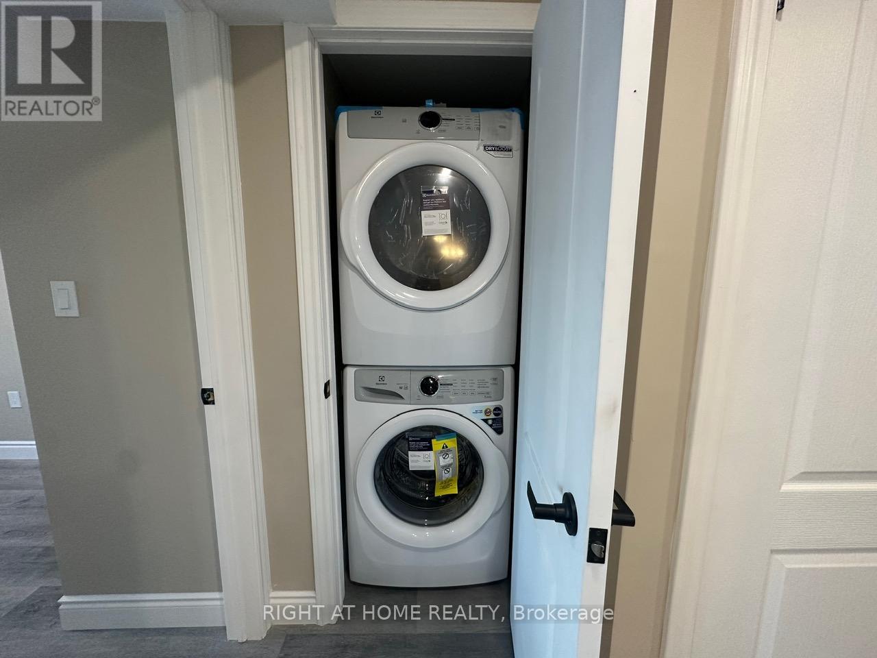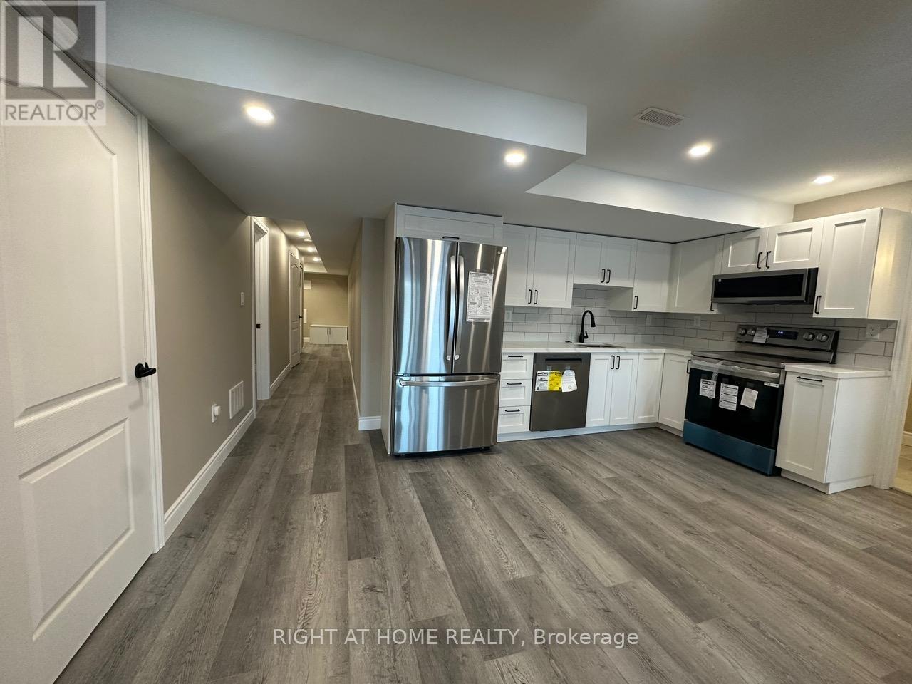 Exceptional Spacious Walkout Legal basement apt. Very bright and warm East-facing 2 Beds + 1 den +1 Bath apartment with a private fenced backyard! Overlooking a ravine. Practically 3 rooms perfect for a small family. Separate living & dining rooms! Very big windows & separate side entrance. East-facing with tons of sunlight and warmth. Quality finishes and open concept. Separate laundry. Impressive modern white kitchen w plenty of cabinet & counter space. Quartz countertops, high-end SS appliances (DD fridge, electric stove w over-the-range high profile microwave & dishwasher. High-capacity front-load washer & dryer. 3 pcs washroom w soaker bath tub. Quality zebra blinds.Mirrored closets.Backing on the ravine & in front of the park.Private fenced backyard on the ravine! You do not get that in a basement!!! Carpet-free high-end vinyl floors . Quality led Spotlights .1 parking space on the driveway + plenty of street parking. Huge storage capacity + coat closet.Close to schools, bus route, shopping, parks, & transportation. Perfect for a small family or professionals. Close to bus stop, all amenities, schools, on school bus route, shopping plaza and the upcoming Sports complex on Shellard lane, parks and trails, etc. (id:4555)