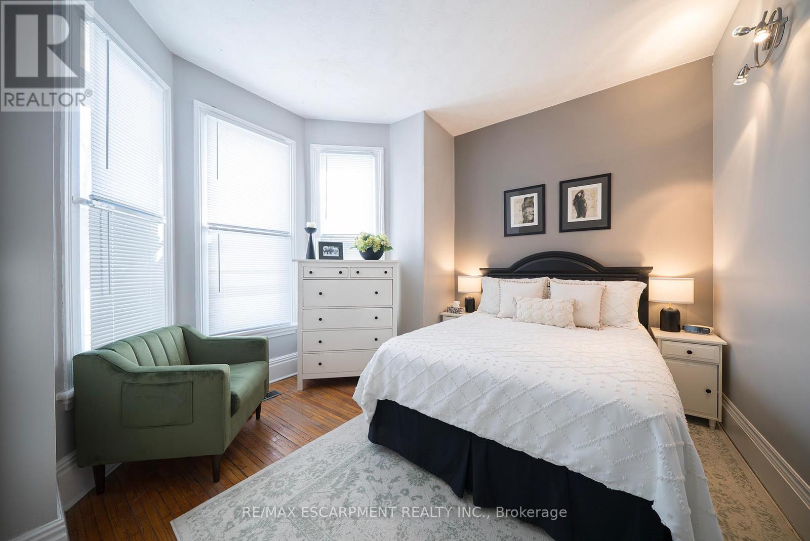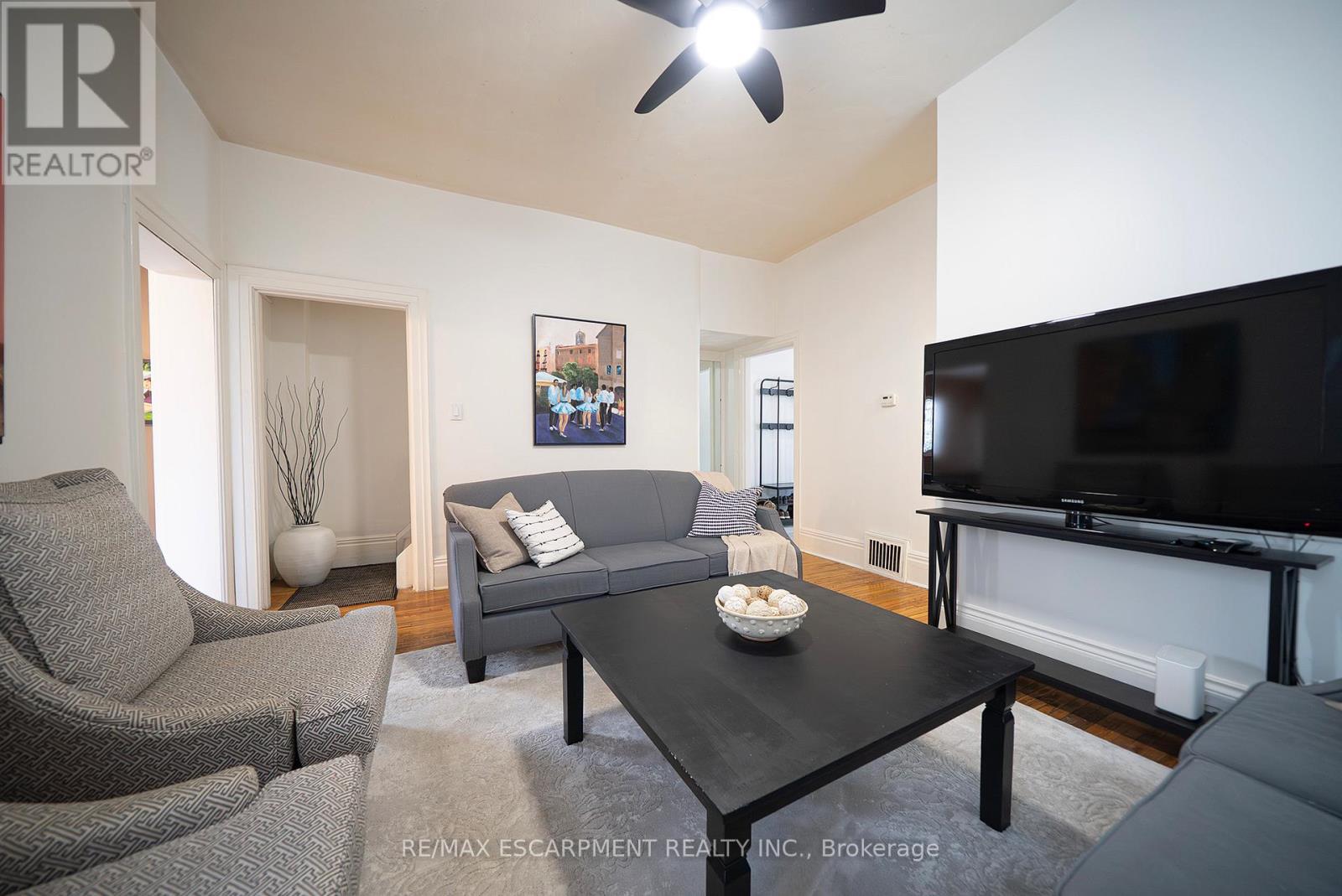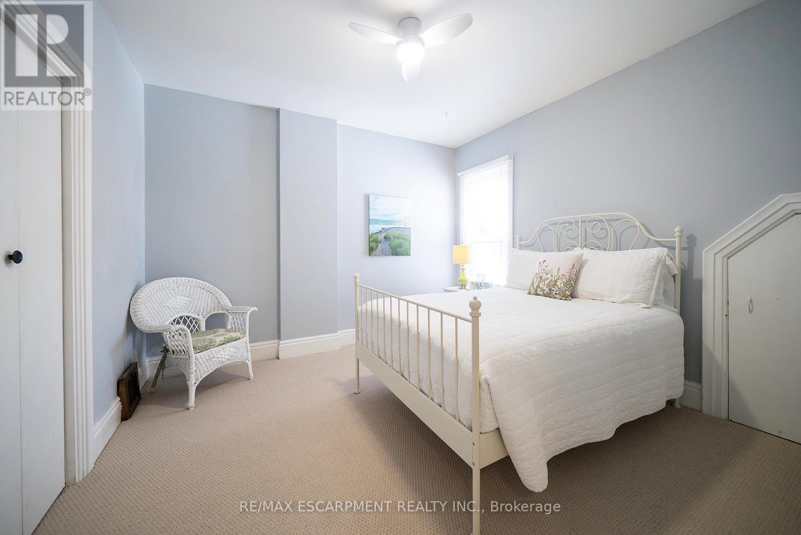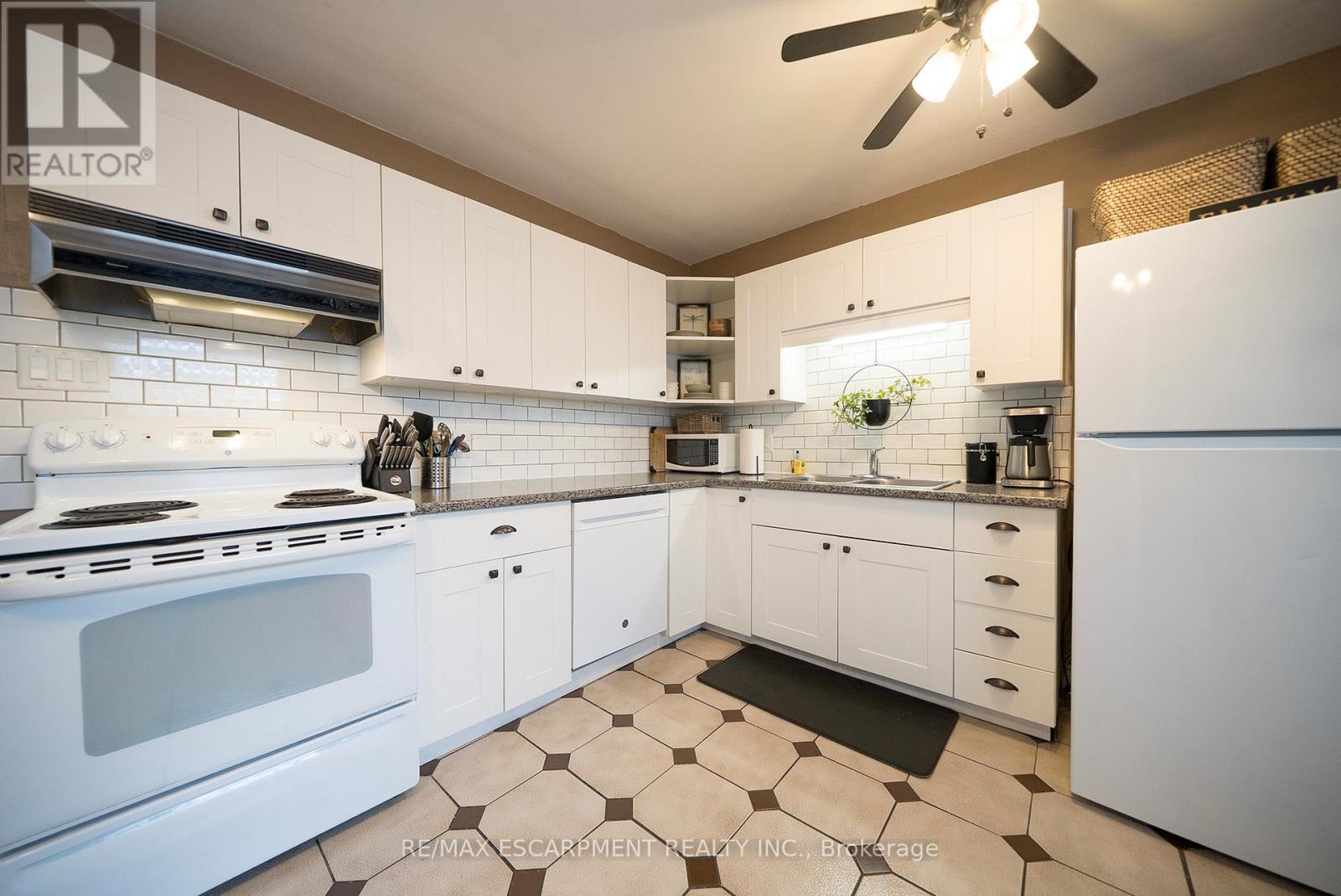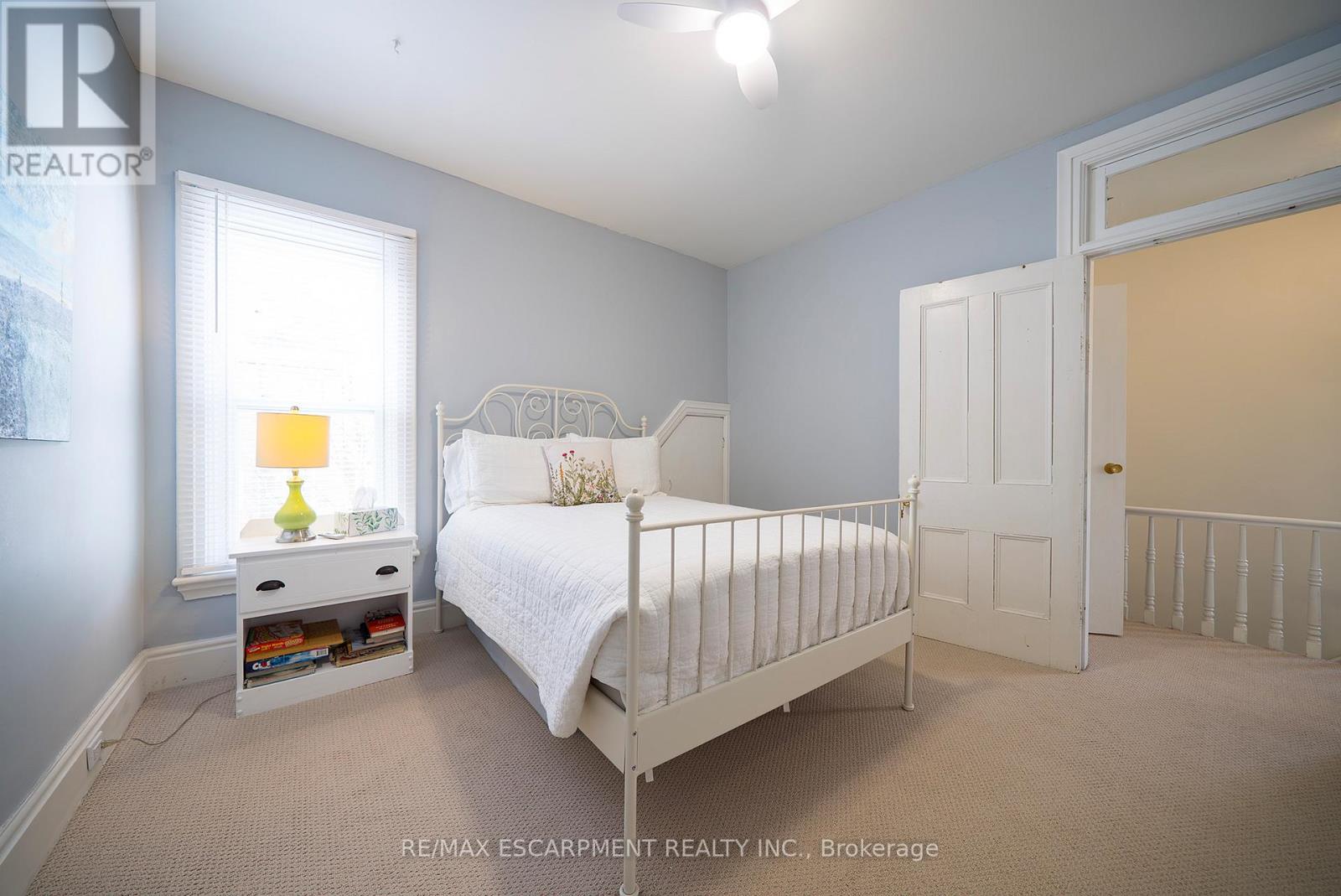 Welcome home to 154 Park Avenue in Brantford, ideally positioned in a central location close to schools, transit, and daily amenities. This solid brick 2-storey home offers 4 bedrooms, 2 full bathrooms, and 1,587 sq ft of living space, along with an unfinished basement and a fenced backyard. The main floor features a mix of tile and hardwood flooring throughout, complemented by modern fixtures. The layout begins with a tiled foyer and a front-facing bedroom with hardwood floors and a bay window overlooking the street. The layout continues down the tiled hallway to a bright living room with hardwood flooring, large windows for natural light and a ceiling fan. The eat-in kitchen sits adjacent to the living room and is finished with white shaker-style cabinetry, a subway tile backsplash, matching white appliances including a built-in dishwasher, ceiling fans, and built-in shelving for added storage. A back door to the rear yard is also located here. Off the kitchen is a dining room with hardwood flooring, offering flexibility for use as a dining space or potential bedroom. A finished 3 piece bathroom completes the main floor. The second floor offers 3 bedrooms with carpeted flooring and ceiling fans throughout. A 4 piece bathroom completes this level. The basement is unfinished and includes laundry facilities along with space for storage. The fenced backyard offers a great outdoor space for entertaining, relaxing, or play during the warmer months. Located close to universities, elementary and secondary schools, parks, and nearby transit, this home sits in a true walker's paradise with an impressive Walk Score of 90. (id:4555)