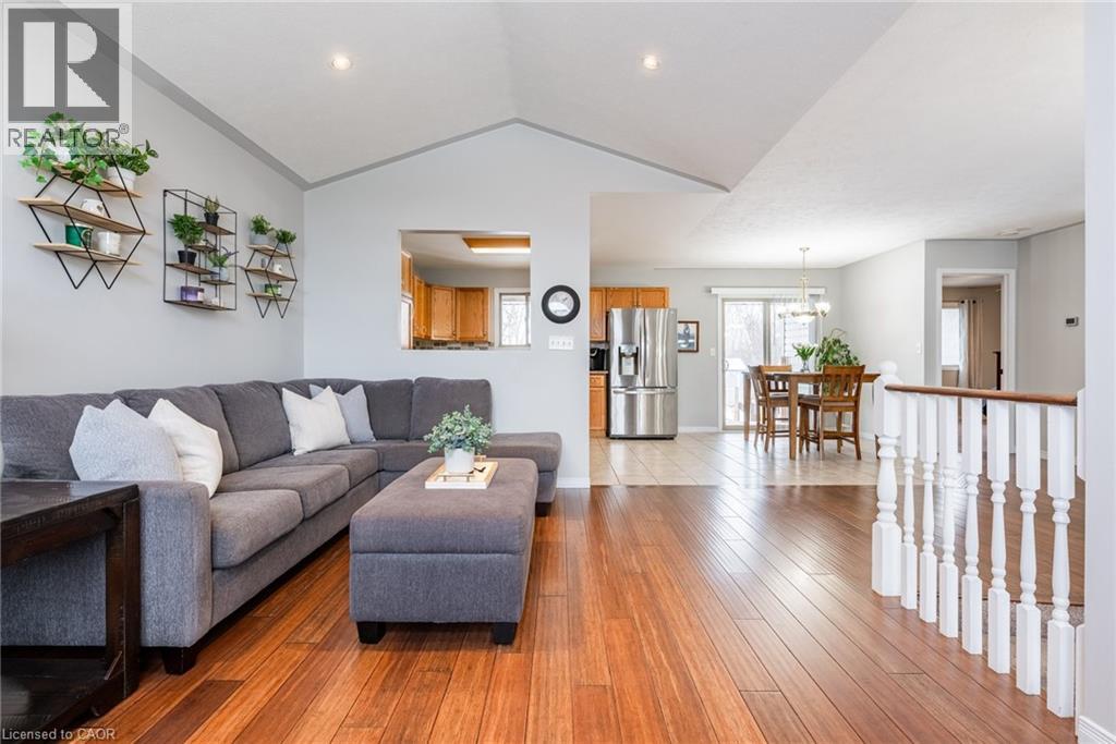 Welcome to this beautifully maintained raised bungalow offering the perfect blend of comfort, space, and convenience. Designed for easy living, the main level features two generous bedrooms and a full ensuite-privilege bath. The bright, open-concept kitchen and living area is enhanced by expansive windows and a stunning vaulted ceiling, creating an airy, light-filled atmosphere that feels both warm and inviting. The fully finished lower level extends your living space with two additional bedrooms, a second full bath, dedicated laundry area, and a spacious recreation room—ideal for guests, teens, hobbies, or a home office setup. Ideally situated on a premium lot backing onto a serene, private treed backdrop, this property offers exceptional privacy and a peaceful natural setting rarely found. The generous yard provides ample space for children and pets to roam and play, host gatherings, or simply relax and unwind outdoors. Meticulously maintained inside and out, this home is truly move-in ready. Complete with a double garage and convenient inside entry, it offers both practicality and comfort. An excellent opportunity for right sizer buyers or anyone seeking the ease of convenient one-floor living with the added benefit of finished lower-level space. (id:4555)