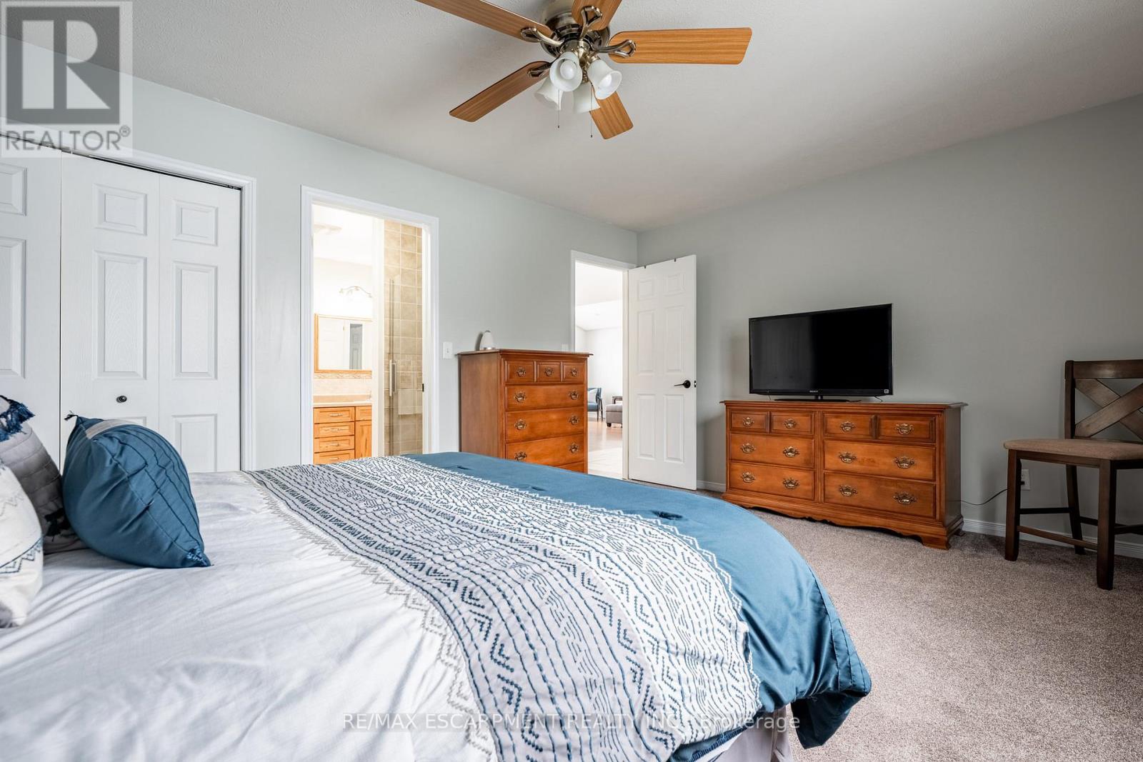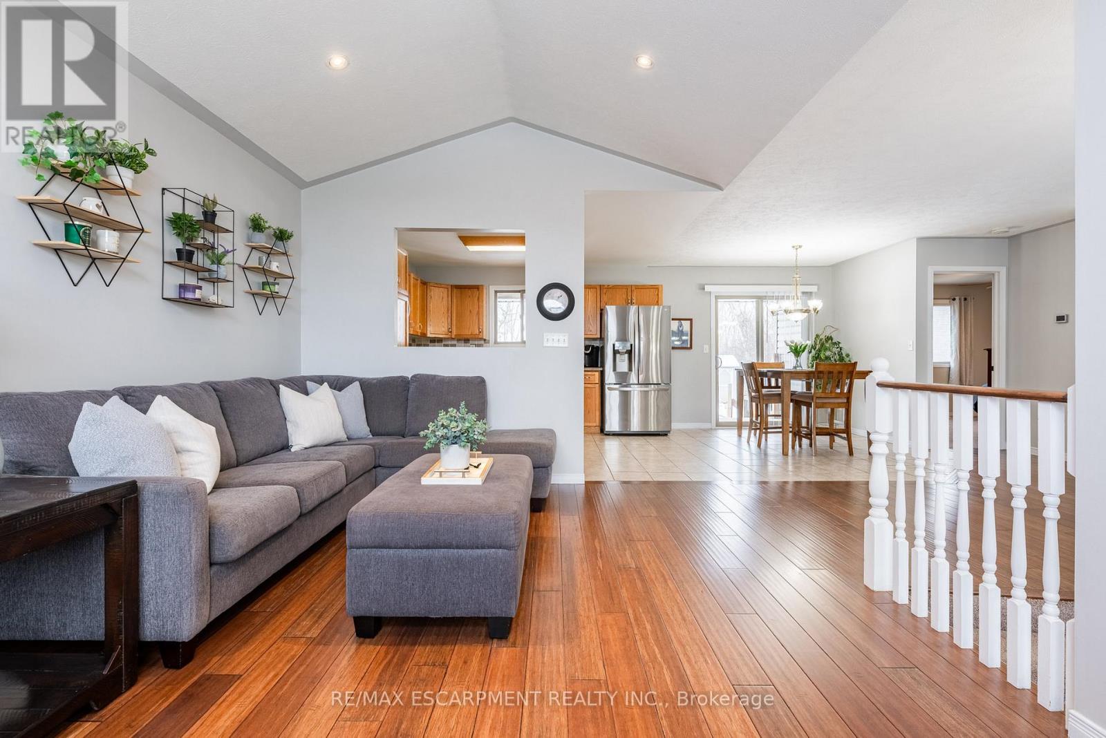Welcome to this beautifully maintained raised bungalow offering the perfect blend of comfort, space, and convenience. Designed for easy living, the main level features two generous bedrooms and a full ensuite-privilege bath. The bright, open-concept kitchen and living area is enhanced by expansive windows and a stunning vaulted ceiling, creating an airy, light-filled atmosphere that feels both warm and inviting. The fully finished lower level extends your living space with two additional bedrooms, a second full bath, dedicated laundry area, and a spacious recreation room-ideal for guests, teens, hobbies, or a home office setup. Ideally situated on a premium lot backing onto a serene, private treed backdrop, this property offers exceptional privacy and a peaceful natural setting rarely found. The generous yard provides ample space for children and pets to roam and play, host gatherings, or simply relax and unwind outdoors. Meticulously maintained inside and out, this home is truly move-in ready. Complete with a double garage and convenient inside entry, it offers both practicality and comfort. An excellent opportunity for right sizer buyers or anyone seeking the ease of convenient one-floor living with the added benefit of finished lower-level space. (id:4555)