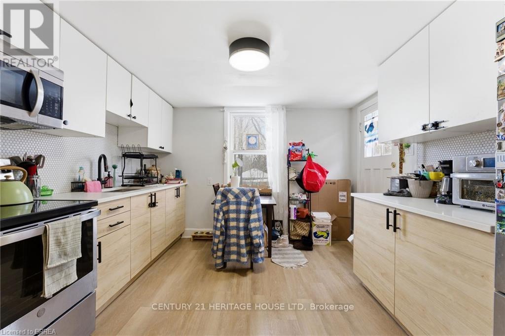 Legal fourplex in Brantford. Strong 7.43% cap rate with excellent upside potential. Large lot with private parking and separately metered units. Mix of spacious 2 bedroom and 1 plus den layouts. Extensively renovated between 2022 and 2025. Multiple complete kitchen renovations featuring new cabinets, quartz countertops, backsplashes, sinks, faucets, and stainless steel appliances. Multiple full bathroom renovations including new plumbing, flooring, drywall, vanities, toilets, and tiled tub and shower combinations. New flooring installed throughout several units along with fresh paint and updated light fixtures. Fourteen new windows installed across multiple units. Approximately 50 percent of the roof re shingled in 2022 with the remaining portion previously updated. Two new 1.5 ton air conditioning units installed in 2022. Major plumbing upgrade in 2022 with removal of old cast iron drain line and replacement with new ABS main drain from rear to front of property. Driveway and parking area re gravelled in 2023. New dryer installed in 2025. Two units currently vacant with another becoming available, offering immediate opportunity to increase rents and further improve returns. Prime location close to downtown amenities, transit, and major corridors. Turnkey multi residential asset with significant capital improvements already completed and minimal deferred maintenance (id:4555)