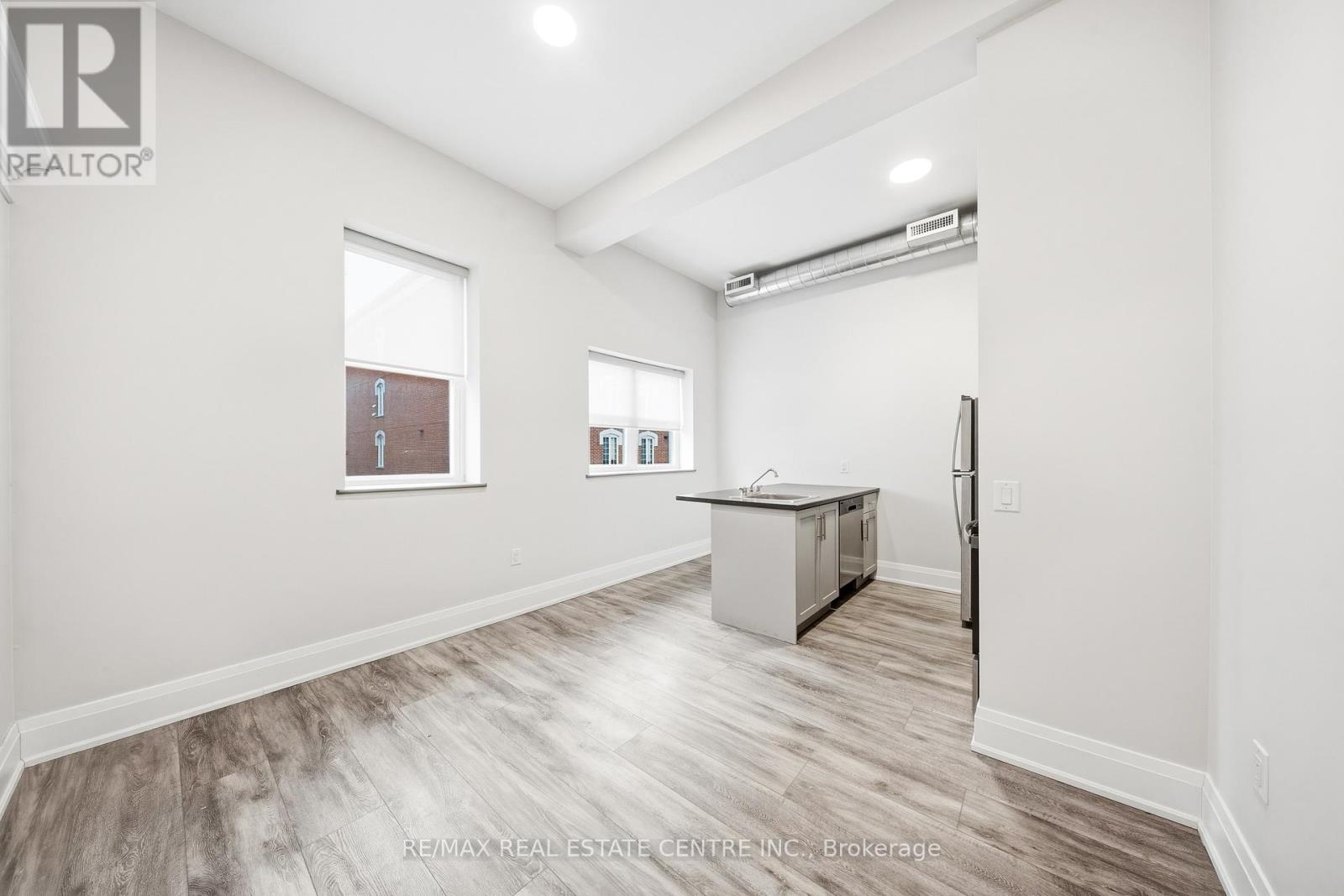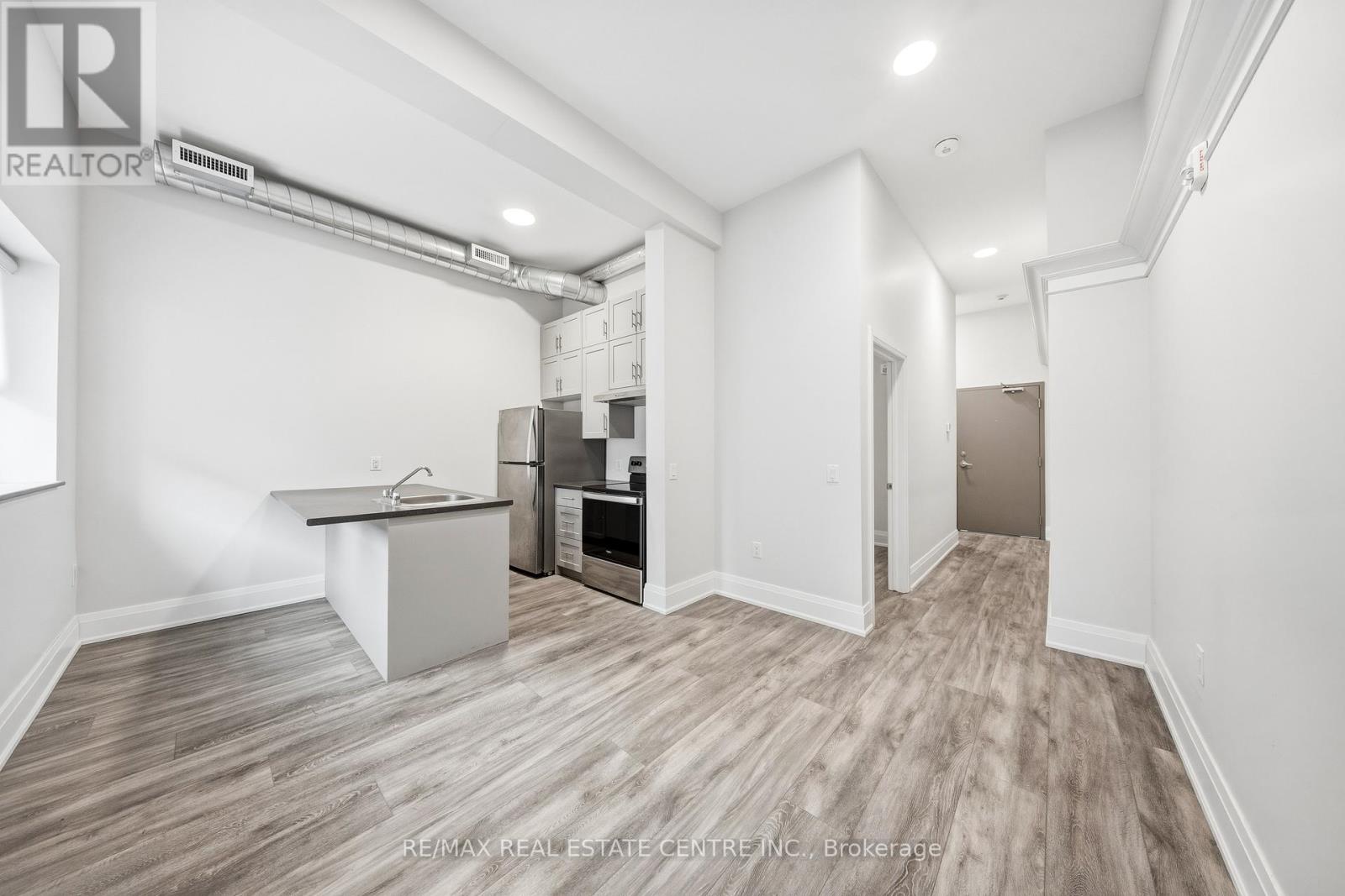 Welcome to 11 Queen Street - a bright, loft-style 1-bedroom, 1-bathroom residence in the heart of downtown Brantford. Located in a fully restored and secure building (completed in 2019), this renovated unit offers modern living with character and style. The open-concept layout is thoughtfully designed to maximize space and natural light, featuring oversized windows, high ceilings, and carpet-free, easy-care laminate flooring throughout. Tasteful upgrades include a sleek, modern bathroom and a practical kitchen equipped with stainless steel appliances, including a fridge, stove, and dishwasher. In-suite laundry adds everyday convenience. The building offers enhanced security with a 24-hour camera system and is ideally situated just steps from the Grand River, parks, trails, restaurants, shopping, and entertainment. Wilfrid Laurier University and Conestoga College are within walking distance, making this an excellent option for students or professionals. Public transit, VIA Rail, GO Bus service, and quick highway access are all nearby. Water and heat included; tenant pays hydro, internet, and tenant insurance. Street parking or nearby city lot parking available (id:4555)