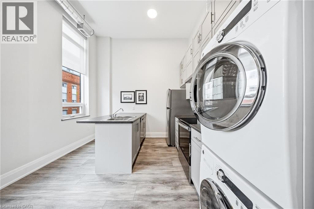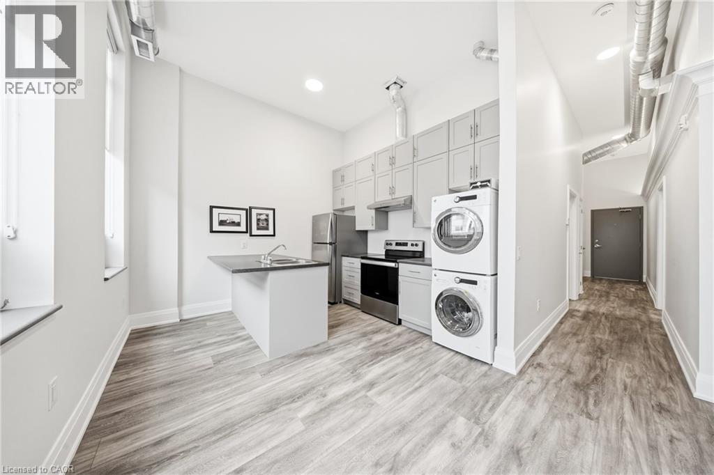 Welcome to 11 Queen Street — a bright, loft-style 3-bedroom, 1-bathroom residence in the heart of downtown Brantford. Located in a fully restored and secure building (completed in 2019), this renovated unit offers modern living with character and style. The open-concept layout is thoughtfully designed to maximize space and natural light, featuring oversized windows, high ceilings, and carpet-free, easy-care laminate flooring throughout. Tasteful upgrades include a sleek, modern bathroom and a practical kitchen equipped with stainless steel appliances, including a fridge, stove, and dishwasher. In-suite laundry adds everyday convenience. The building offers enhanced security with a 24-hour camera system and is ideally situated just steps from the Grand River, parks, trails, restaurants, shopping, and entertainment. Wilfrid Laurier University and Conestoga College are within walking distance, making this an excellent option for students or professionals. Public transit, VIA Rail, GO Bus service, and quick highway access are all nearby. Water and heat included; tenant pays hydro, internet, and tenant insurance. Street parking or nearby city lot parking available (id:4555)