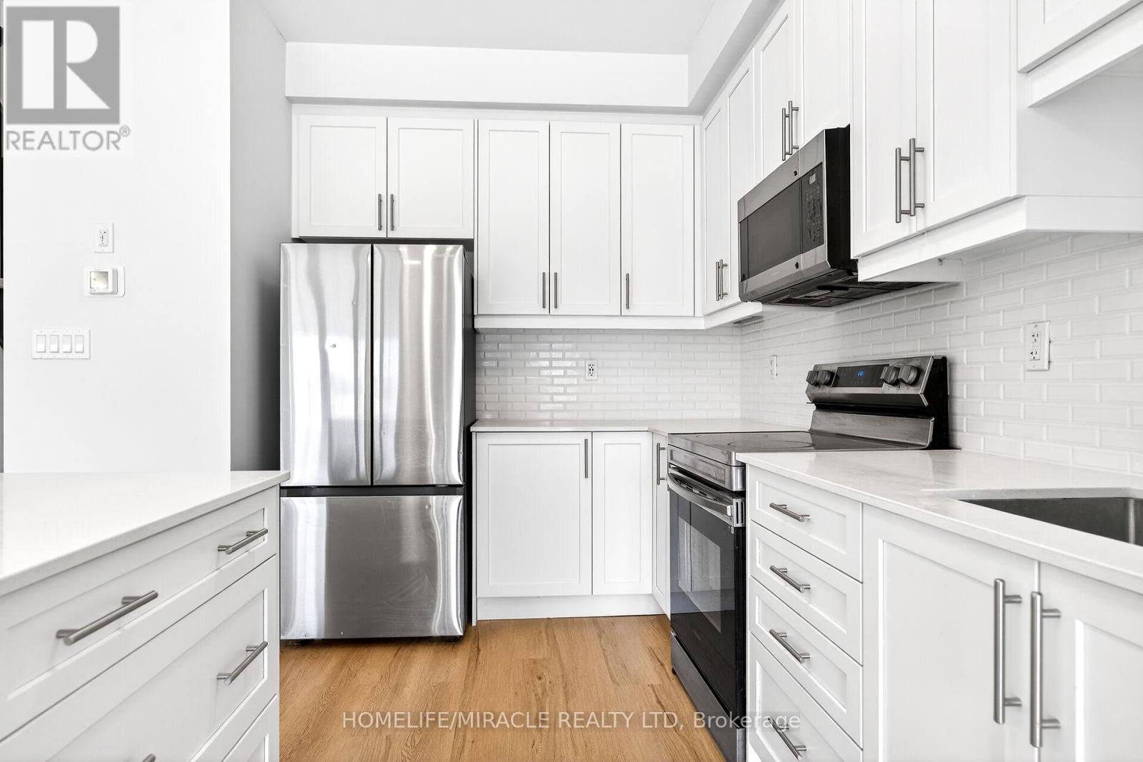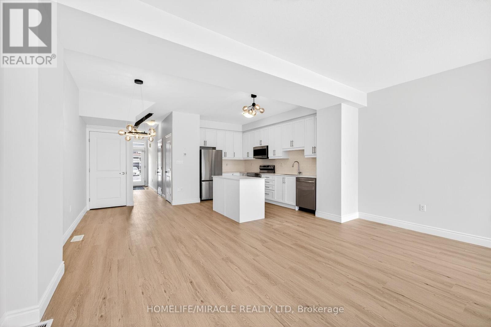 Welcome to the gold standard of West Brant living! This impeccably renovated Freehold townhouse offers a rare combination of designer aesthetics and everyday durability. Step inside to discover a bright, open-concept main floor featuring brand-new, 100% waterproof flooring that flows seamlessly throughout perfect for families and pets. The heart of the home is a refreshed, modern kitchen equipped with a full suite of stainless steel appliances, complemented by new designer lighting fixtures and crisp, modern baseboards.The transformation continues upstairs with carpet-free appeal and bathrooms elevated with all-new vanities. Enjoy the ultimate convenience of second-floor laundry-no more hauling baskets to the basement!Step through the sliding doors to your private backyard, ideal for summer BBQs and outdoor relaxation. With a high-efficiency AC to keep you cool all summer, this home isn't just "move-in ready" - it's a fully updated masterpiece where every detail has been handled for you. Located in a highly desirable, family-friendly neighborhood close to top-tier schools, scenic trails and playgrounds. This is the one you've been waiting for! (id:4555)
