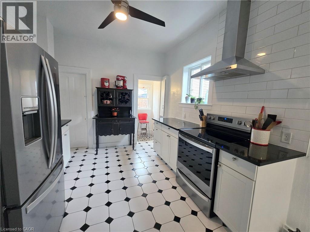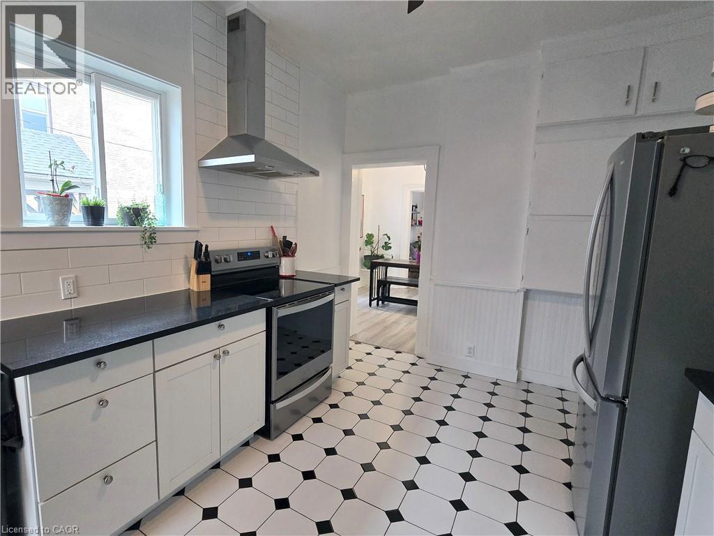 Charming and beautifully maintained century home nestled on a quiet, family-friendly street in Brantford. Thoughtfully updated throughout, this move-in-ready property offers the perfect blend of classic character and modern convenience. The home features 3 spacious bedrooms and 2 full bathrooms, providing comfortable living space for families. A welcoming foyer leads into a bright, freshly painted interior where large front windows fill the living space with natural light. The main level offers an inviting living area and a separate dining room, perfect for family meals or entertaining. The kitchen is both stylish and functional, featuring newer appliances—including a fridge with water and ice dispenser—and a tucked-away pantry for additional storage. A recently added main-floor laundry room and convenient 3-piece bathroom add everyday practicality. Upstairs, the bedrooms are bright and airy, while the renovated full bathroom features a newer vanity, sink, flooring, and modern lighting. Step outside to the fully reworked backyard with a new privacy fence and plenty of space for outdoor gatherings. The detached garage with hydro offers great potential for storage, a workshop, or hobby space. A recently paved driveway accommodates two vehicles, with additional year-round street parking available. Important updates include roof replacement (2018), professional removal of all knob-and-tube wiring, and a newer owned furnace. Rented central air conditioning and hot water heater provide added flexibility. Conveniently located with easy access to Highways 401 and 403, commuting is simple while enjoying the charm of this established neighbourhood. Close to amenities, schools, and parks, this lovingly cared-for home is ready for its next chapter. (id:4555)