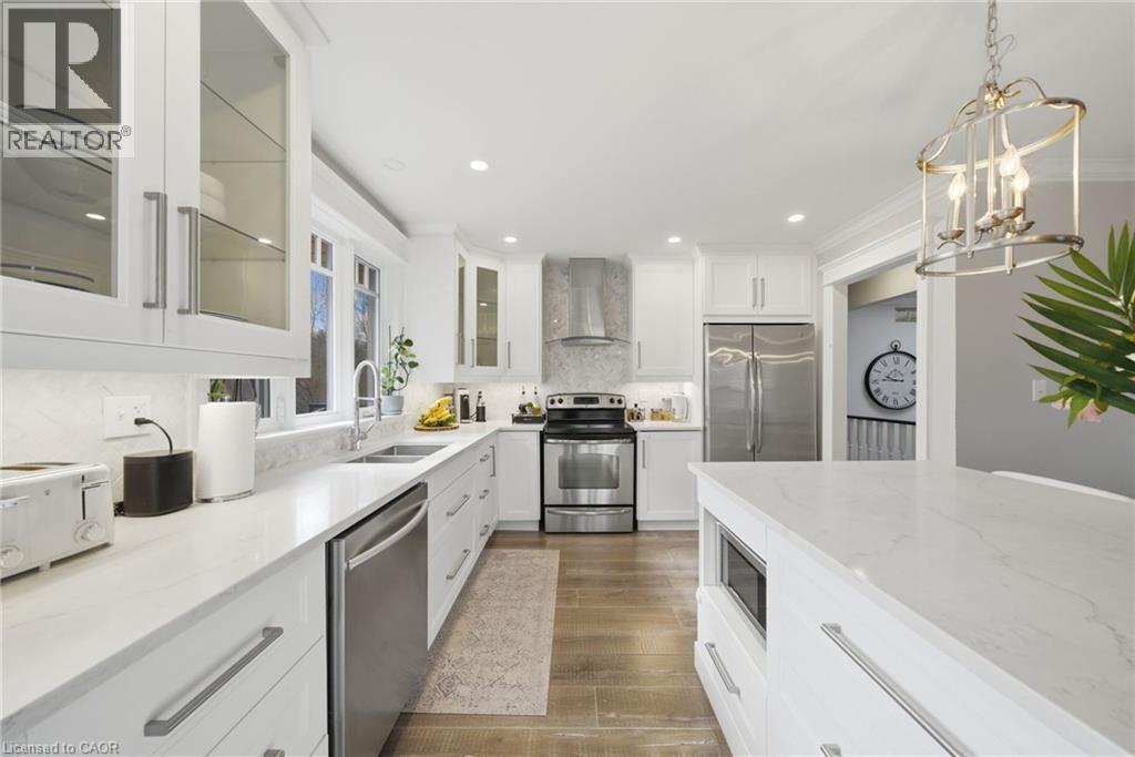 Welcome to this gorgeous, fully updated bungalow nestled in one of Brantford’s most desirable neighbourhoods, backing onto a beautiful private ravine for added tranquility and scenic views. This spacious home offers 6 bedrooms and 3 bathrooms, making it ideal for growing families or multi-generational living. The bright and inviting main level showcases large windows, a skylight, and an abundance of natural light, highlighting the home’s elegant finishes and beautiful moldings throughout. The thoughtfully designed layout provides generous living spaces perfect for both everyday living and entertaining. The fully finished walk-out basement features a second kitchen, offering incredible flexibility for extended family, guests, or potential in-law living arrangements. Step outside to enjoy the peaceful ravine setting while still being just minutes from shopping, schools, parks, public transit, and convenient highway access. A rare opportunity to own a spacious, move-in ready bungalow in a prime Brantford location with exceptional versatility and natural surroundings. (id:4555)