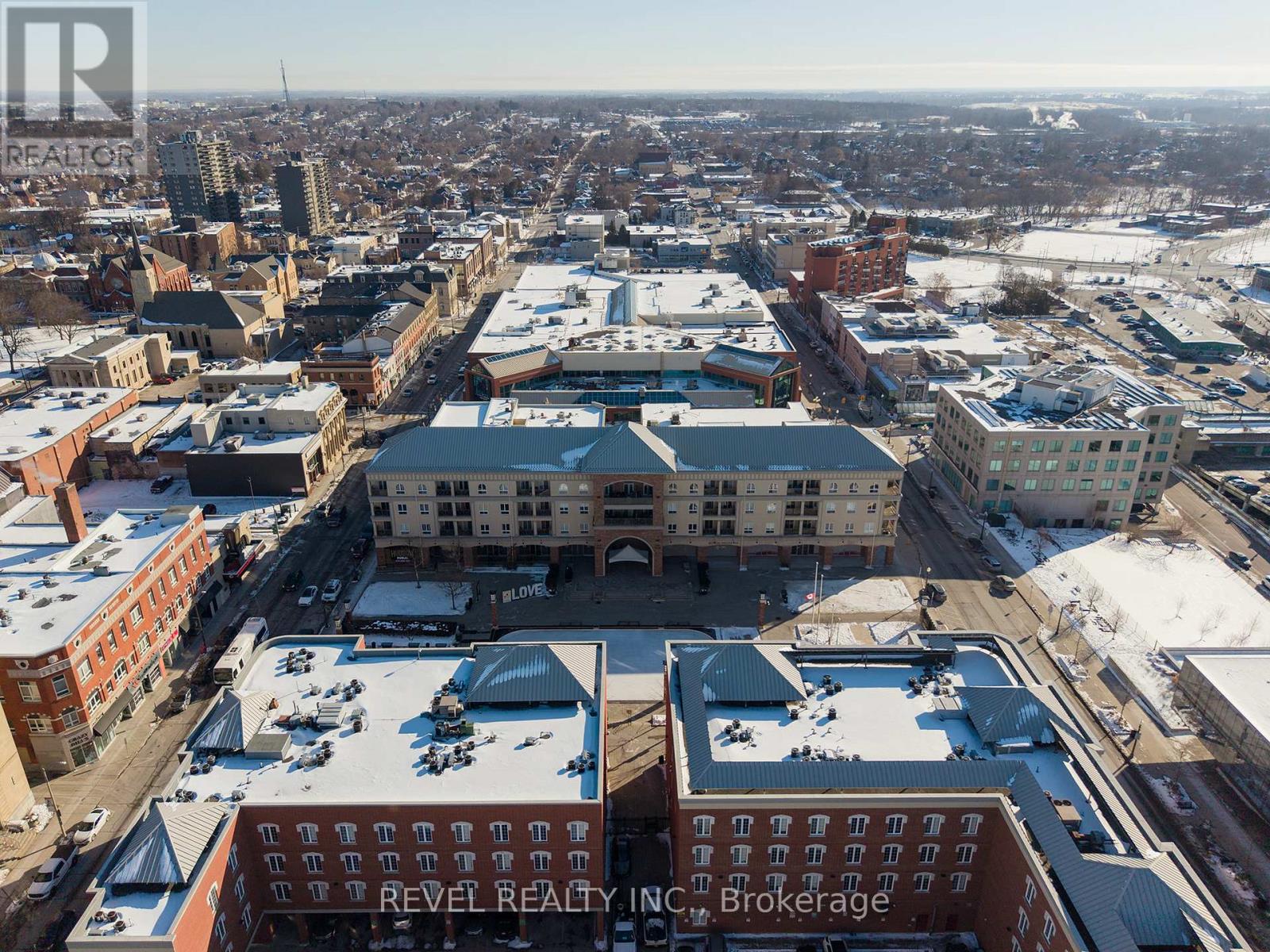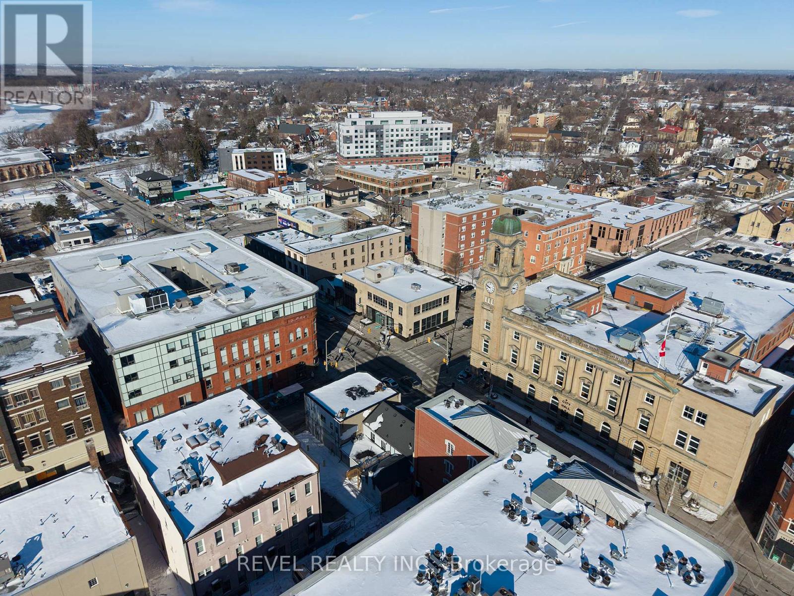 Welcome to 150 Colborne Street, Unit 407 - Downtown Brantford Living at Its Best! Step into style, comfort, and convenience with this fully renovated, loft-style 1-bedroom, 1-bathroom condo, ideally situated in the heart of downtown Brantford, directly overlooking vibrant HarmonySquare. This stunning unit offers an unbeatable combination of modern living and prime location. Boasting high ceilings, a spacious private balcony, and sophisticated finishes throughout, this unit is designed to impress. The kitchen is a true showstopper, featuring rich navy cabinetry, ample storage and counter space, and stainless steel appliances - perfect for home chefs and entertainers alike. The open-concept layout seamlessly connects the kitchen, dining, and living areas, making entertaining both effortless and elegant. Step through French doors to your oversized balcony, large enough to accommodate outdoor dining or a cozy lounge setup - the perfect space to unwind while enjoying views ofHarmony Square and all its seasonal events. The bright and airy bedroom is bathed in natural light thanks to a charming arched window and includes a generous closet. The updated 4-piece bathroom continues the modern aesthetic with stylish finishes and thoughtful design. Additional features include coin-operated laundry facilities conveniently located within the building, eliminating the need for off-site trips.The air conditioner was replaced in 2024. Location is everything - and this property delivers. Just steps from Wilfrid Laurier University's Brantford campus, the Conestoga College campus, and the new YMCA/Laurier Recreation Complex. With countless restaurants, cafes, shops, and year-round festivals right outside your door, you'll be at the centre of it all. Amazing opportunity to experience one of Brantford's most dynamic and walkable neighbourhoods. (id:4555)