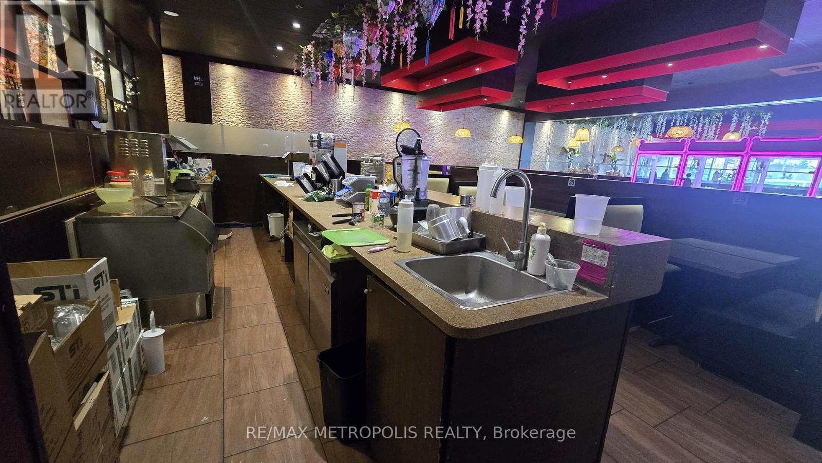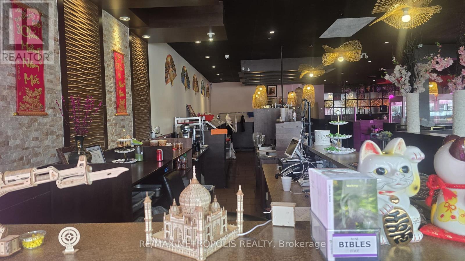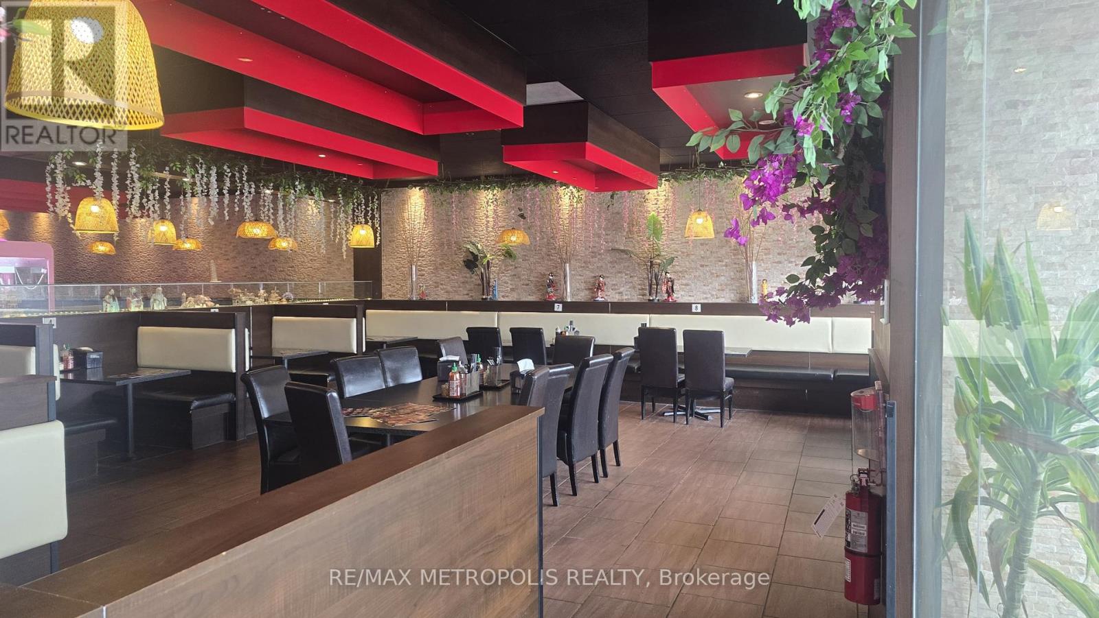 Established Vietnamese cuisine restaurant in the busy King George Plaza, Brantford - open to rebrand, surrounded by anchors like Food Basics, Tim Hortons, and a medical centre. Known for its authentic menu, strong income, and loyal clientele. This 4,045 sq. ft. restaurant offers 150+ seats and three washrooms (two customer accessible + one staff). Features a designated bar area with potential to add liquor service, and a large storage room for dry goods and takeout supplies. Extensive leasehold improvements include a 25-ft hood, 6-burner stove, 4 hot pots, walk-in cooler & freezer, and many more, along with $150K+ in premium stainless steel equipment and luxury finishes. Ample plaza parking, 1.5 years remaining on lease with a 5-year renewal option. opportunity to own a thriving Vietnamese restaurant in one of Brantford's busiest commercial plazas! (id:4555)