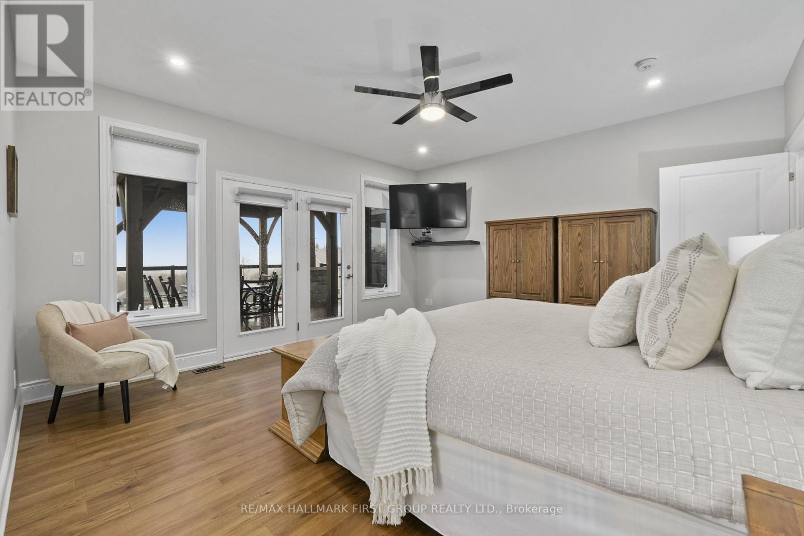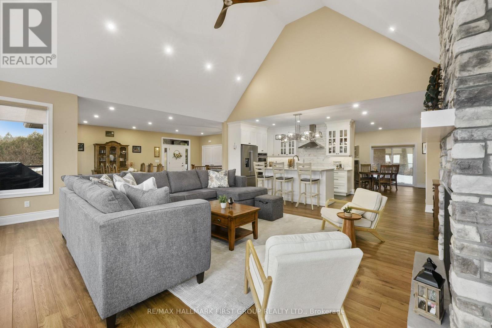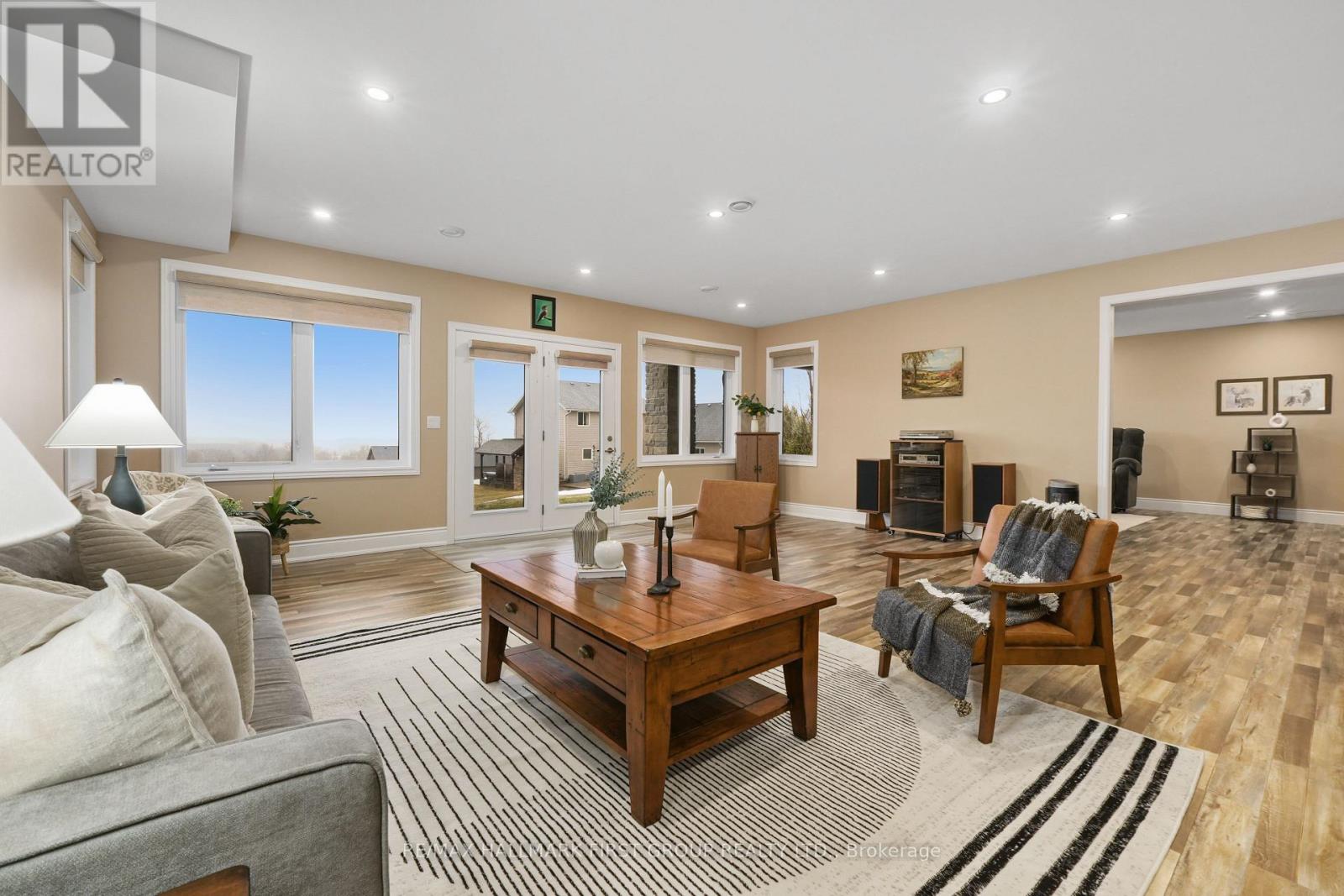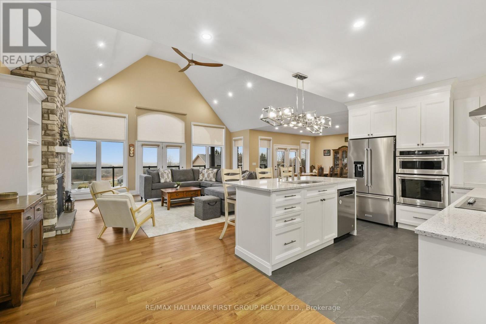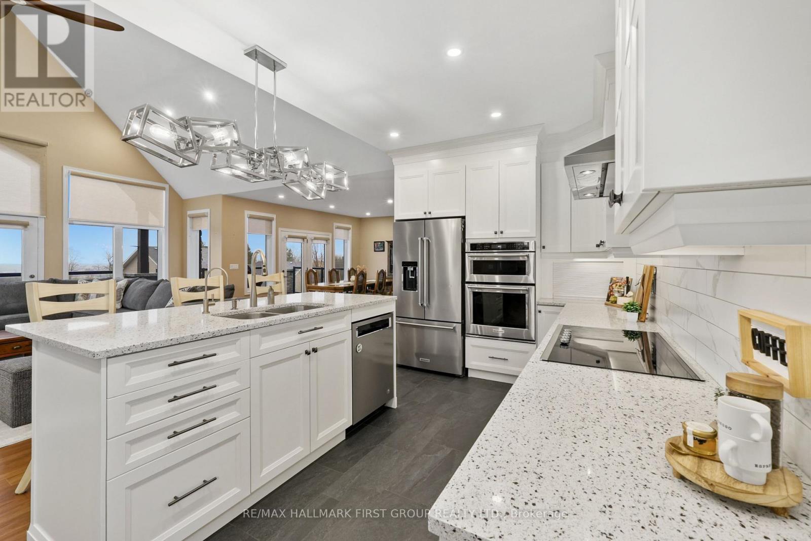 Featuring panoramic views of Lake Ontario, this beautifully designed bungalow offers space, privacy, and lifestyle in equal measure. The main floor welcomes you with a bright, open-concept living, kitchen, and dining area, where a dramatic vaulted ceiling and cozy fireplace create a warm, inviting focal point for everyday living and entertaining. Large windows fill the space with natural light. The thoughtful layout keeps family and guests comfortably connected, and multiple walk-outs to the deck allow conversation to flow effortlessly from indoors to out, creating the perfect setting for summer evenings overlooking the beautiful gardens and lake beyond. The kitchen is designed for both style and function, complemented by a convenient walk-in pantry that offers excellent storage and organization. Designed for convenience, the main level also features two bedrooms, including the spacious primary suite, a second full bathroom, and main floor laundry, making day-to-day living easy and functional. The primary suite is a true retreat, complete with its own walk-out to the deck and a generous ensuite featuring a large corner jacuzzi tub, separate glass shower, and comfortable in-floor heating for added everyday luxury. Closets throughout the home are thoughtfully designed with built-in organizers for practical and efficient storage. The lower level has in-floor heating throughout and offers exceptional flexibility with a large recreation area complete with a wet bar, dedicated media room perfect for movie nights or game days, two spacious bedrooms, an office nook, and another bathroom. Car enthusiasts will appreciate the attached, heated two-car garage complete with epoxy flooring and a substantial heated detached garage, totalling five garage spaces. With nearby cycling trails, apple orchards, and Presqu'ile Provincial Park, plus the convenience of being just minutes from the 401, this property blends rural tranquillity with the very best of Northumberland County living. (id:4555)