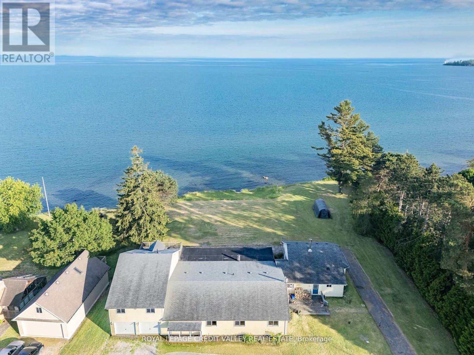 Incredible Multi Family-Potential! This sprawling 6,299sq.ft. bungalow sits on a 1.5 acre waterfront lot with approximately 180 feet of shoreline, offering breathtaking panoramic views of Lake Ontario from Presqu'ile Point to Bald Head island. Located on a quiet , private lane, the shoreline is fully protected with concrete and stone, with steps leading to the water for easy access. Ideal for large families, entertaining, or investment opportunities, the home features 6 spacious bedrooms, 5 bathrooms , 2 full kitchens. and multiple living spaces including 2 sunrooms. A separate entrance to the basement and a main 2-bedroom in-law suite provide flexible living arrangements. The upper loft boasts, 2 piece ensuite and walk-out to a second floor deck with stunning lake views. Additional highlights include valued and cathedral ceilings, a sauna, patio, two decks, a balcony overlooking the lake, and an attached 2-car garage. Just over an hour from Toronto , and minutes from Brighton. Trenton, Presqu'ile provincial park, and Barcovan golf club .Boat, swim, relax &enjoy your private lakeside escape perfect as a year-round residence, vacation retreat, or investment property. The wait is over! (id:4555)