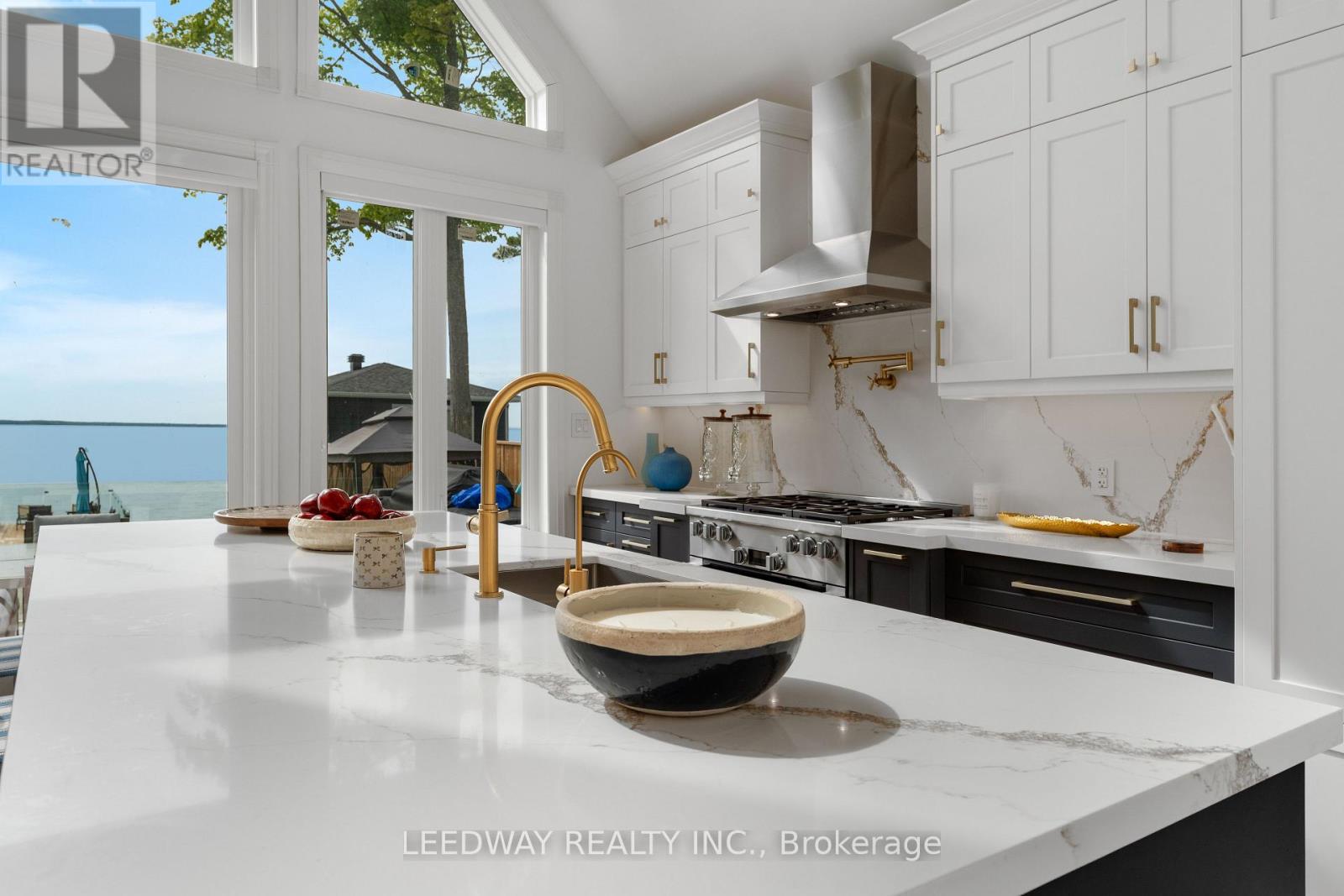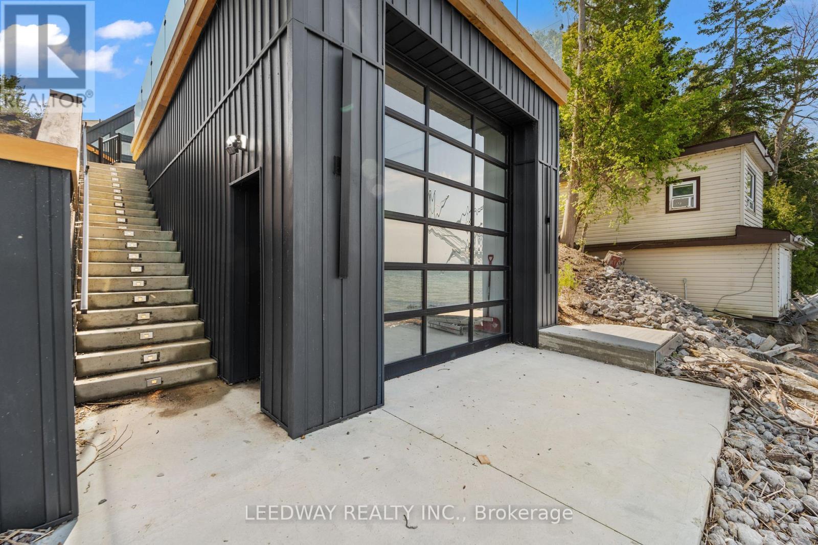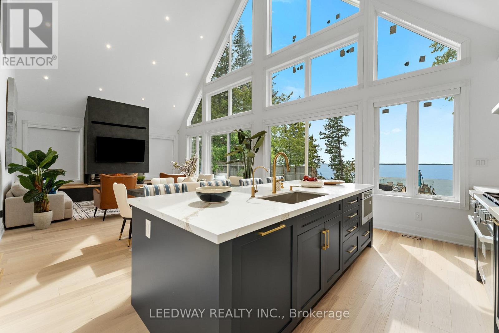 Looking for a waterfront property to lease? Don't miss out on this one-of-a-kind Custom-built waterfront property with boathouse! Walk through the beautifully stained fiberglass front door into the spacious foyer accented by 48" porcelain tiles. The Foyer opens out to the awe-inspiring great room/kitchen combo filled with natural sunlight pouring through the floor-to-ceiling high windows. Great room boasts soaring 24ft vaulted ceiling and wood cladded ridge beam! A 3-sided 5ft Marquis fireplace dressed in Marrakesh Wall paint complements the great room. Chef's custom kitchen boasts high quality quartz counters and backsplash, high-end appliances, large 4x9ft center island, and a slide-out and a walk-in pantry. Main floor offers 2 ample sized bedrooms, laundry, spa-inspired 4pc washroom & access to garage. Principal bedroom is equipped with a luxurious 5pc ensuite, walk-in closet with French doors and custom closet organizer. The second bedroom has a 3pc ensuite. Both the bedrooms have huge custom designed glass panes offering magnificent views of the lake! Walking out of the great room 8' tall sliding doors, you are greeted with a massive deck with a diamond insignia. The deck is equipped with a built-in gas BBQ with an outdoor fridge. A set of cascading stairs takes you down to the lush back yard and second massive diamond deck. The second deck sits atop the 16'x30' dry boathouse which has a massive 11' high door and a 60-amp subpanel. The boathouse is drywalled and finished. The fully finished basement includes an entertainment room and an exercise room. Other notable highlights: electric car charger rough-in in garage, water treatment equipment, water softener, pot lights throughout, high end Riobel plumbing fixtures, smart thermostat, alarm system (monitored option), and a camera surveillance system. (id:4555)