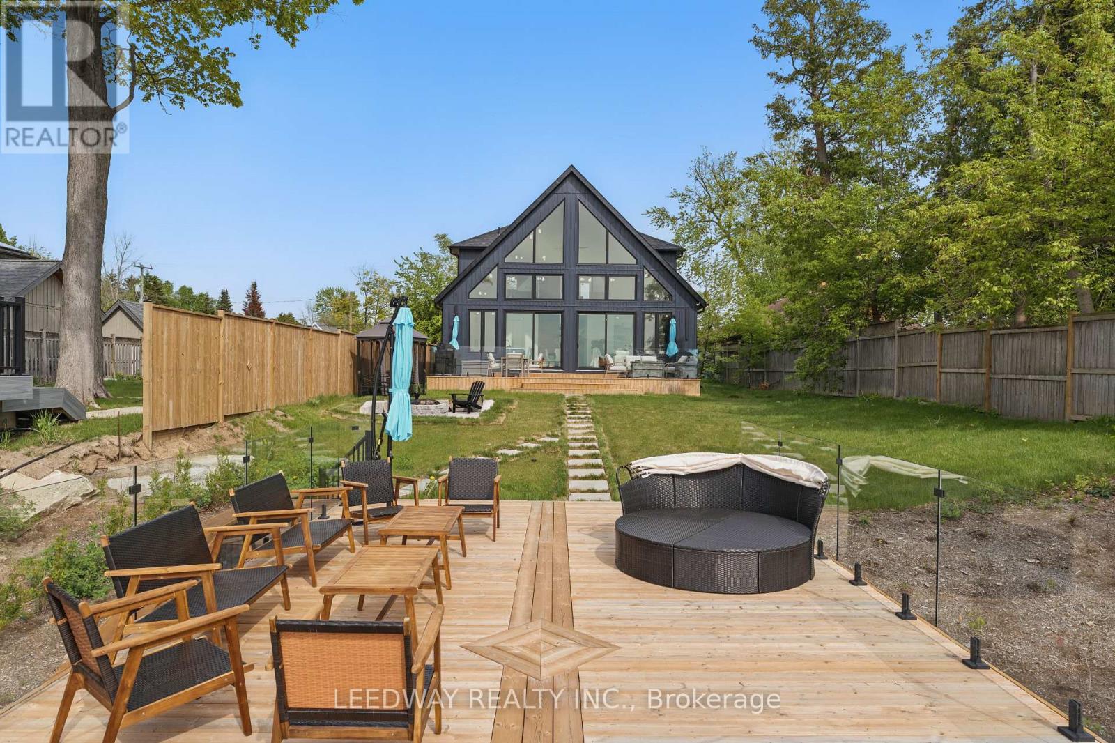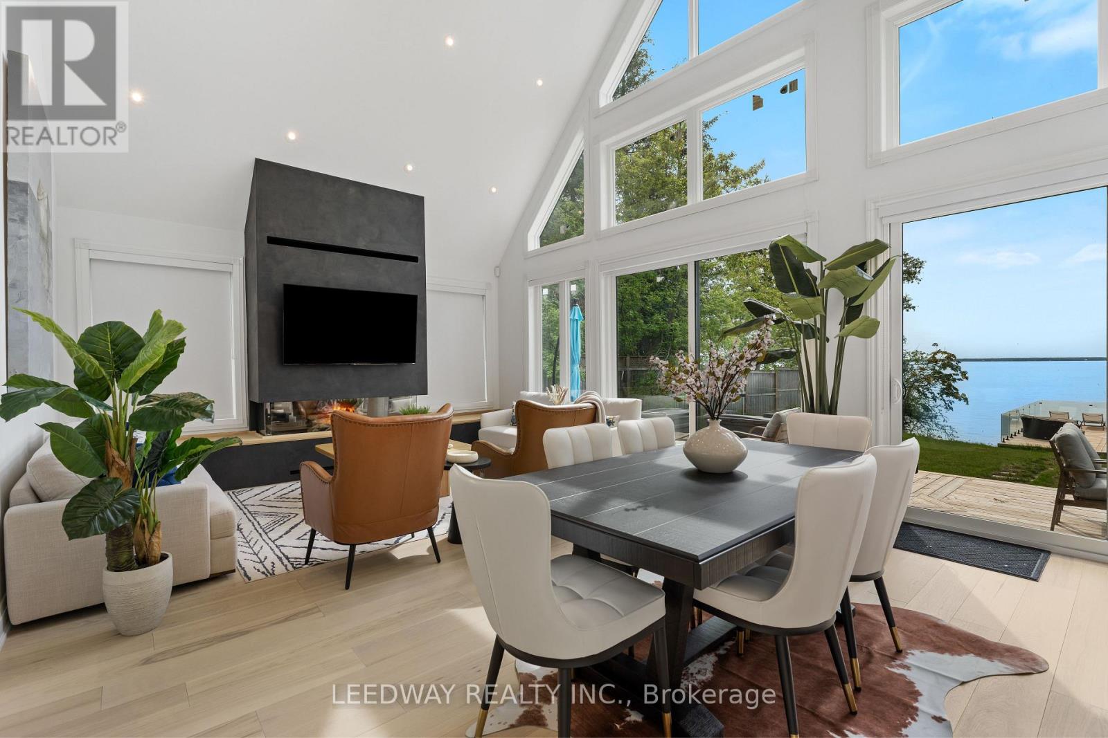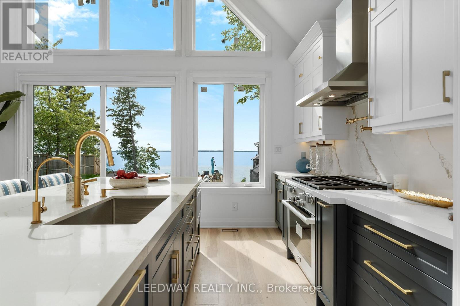 Looking for a waterfront property to lease? Don't miss out on this one-of-a-kind Custom-built waterfront property with boathouse! Walk through the beautifully stained fiberglass front door into the spacious foyer accented by 48" porcelain tiles. The Foyer opens out to the awe-inspiring great room/kitchen combo filled with natural sunlight pouring through the floor-to-ceiling high windows. Great room boasts soaring 24ft vaulted ceiling and wood cladded ridge beam! A 3-sided 5ft Marquis fireplace dressed in Marrakesh Wall paint complements the great room. Chef's custom kitchen boasts high quality quartz counters and backsplash, high-end appliances, large 4x9ft center island, and a slide-out and a walk-in pantry. Main floor offers 2 ample sized bedrooms, laundry, spa-inspired 4pc washroom & access to garage. Principal bedroom is equipped with a luxurious 5pc ensuite, walk-in closet with French doors and custom closet organizer. The second bedroom has a 3pc ensuite. Both the bedrooms have huge custom designed glass panes offering magnificent views of the lake! Walking out of the great room 8' tall sliding doors, you are greeted with a massive deck with a diamond insignia. The deck is equipped with a built-in gas BBQ with an outdoor fridge. A set of cascading stairs takes you down to the lush back yard and second massive diamond deck. The second deck sits atop the 16'x30' dry boathouse which has a massive 11' high door and a 60-amp subpanel. The boathouse is drywalled and finished. The fully finished basement includes an entertainment room and an exercise room. Other notable highlights: electric car charger rough-in in garage, water treatment equipment, water softener, pot lights throughout, high end Riobel plumbing fixtures, smart thermostat, alarm system (monitored option), and a camera surveillance system. (id:4555)