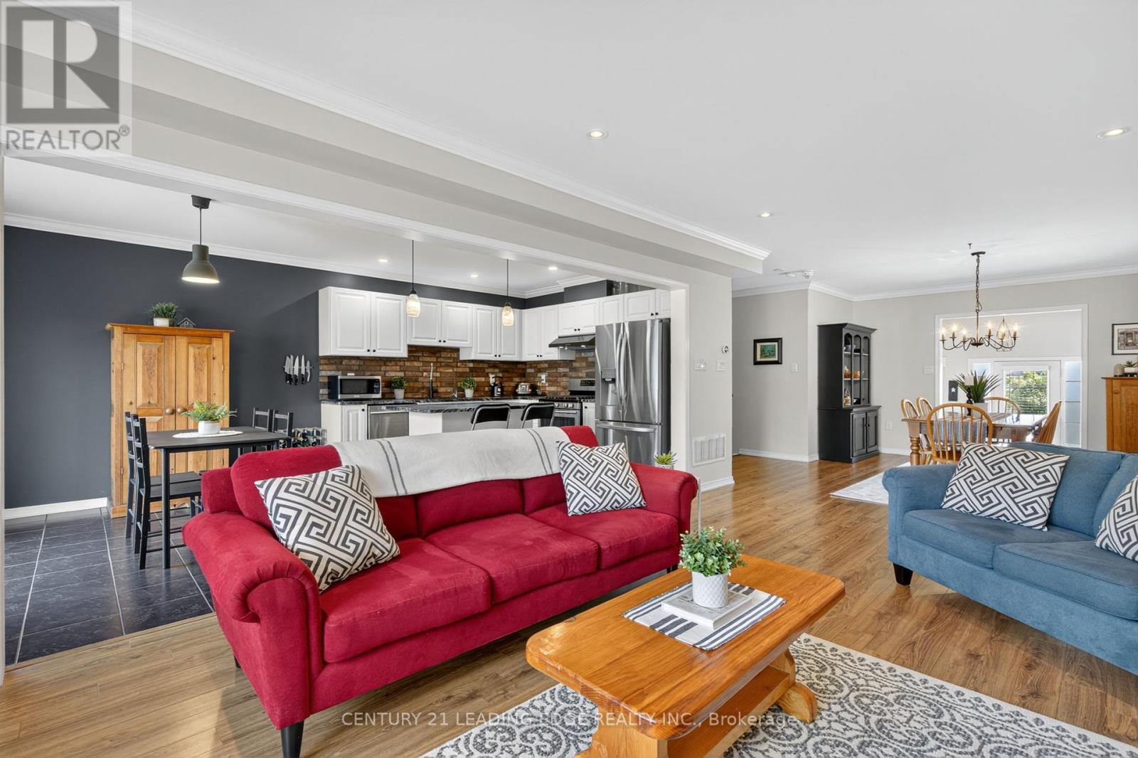 Attention first time buyers, growing families & empty nesters, this 2000+sqft, 3 bedroom is located in family friendly Sunderland! The sunfilled spacious open concept main floor design is an entertainer's delight! Modern, family sized eat-in kitchen w granite counters, gas stove, custom backsplash & centre island overlooking great & dining rooms featuring crown moulding, smooth ceilings & pot lights. Huge primary bedroom with 4pc ensuite (separate shower & tub) & large walk-in closet. All good sized bedrooms with double closets & large windows. Bonus 2nd floor laundry & 5pc main bath (2 sinks). Unspoiled basement with above grade windows & R/I bath. Beautifully landscaped with inviting covered front porch. Fantastic deck with awning overlooking greenspace, 3 parking spots, located a few steps away from Sunderland P.S. Built in 2015. This one is a must see! (id:4555)