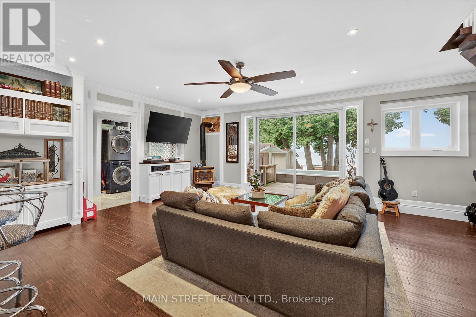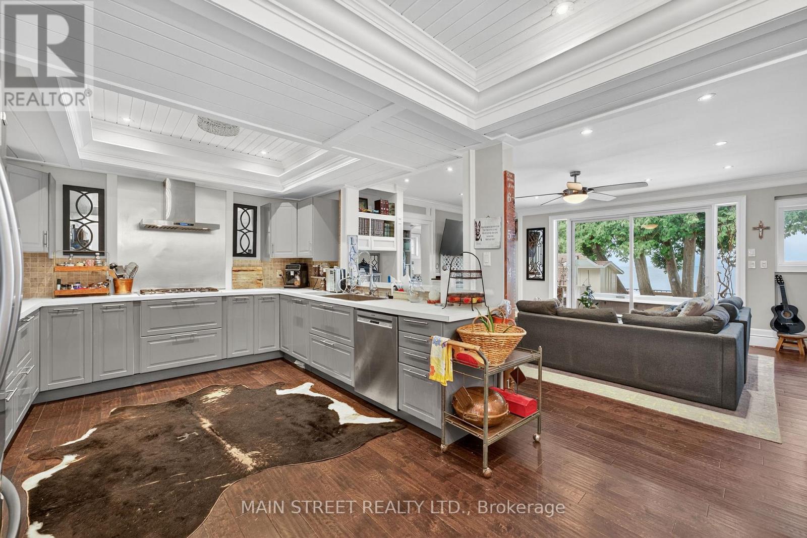 Located on the Calm Shores of Lake Simcoe, This Stunning Turnkey Home Offers 3 Bedrooms & 2 Full Baths, Thoughtfully Renovated w/ Many Modern Finishes! Enter Into Your Fully Fenced Yard w/ Private Lawns, Garage & Shed, Oversized Front Deck Perfect for Morning Coffee & Sunrises! Spacious Main Foyer, Cedared Ceiling Living Room w/ Gas Fireplace & Large Windows! Chef's Kitchen Overlooks Stunning Lake Simcoe & Open Concept Family/Dining Room, Quartz Counters, Crown Moldings, S/S Appliances, Pull-outs and More! Main Floor Laundry w/ Access to Backyard & 3 pc. Bath. Floating Staircase Invites You to 2nd Floor Serenity w/ Oversized Primary Floor! Features Private Deck & Sitting Room, Bonus Nursery/or Soon to be Walk-in Closet w/ Incredible 6pc. Ensuite w/ Double Sinks, Stand Alone Tub & Shower, Bidet & More! Backyard is a Complete Masterpiece w/ Custom Deckings, Swim Spa w/Built-in Swim-up Bar, Sep. Sauna, Treed 2 Tiered Deck w/ Stairs Down to Beach & 100ft. Dock w/ Large Patio & Slide, Sandy Walkout & Great Fishing! Custom Exterior Lighting Sets The Evening Ambiance, While Enjoying Daily Sunsets Over the Lake! Loads of Upgrades & Custom Finishes! Close to Town, School, Shopping, Restaurants & More! (id:4555)